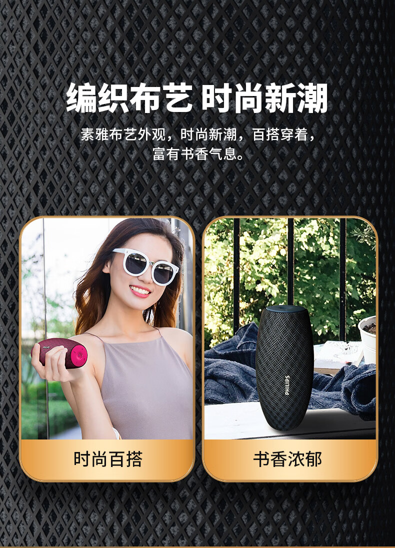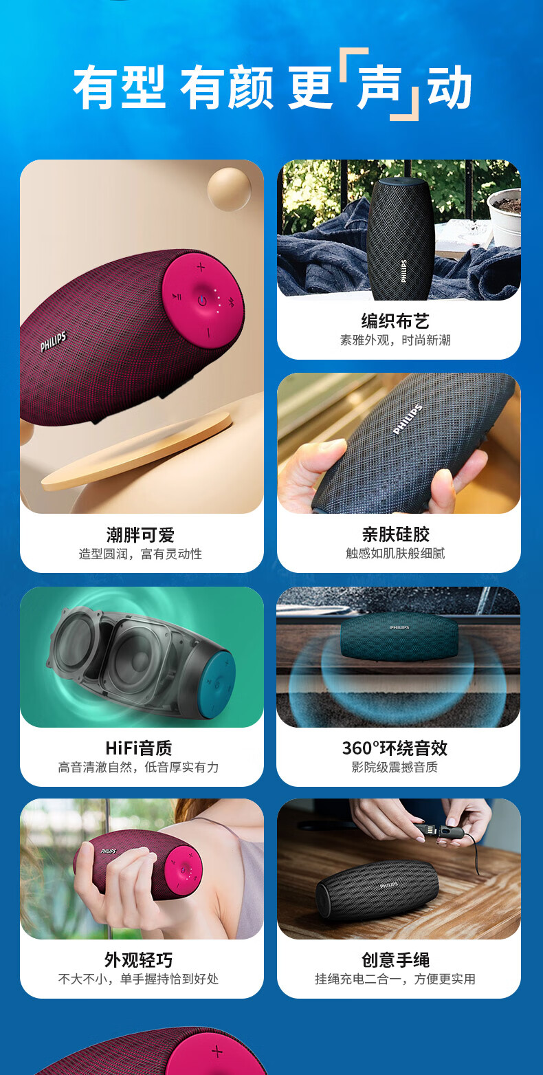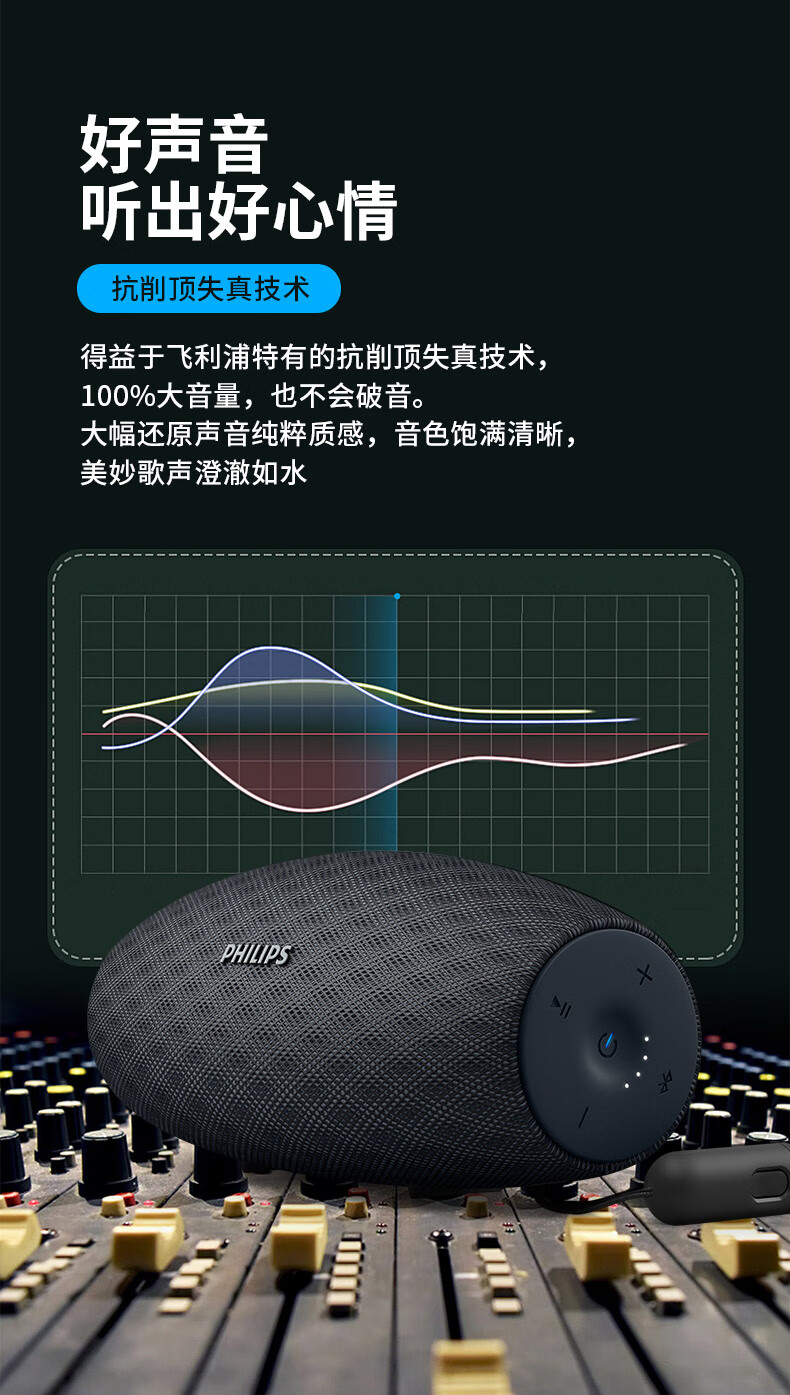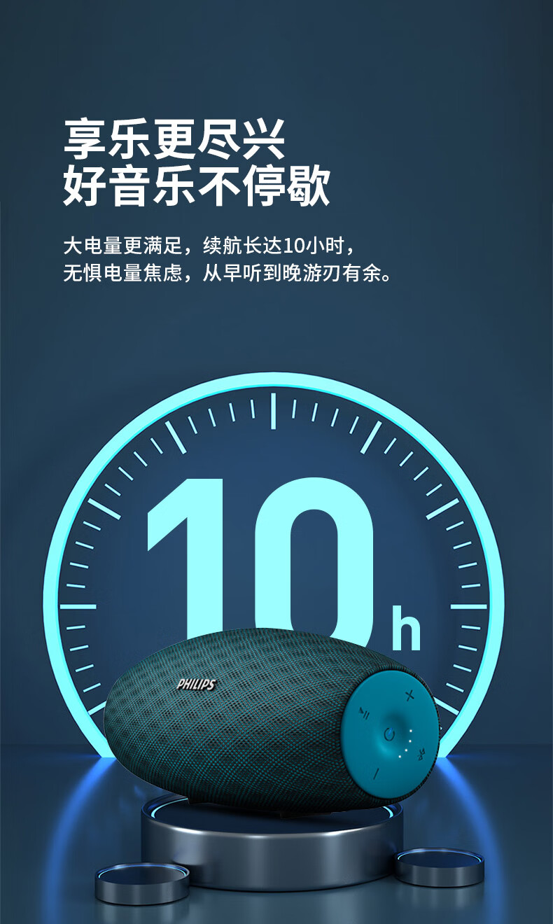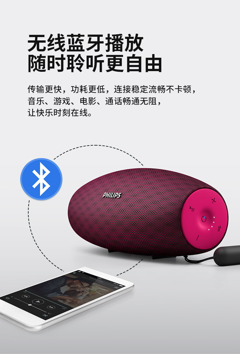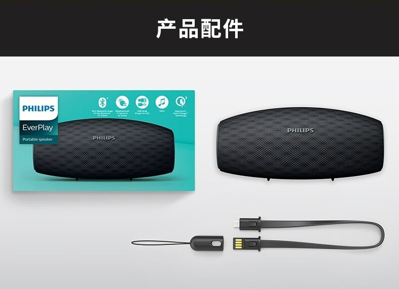 飞利浦(PHILIPS)BT6900 音乐小号角 便携式无线蓝牙音箱低音炮音响播放器电脑桌面户外布艺hifi防水曜石黑