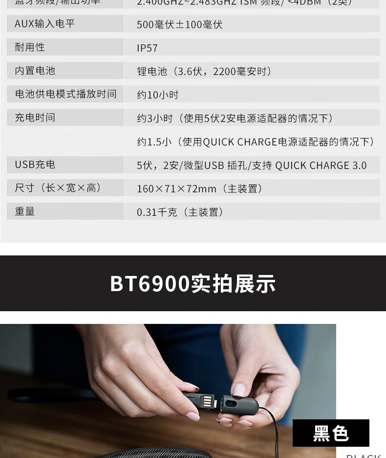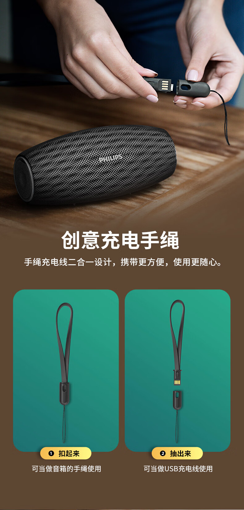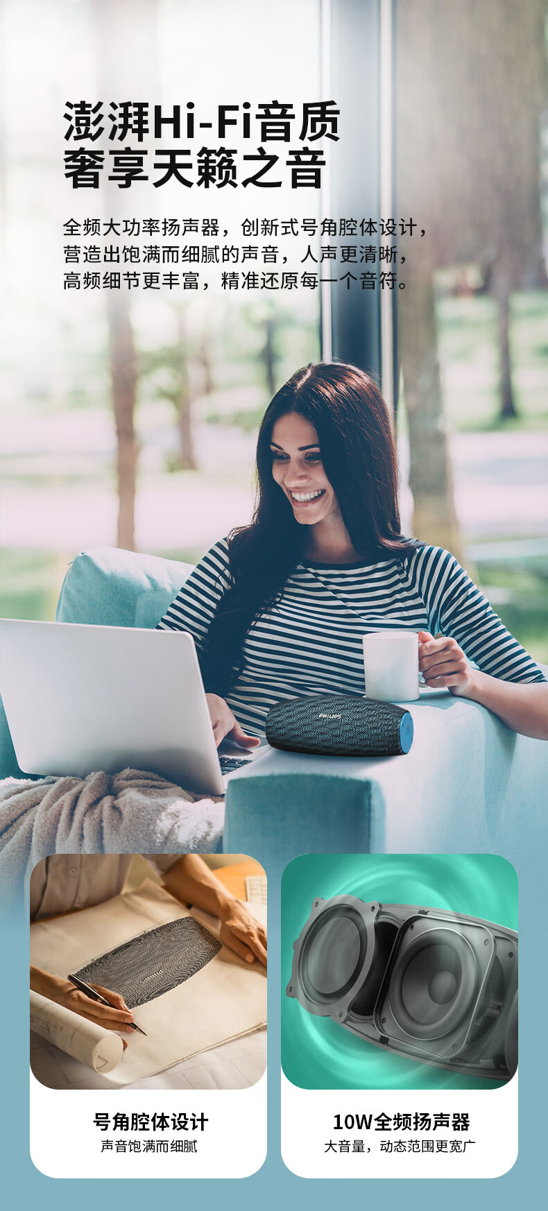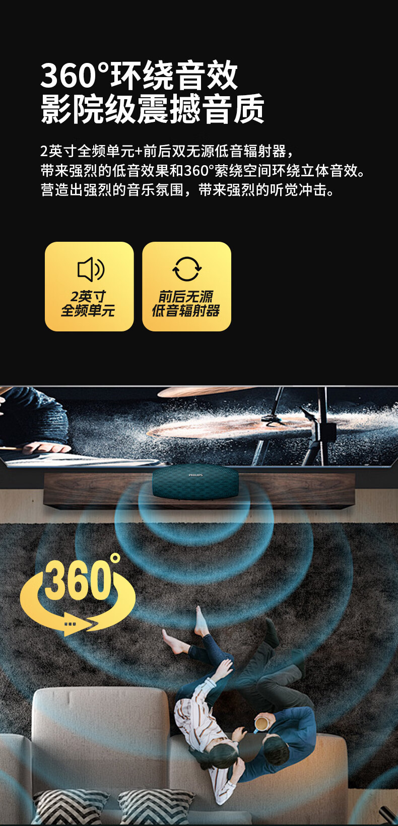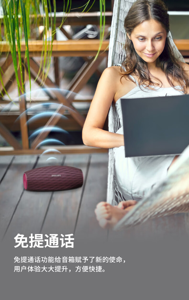 飞利浦(PHILIPS)BT6900 音乐小号角 便携式无线蓝牙音箱低音炮音响播放器电脑桌面户外布艺hifi防水曜石黑