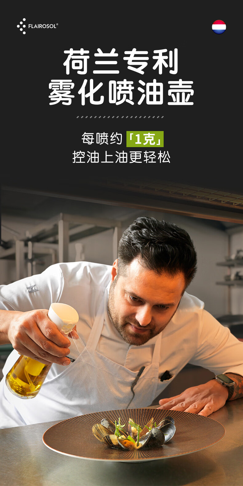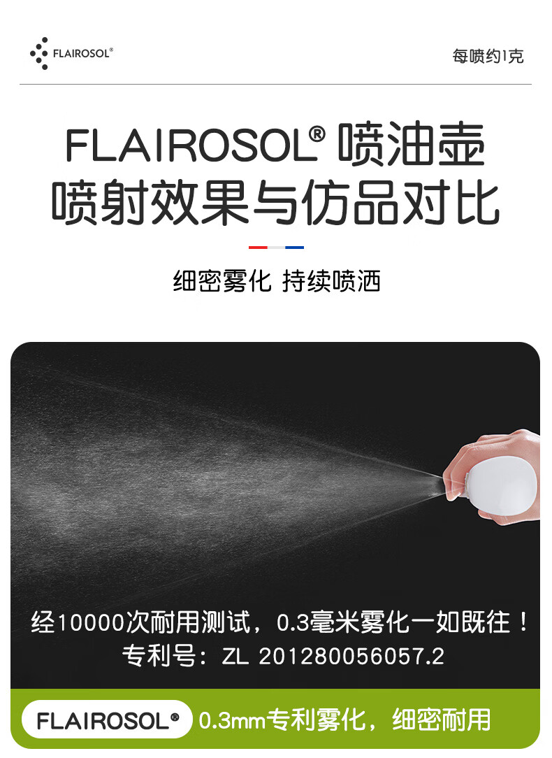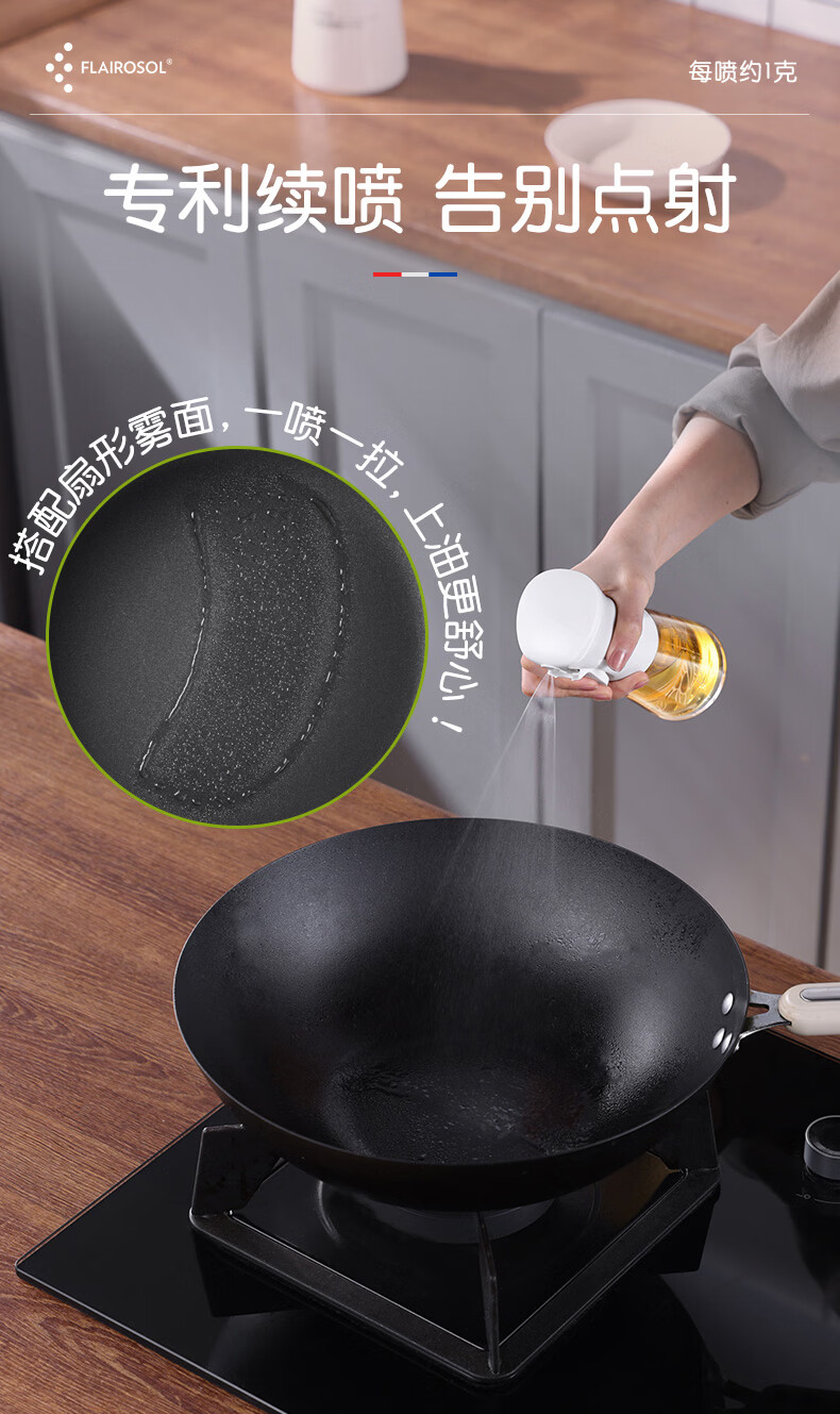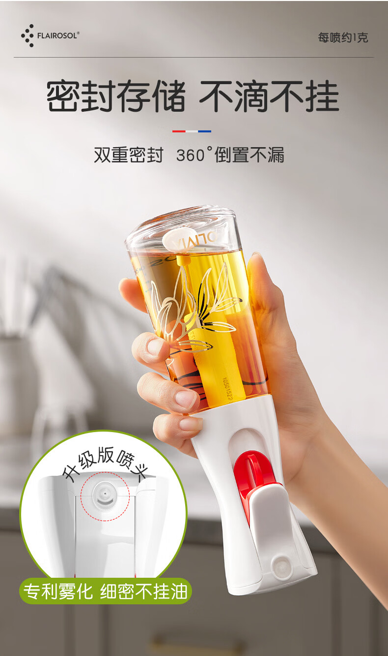 FLAIROSOL新款喷油瓶荷兰专利雾化喷油壶空气炸锅家用厨房绿色控油瓶200ML