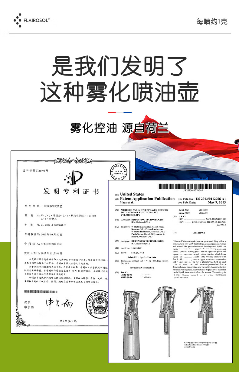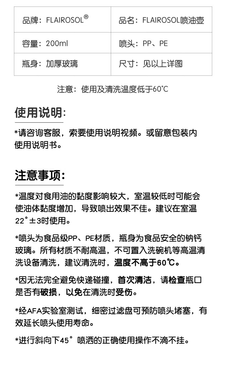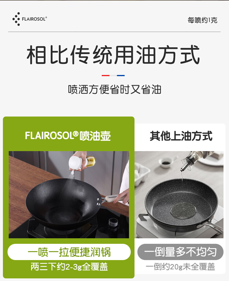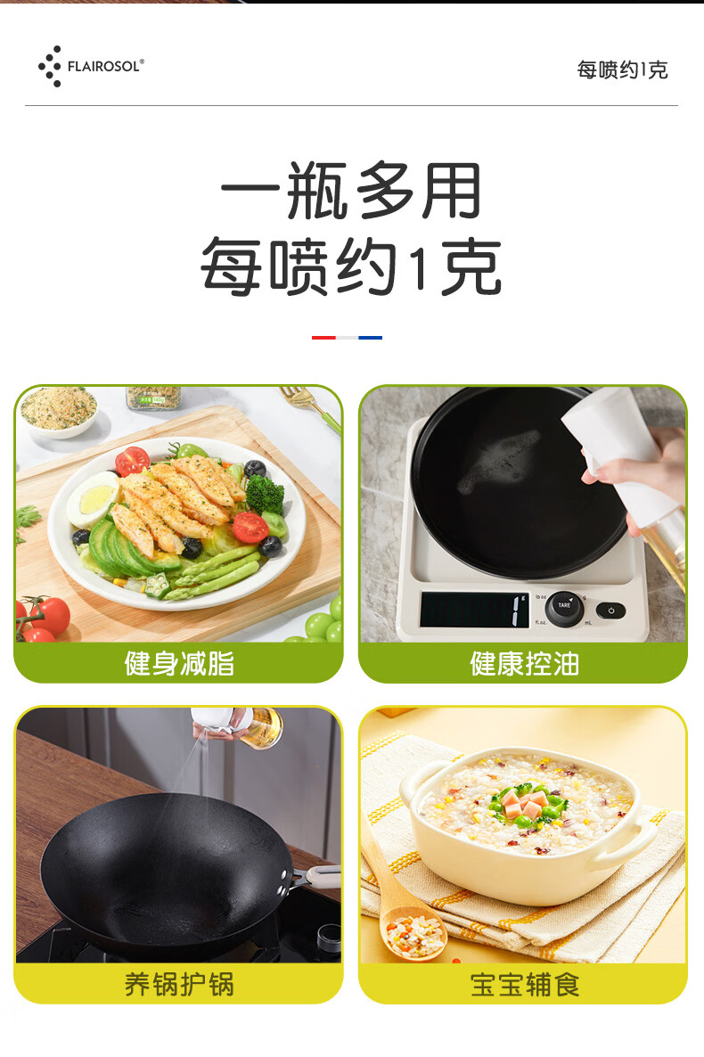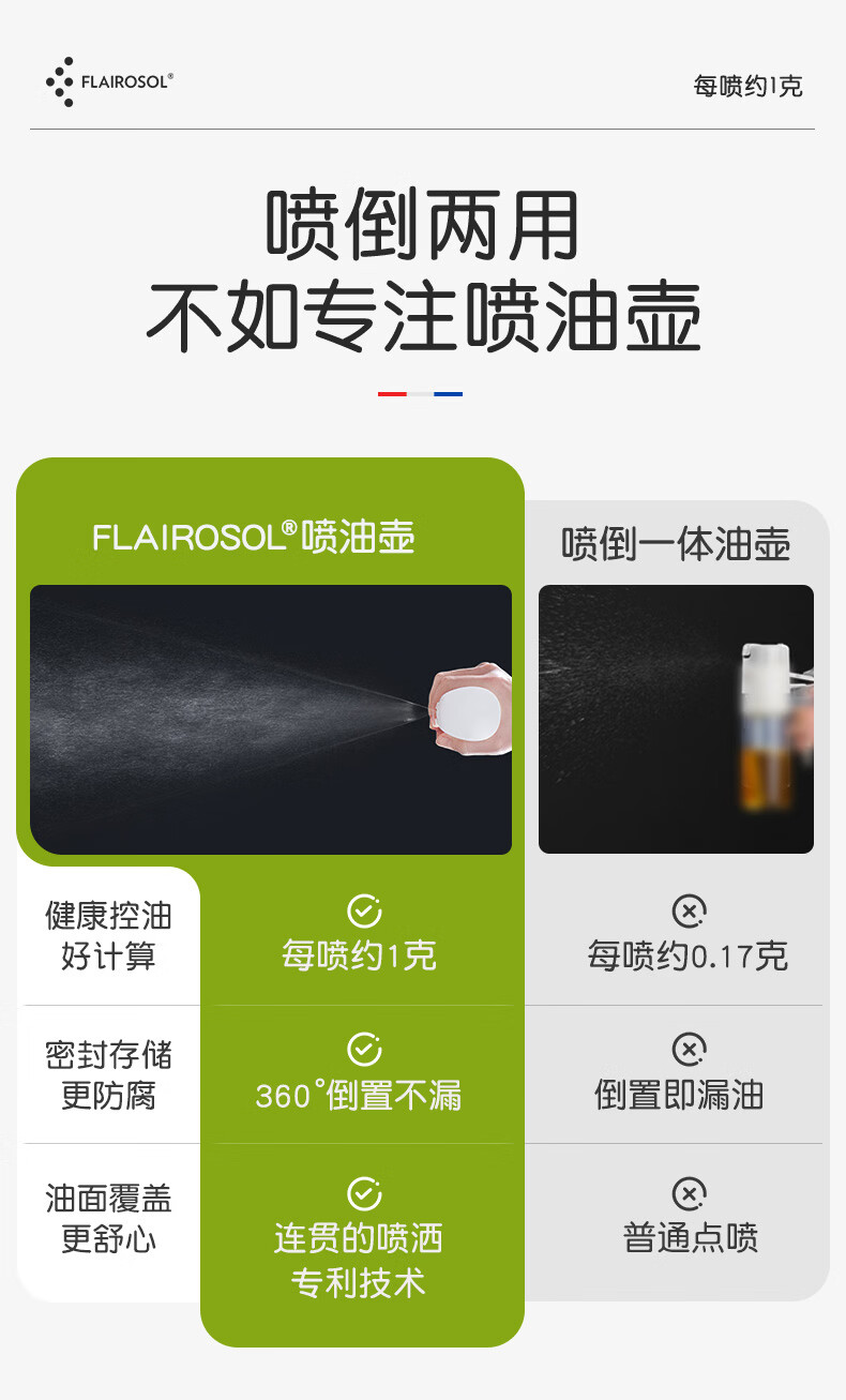 FLAIROSOL新款喷油瓶荷兰专利雾化喷油壶空气炸锅家用厨房绿色控油瓶200ML