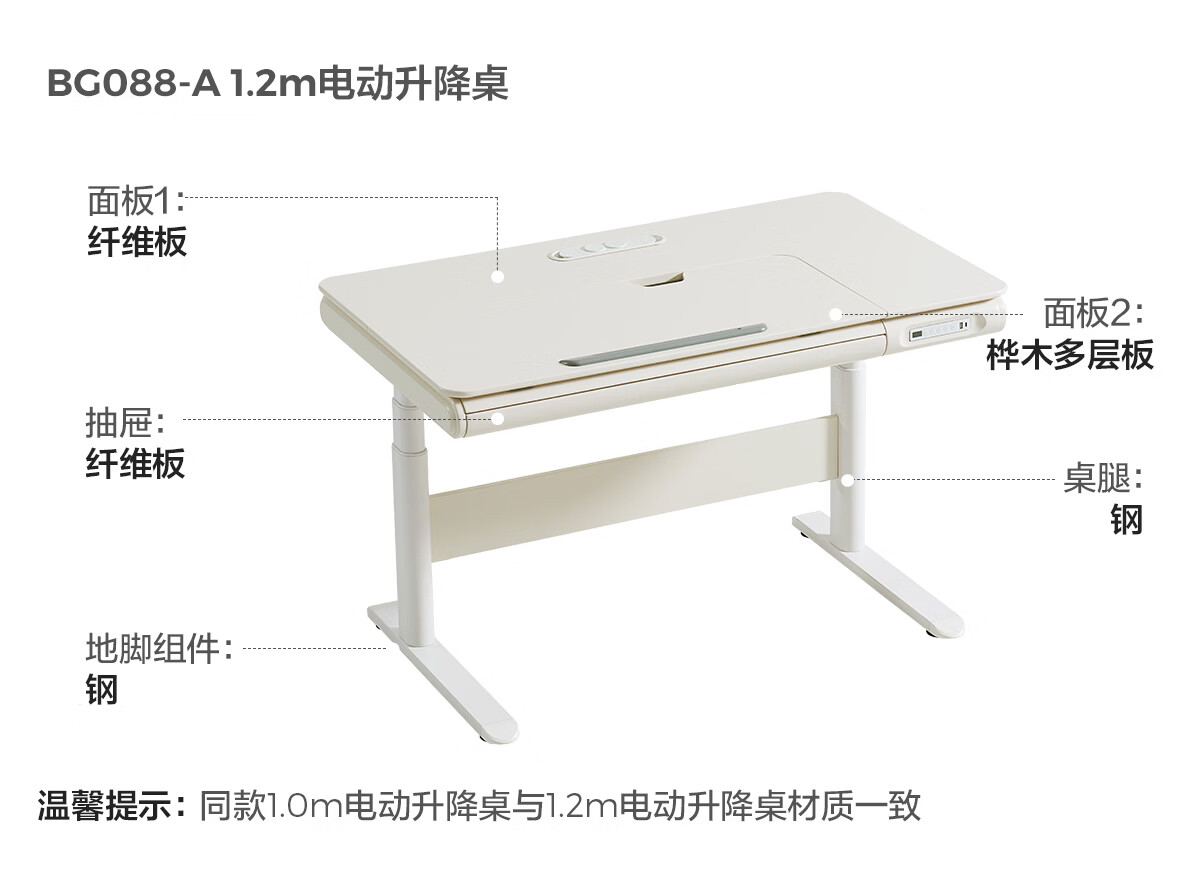 LINSY KIDS儿童学习桌书桌写字桌学生家用2025新款电动升降桌子课桌BG088 【1.0m-白色】E0级环保板材+可翻转桌面