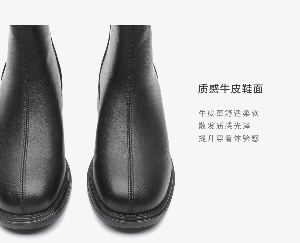 月芽儿2025年秋季气质切尔西短靴女瘦瘦靴百搭时装靴后拉链短筒靴 绒里黑色01T 34