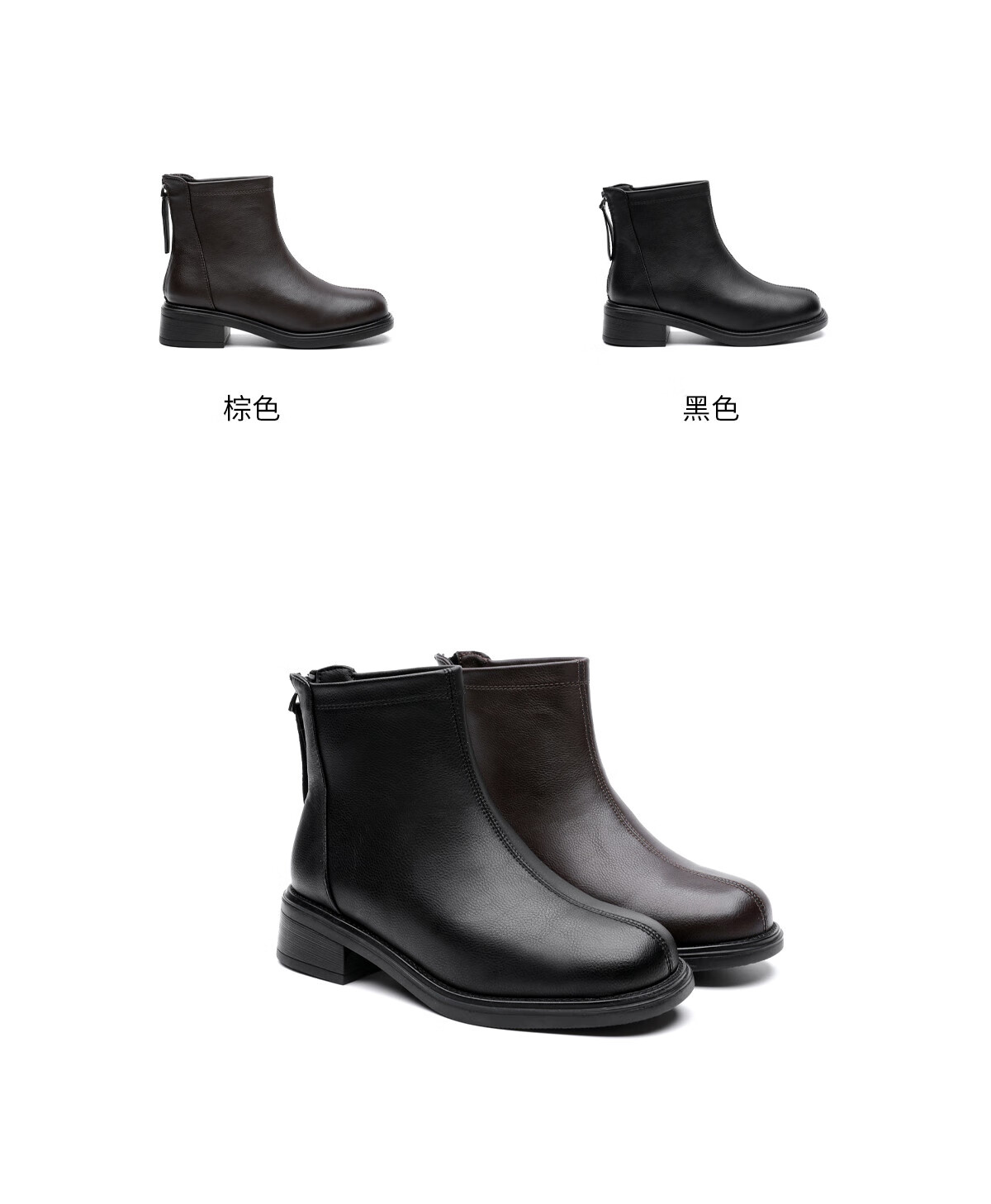 红蜻蜓短靴女妈妈加绒保暖靴子女粗跟牛皮靴女中跟女棉靴 WTC434421C