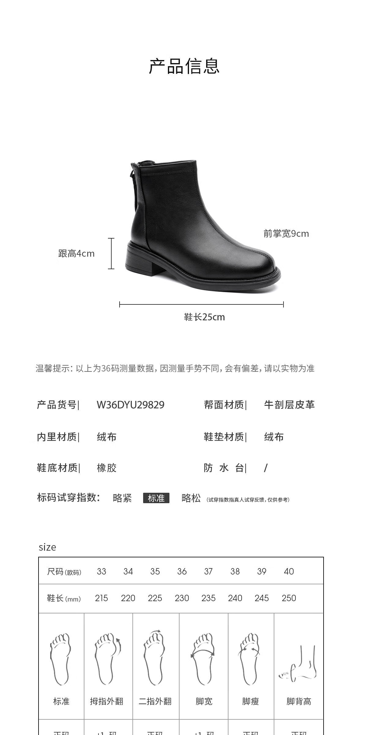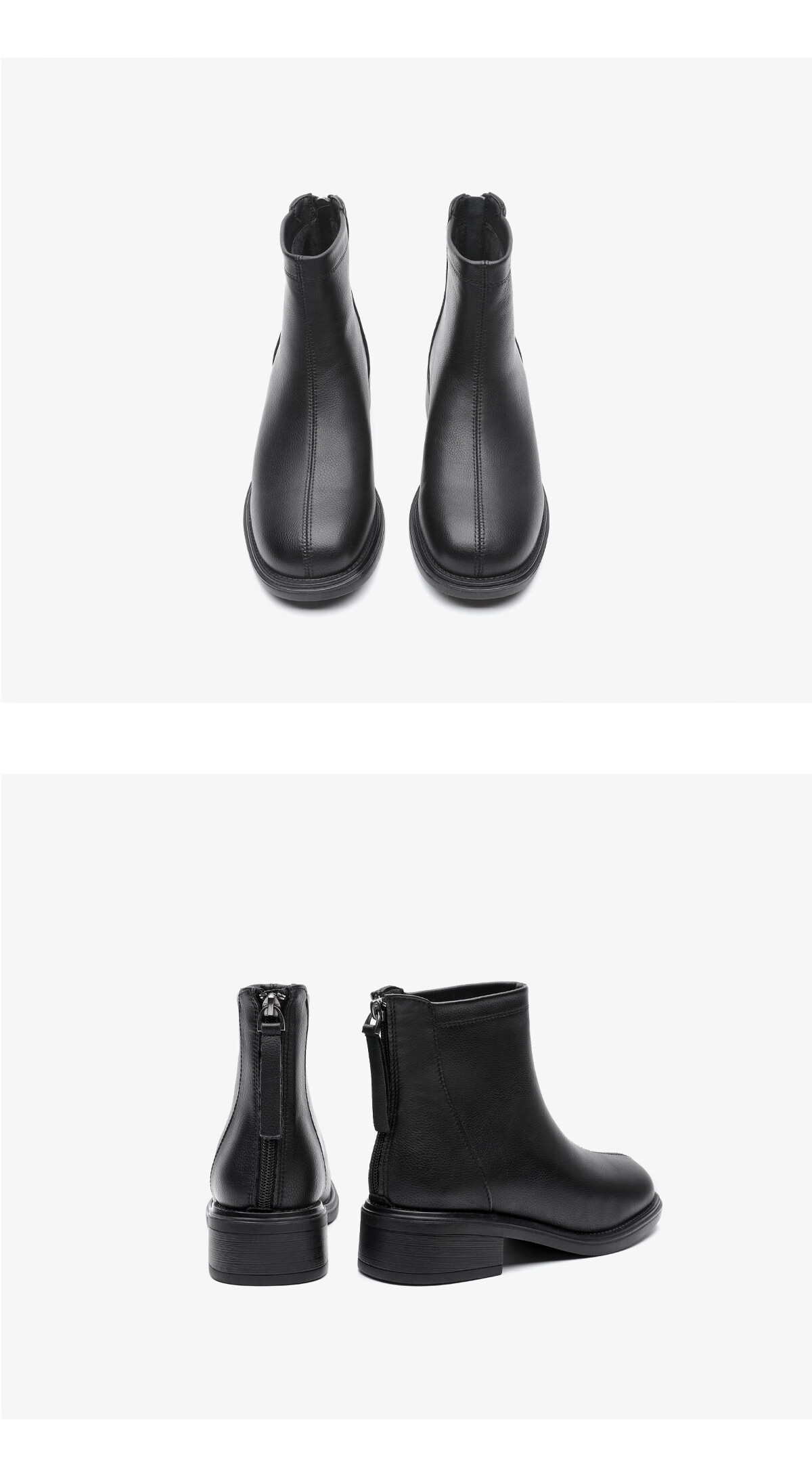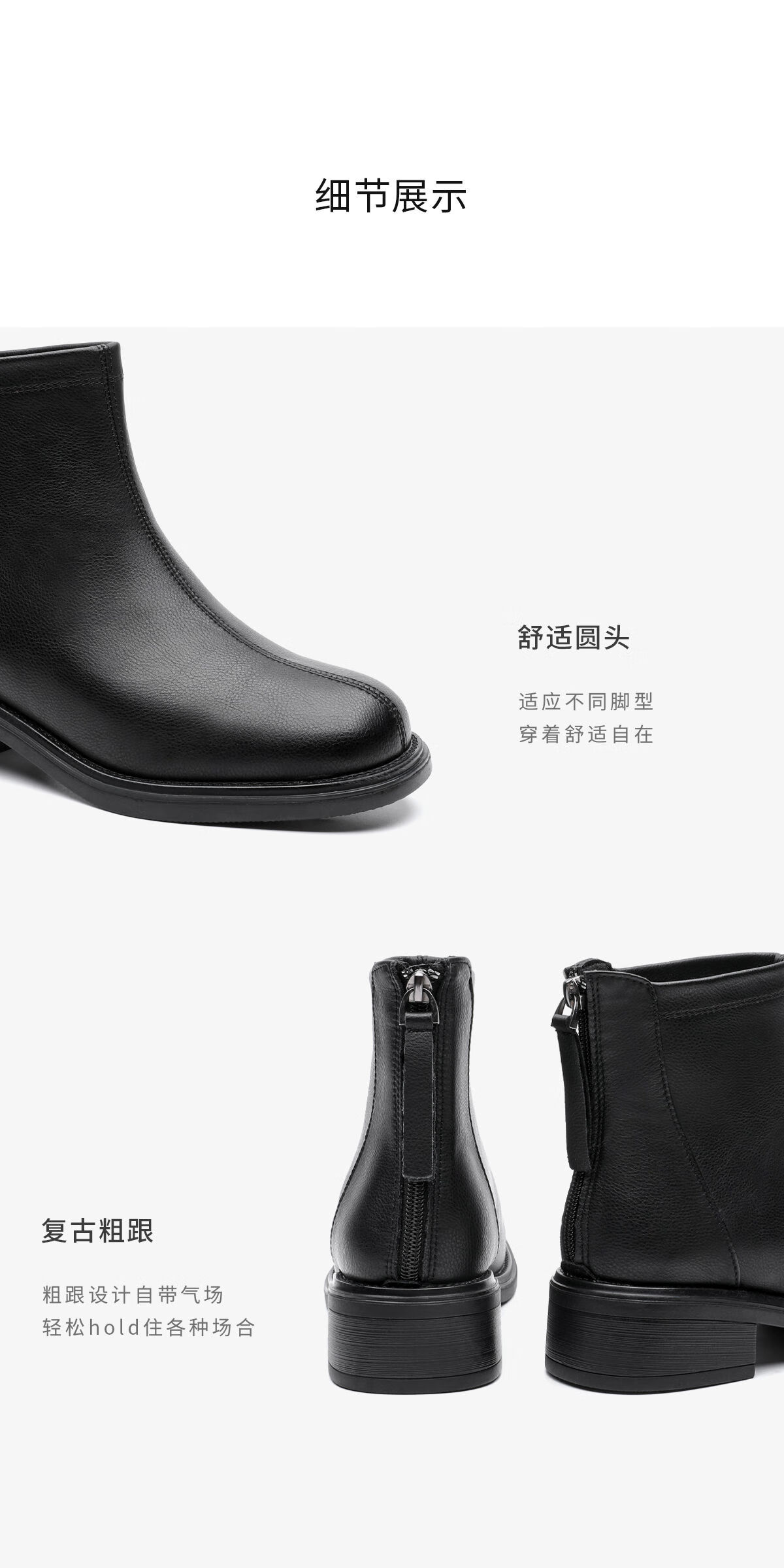 莱尔斯丹2025秋冬新款粗跟舒适高级感脚踝短靴子女靴54702 黑色BKK 36