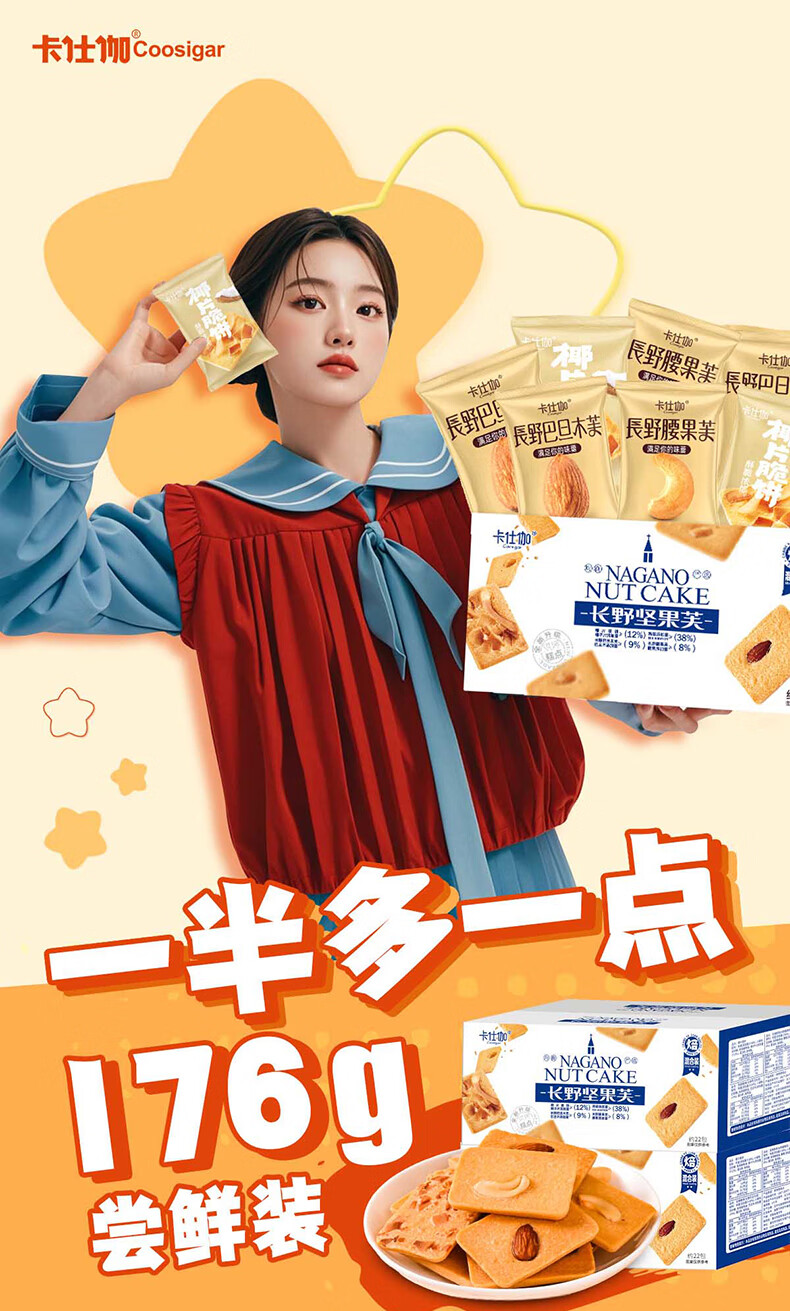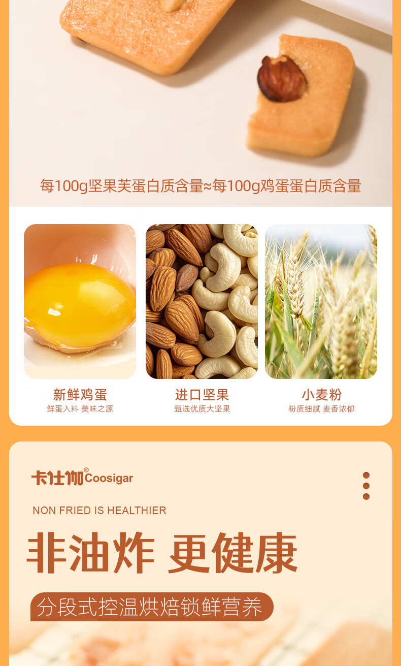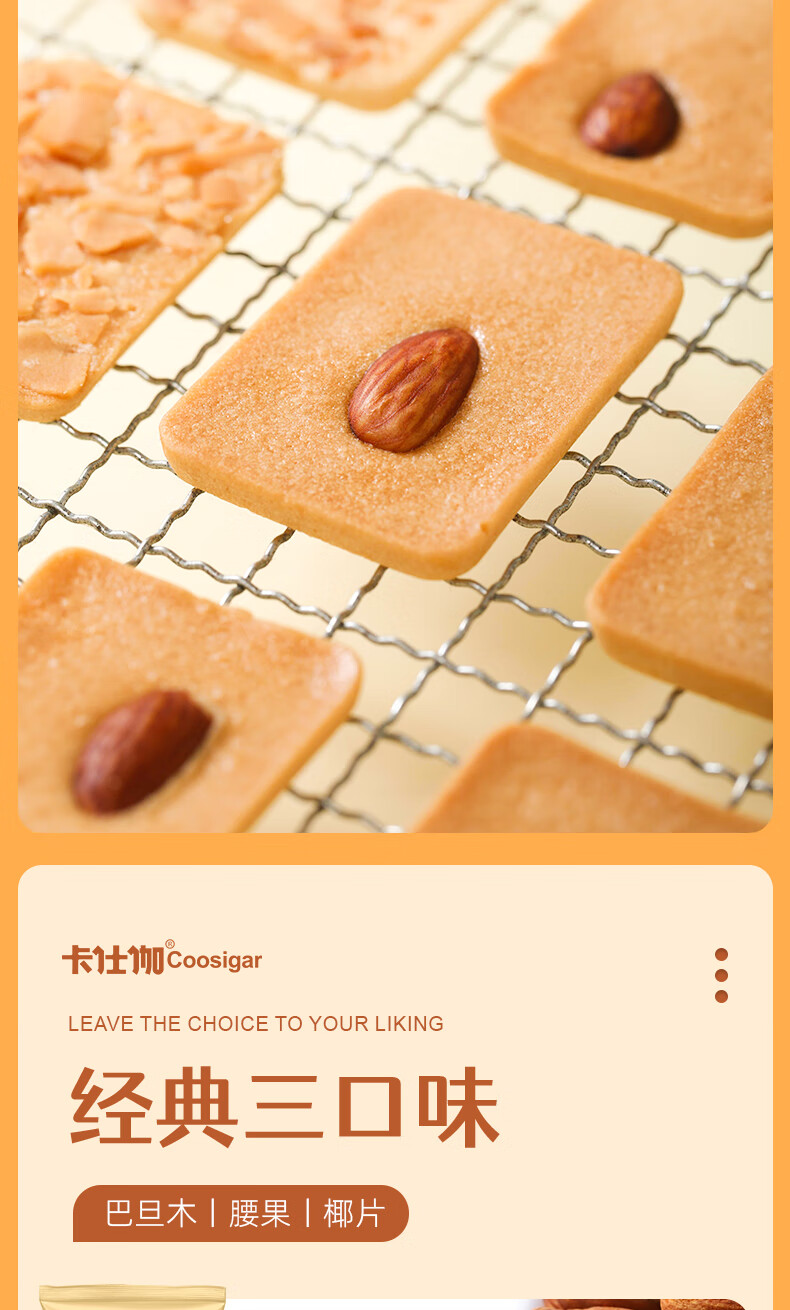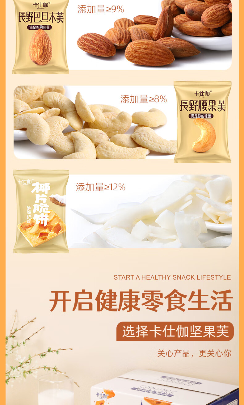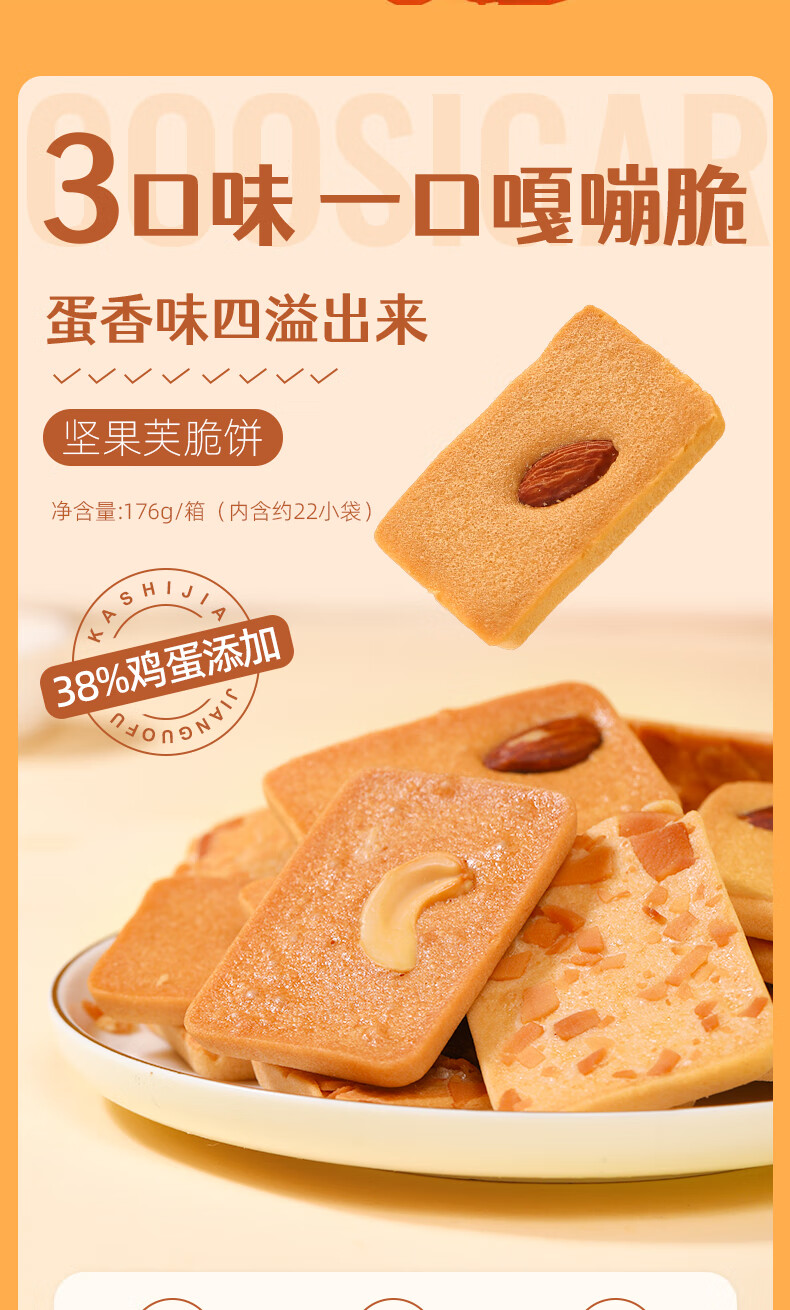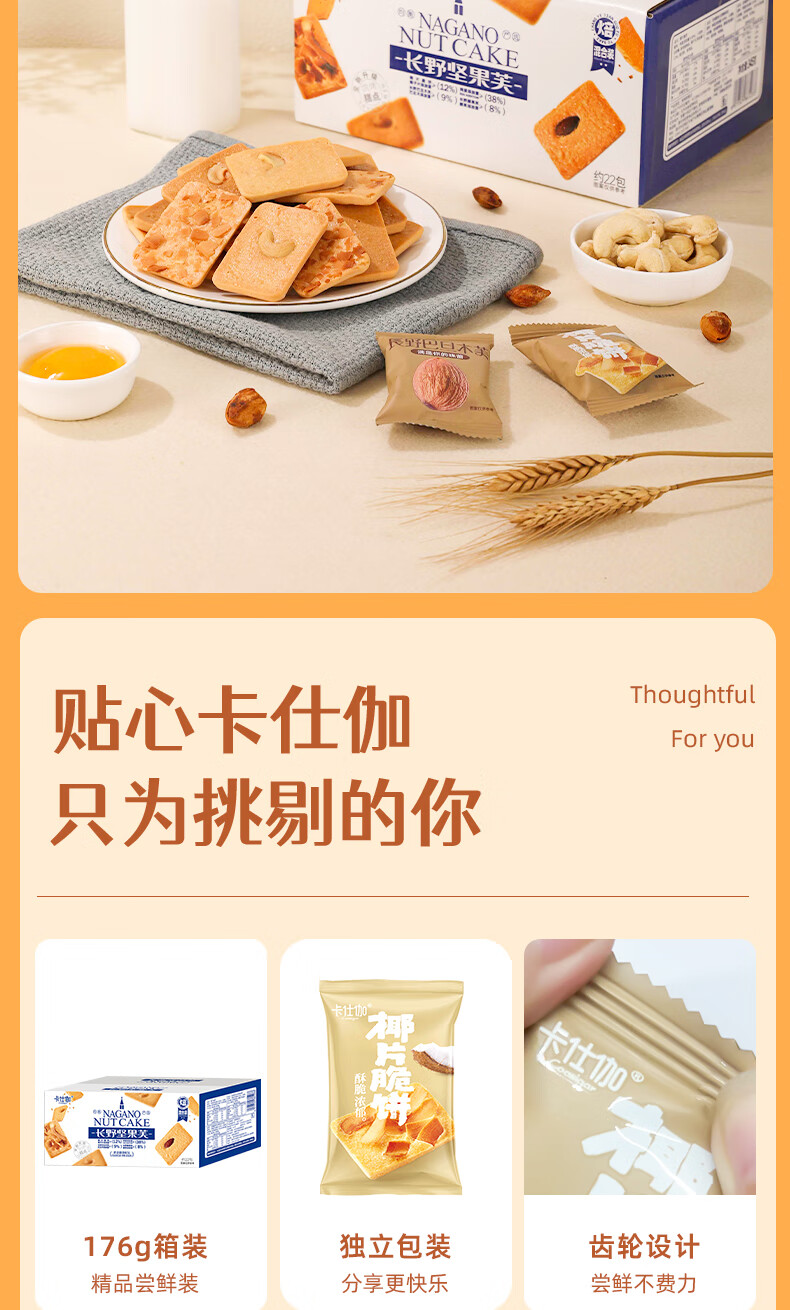 卡仕伽坚果芙椰子脆片曲奇饼干独立包装办公室休闲早餐健康零食 混合口味 176g/盒(约22包)