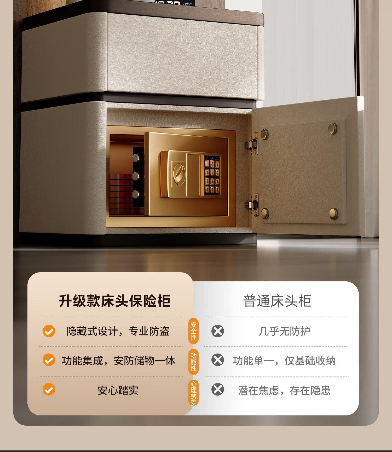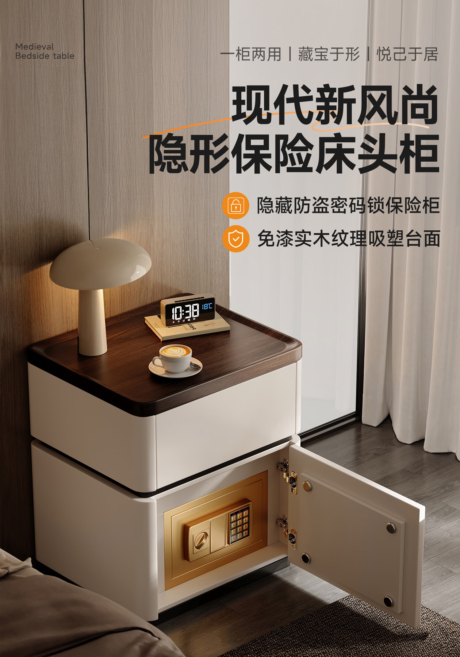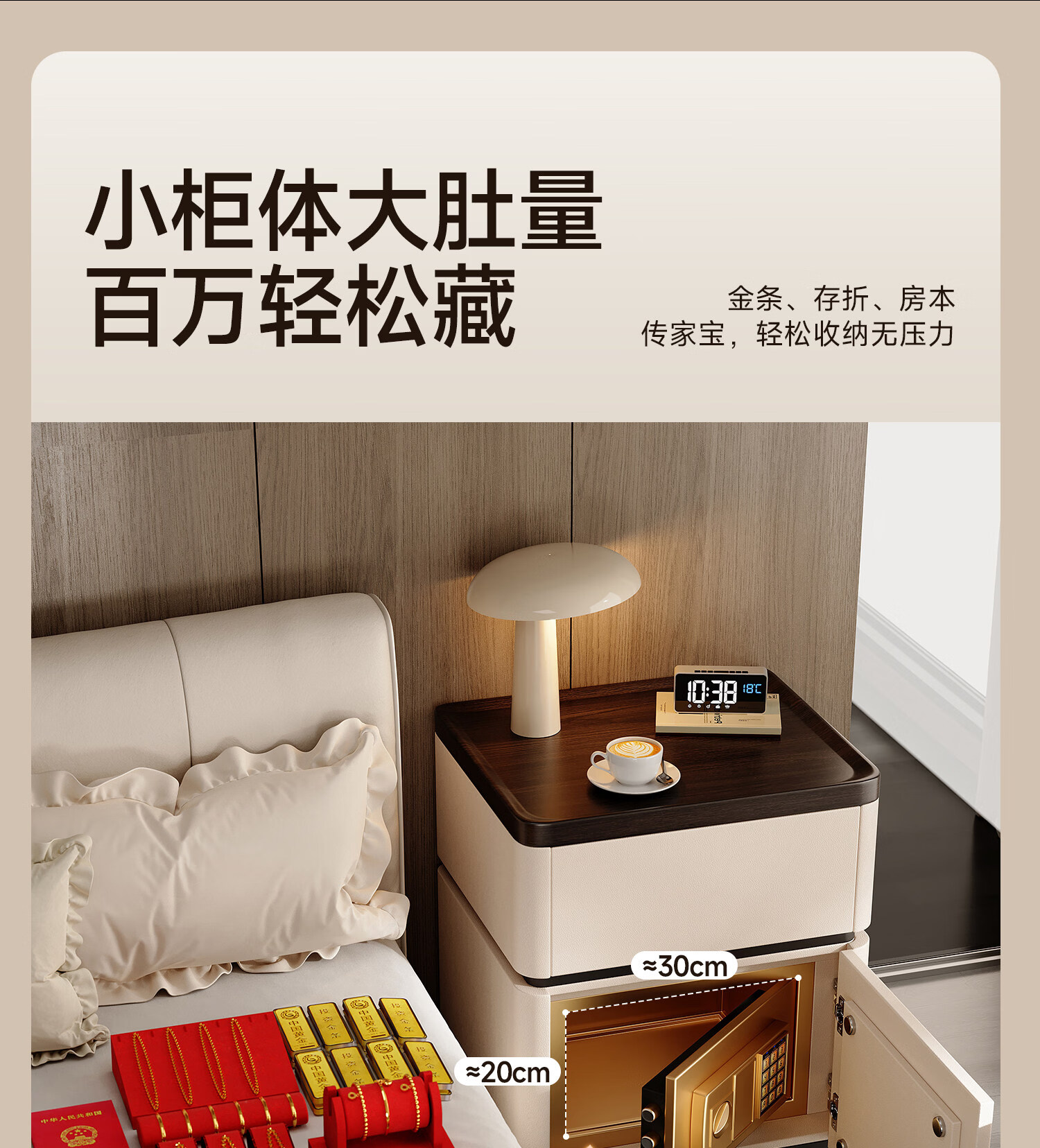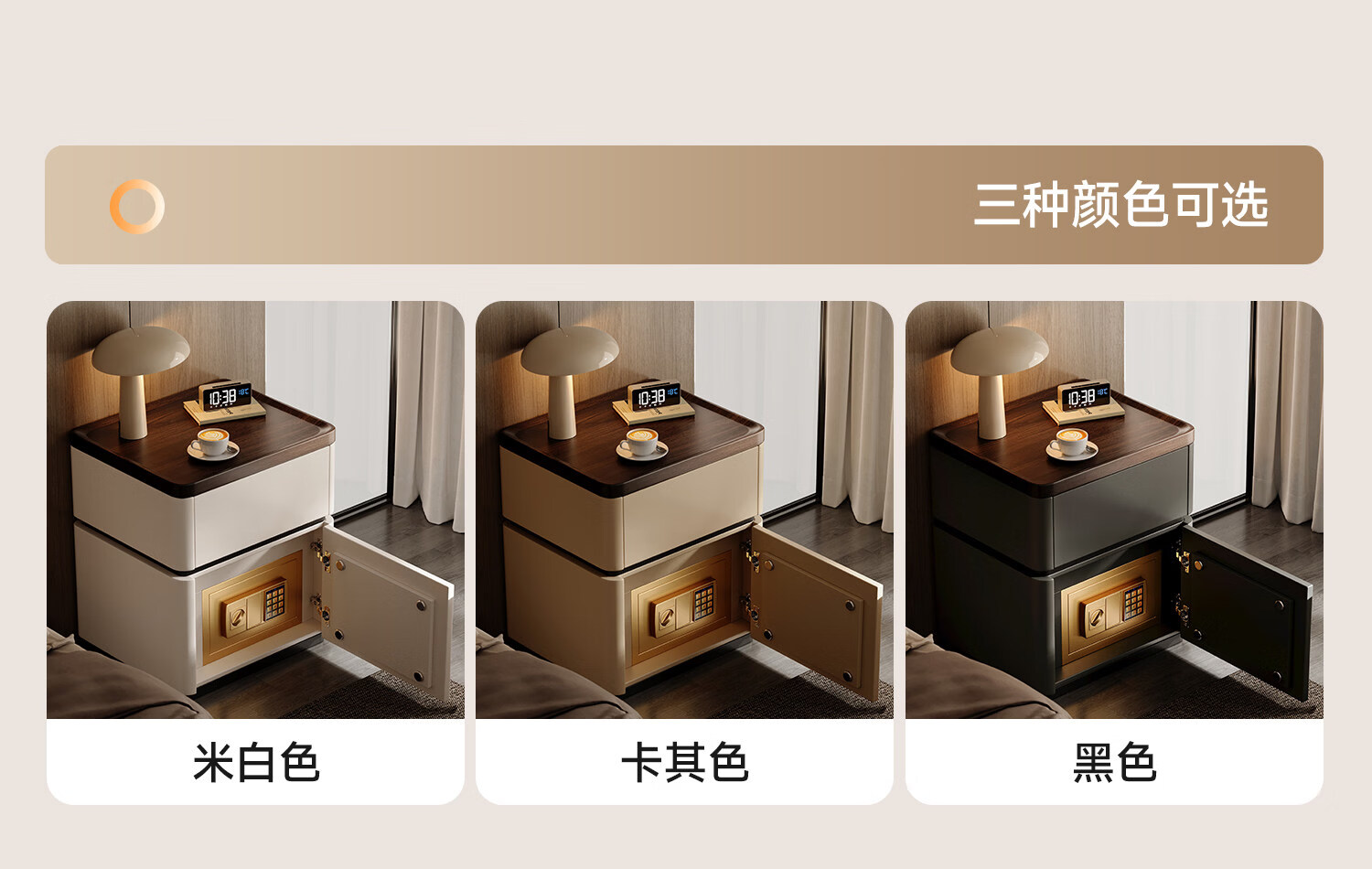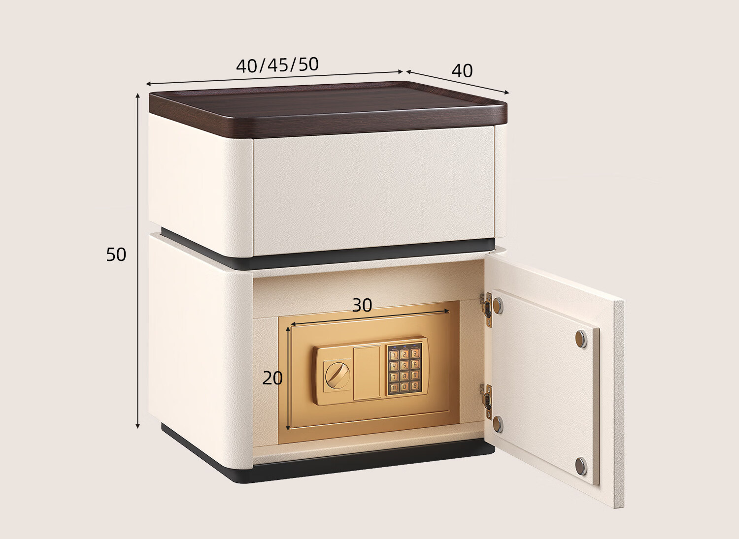 耐禾实木床头柜保险箱一体中古风家用卧室2026爆款轻奢高级感收纳边柜 米白色【特级松木+猫抓皮】 全身实木款:长40*宽40*高50