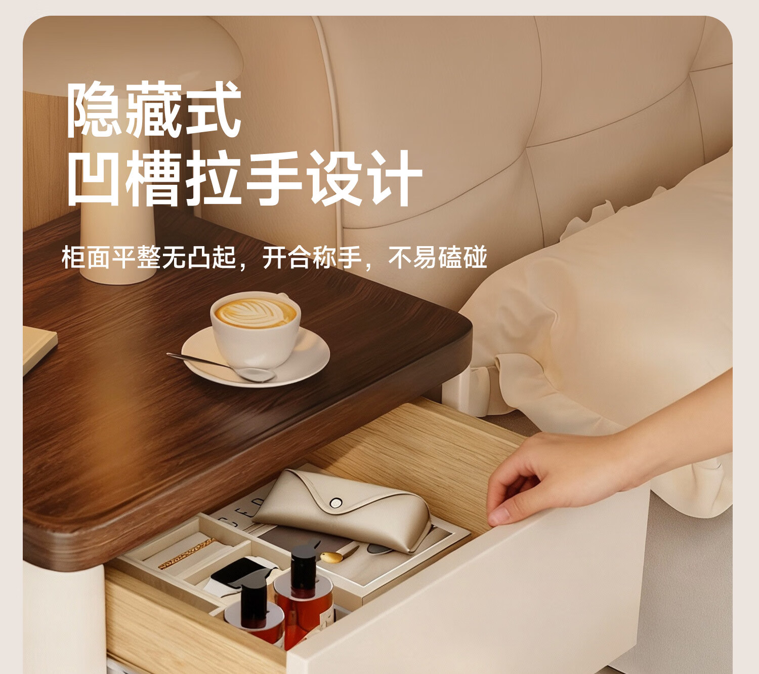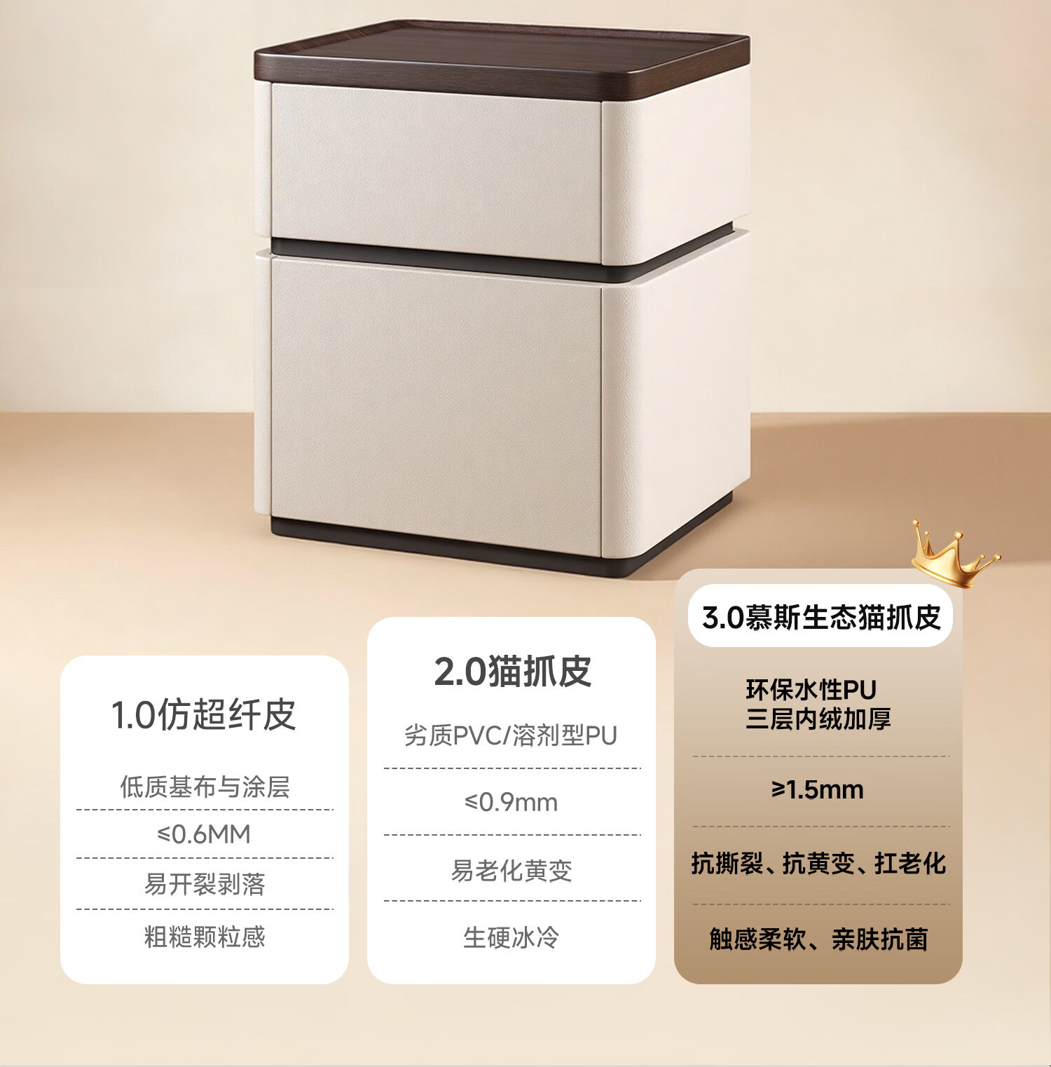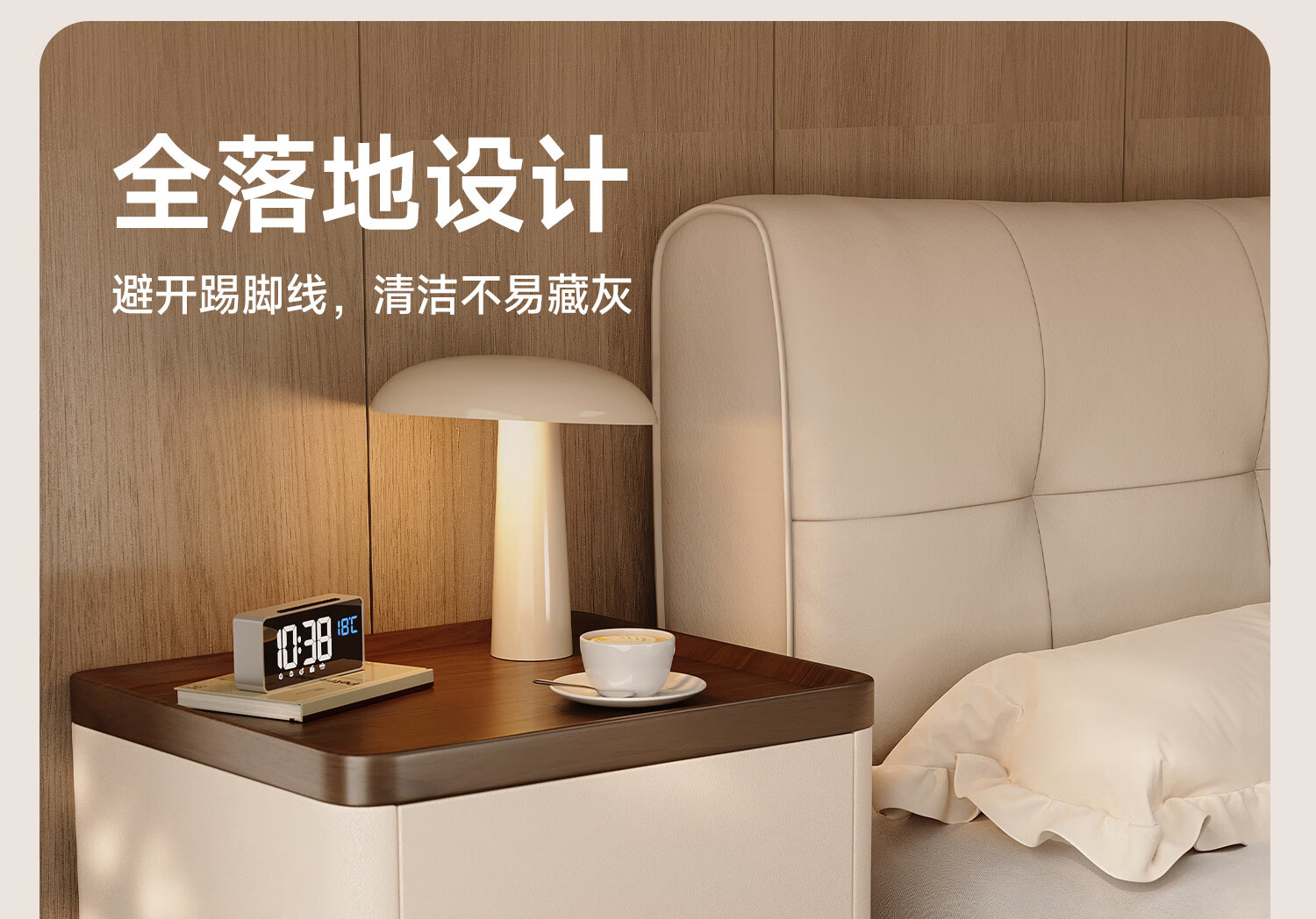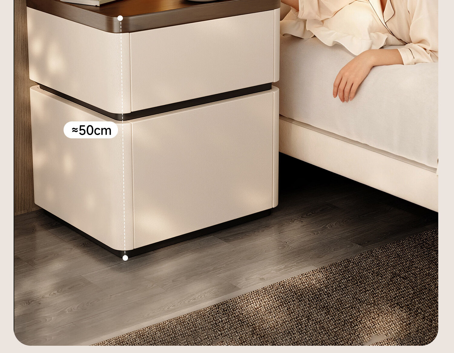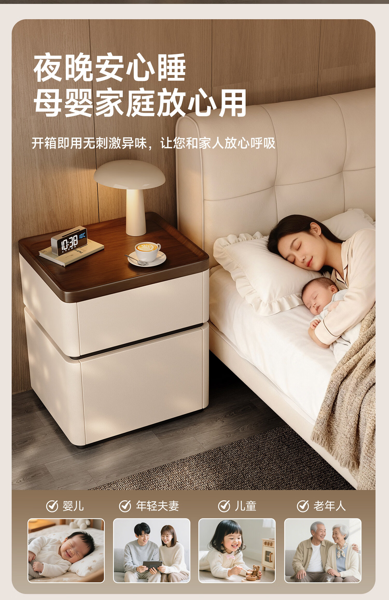 耐禾实木床头柜保险箱一体中古风家用卧室2026爆款轻奢高级感收纳边柜 米白色【特级松木+猫抓皮】 全身实木款:长40*宽40*高50