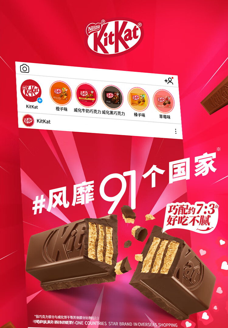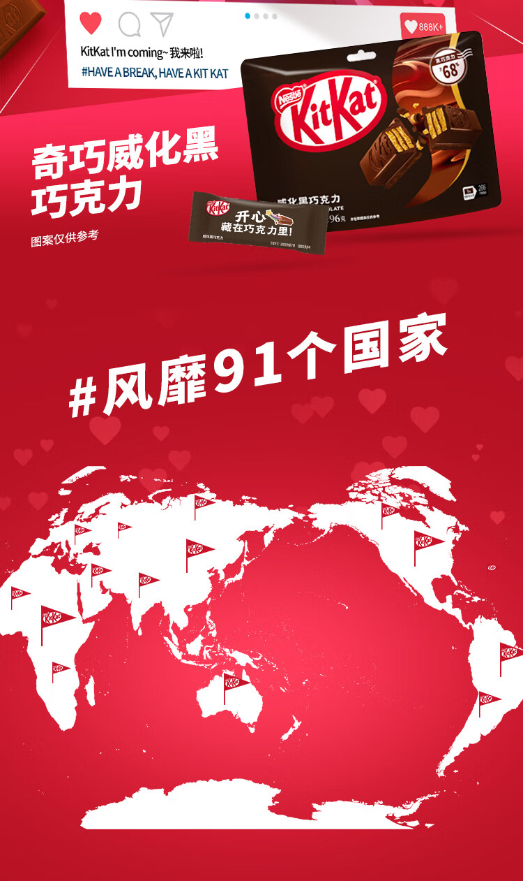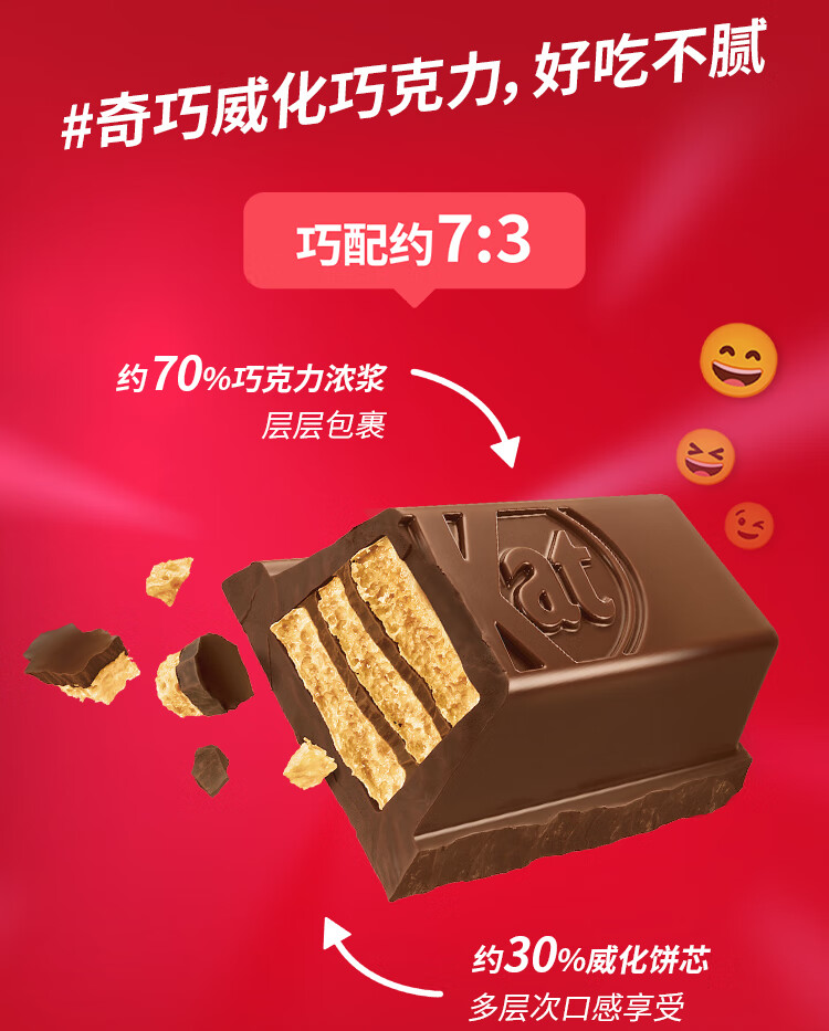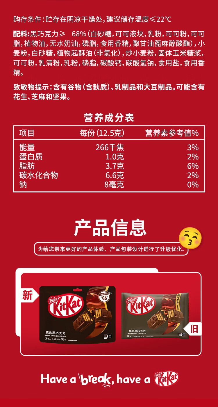 雀巢 奇巧kitkat威化夹心黑巧克力96g(8枚) 新年礼物 休闲零食 情人节