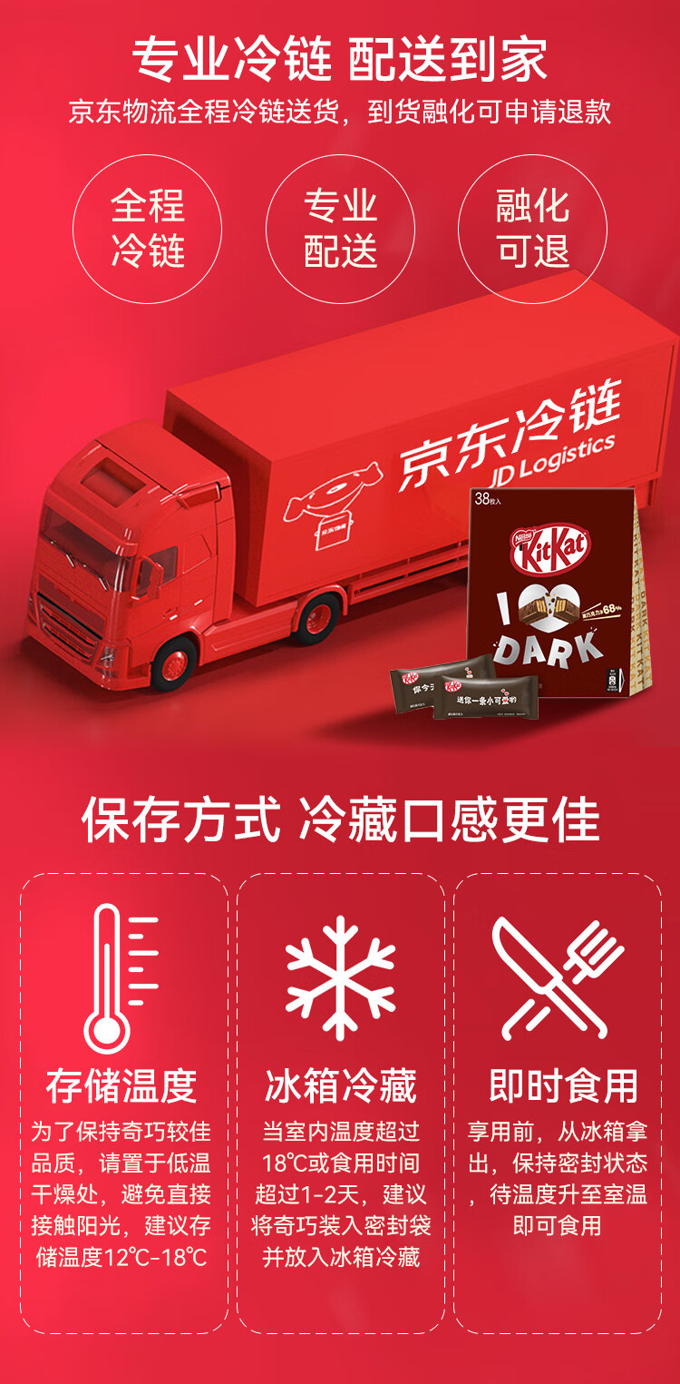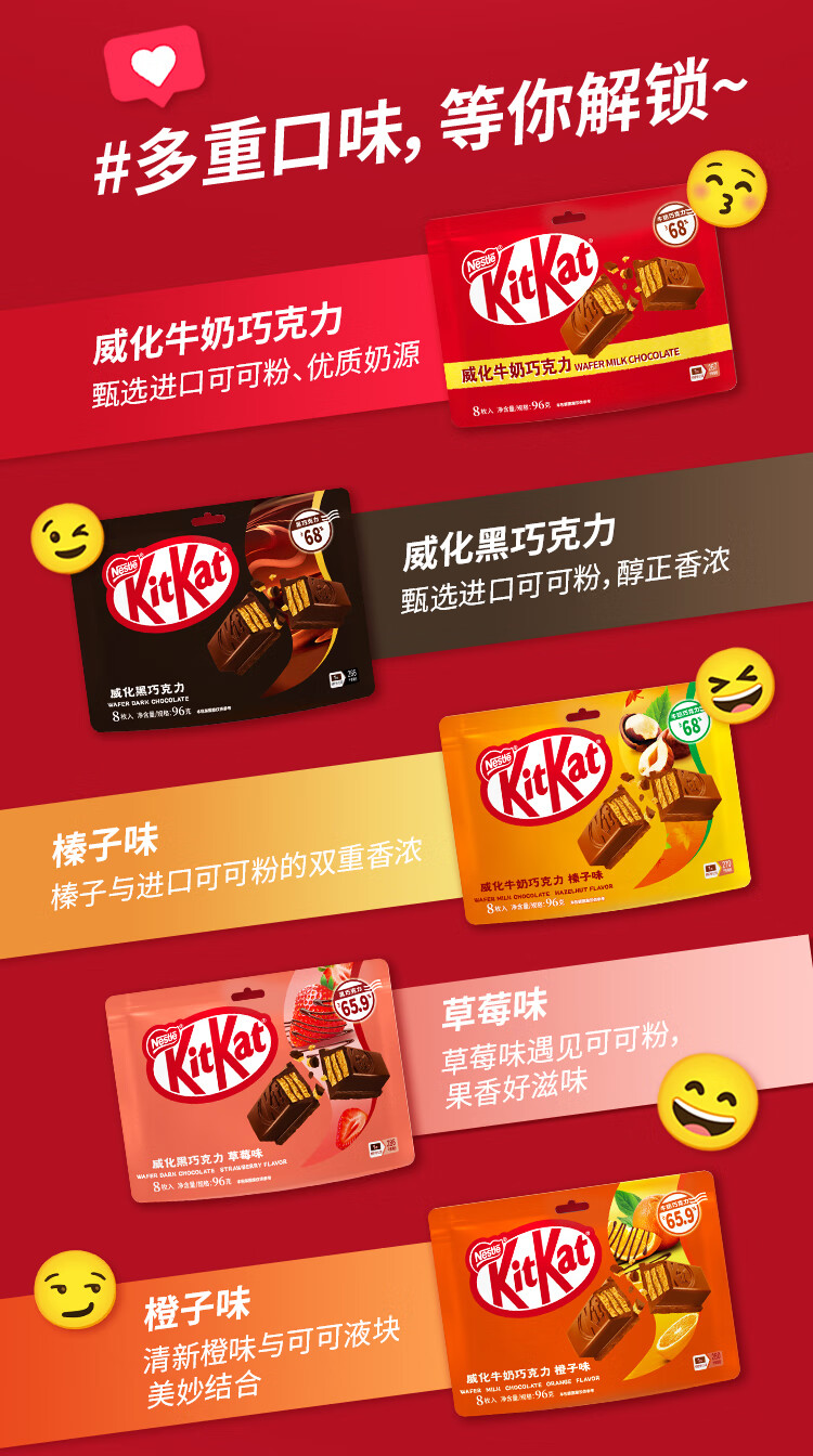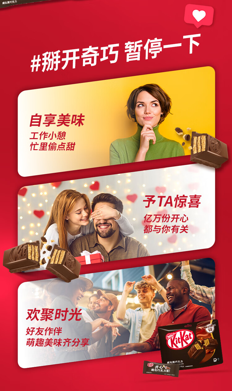 雀巢 奇巧kitkat威化夹心黑巧克力96g(8枚) 新年礼物 休闲零食 情人节