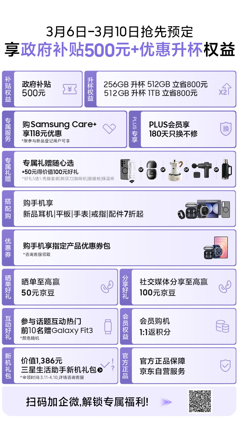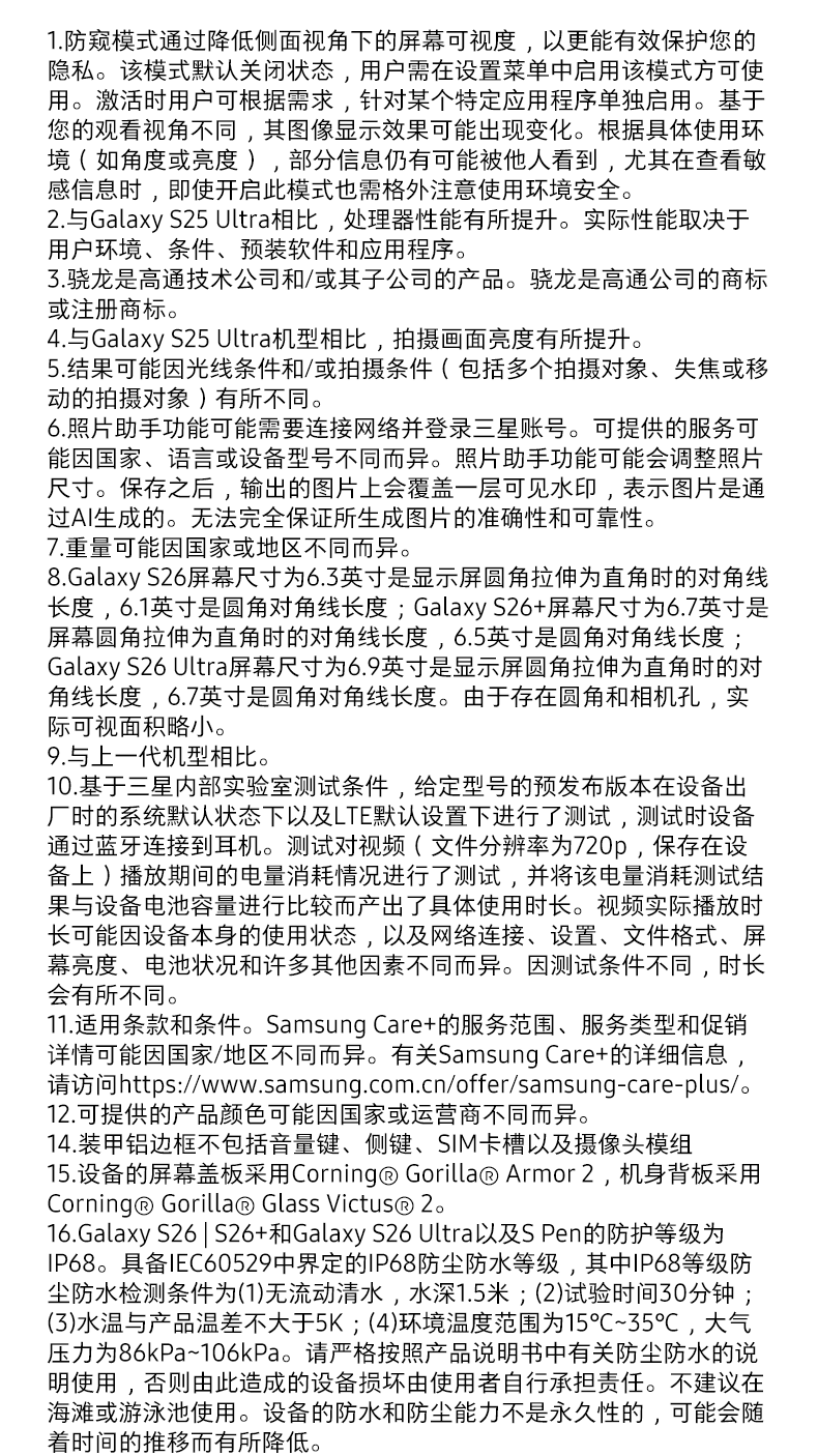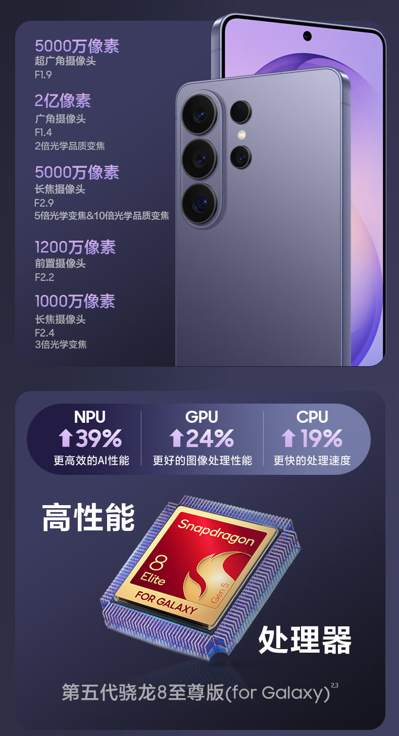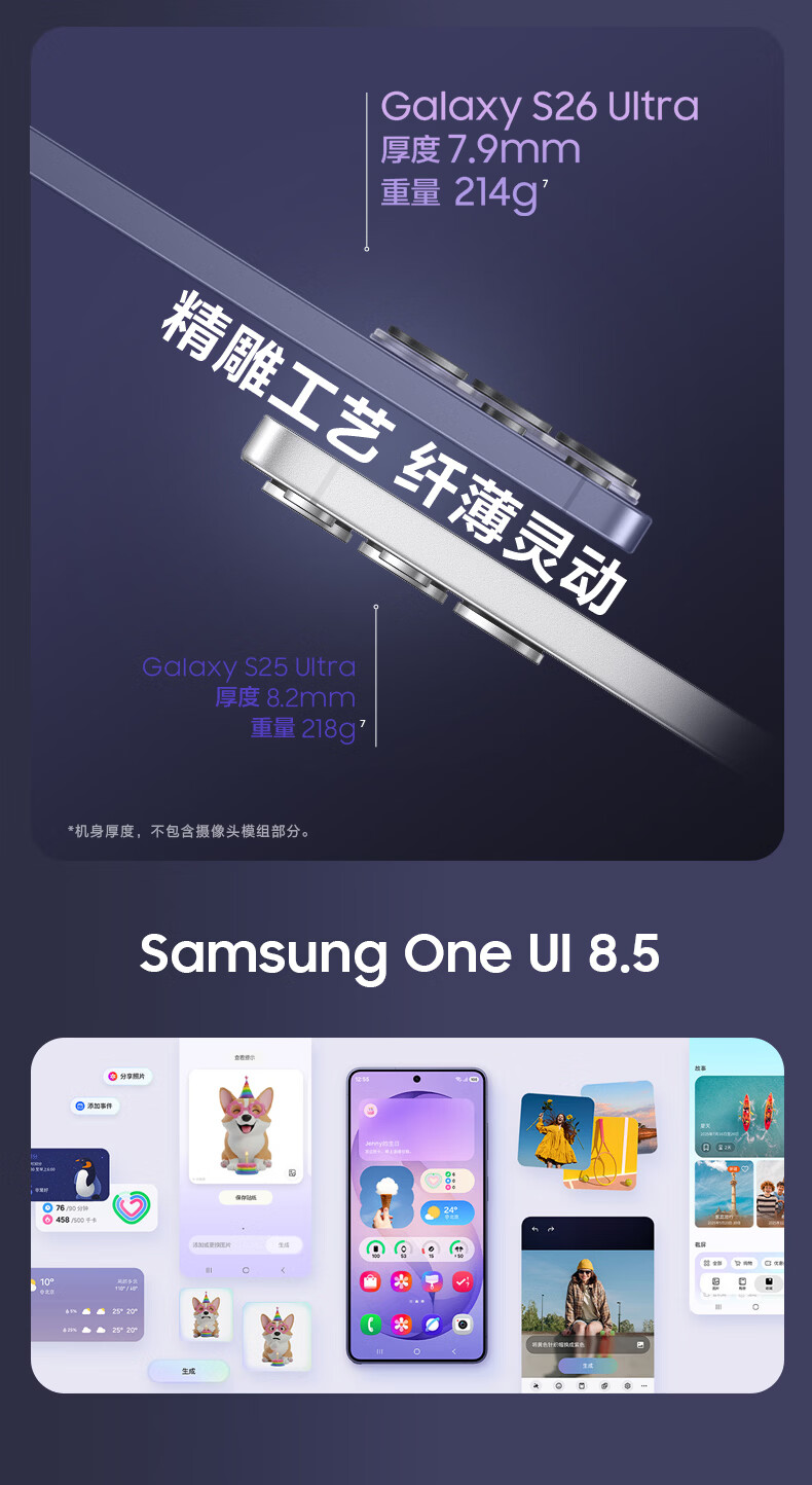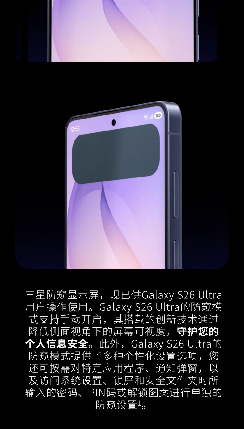 三星Galaxy S26 Ultra 防窥屏 AI游戏手机 2亿像素 支持eSIM卫星通信 政府补贴 256GB升杯512GB 映雪白