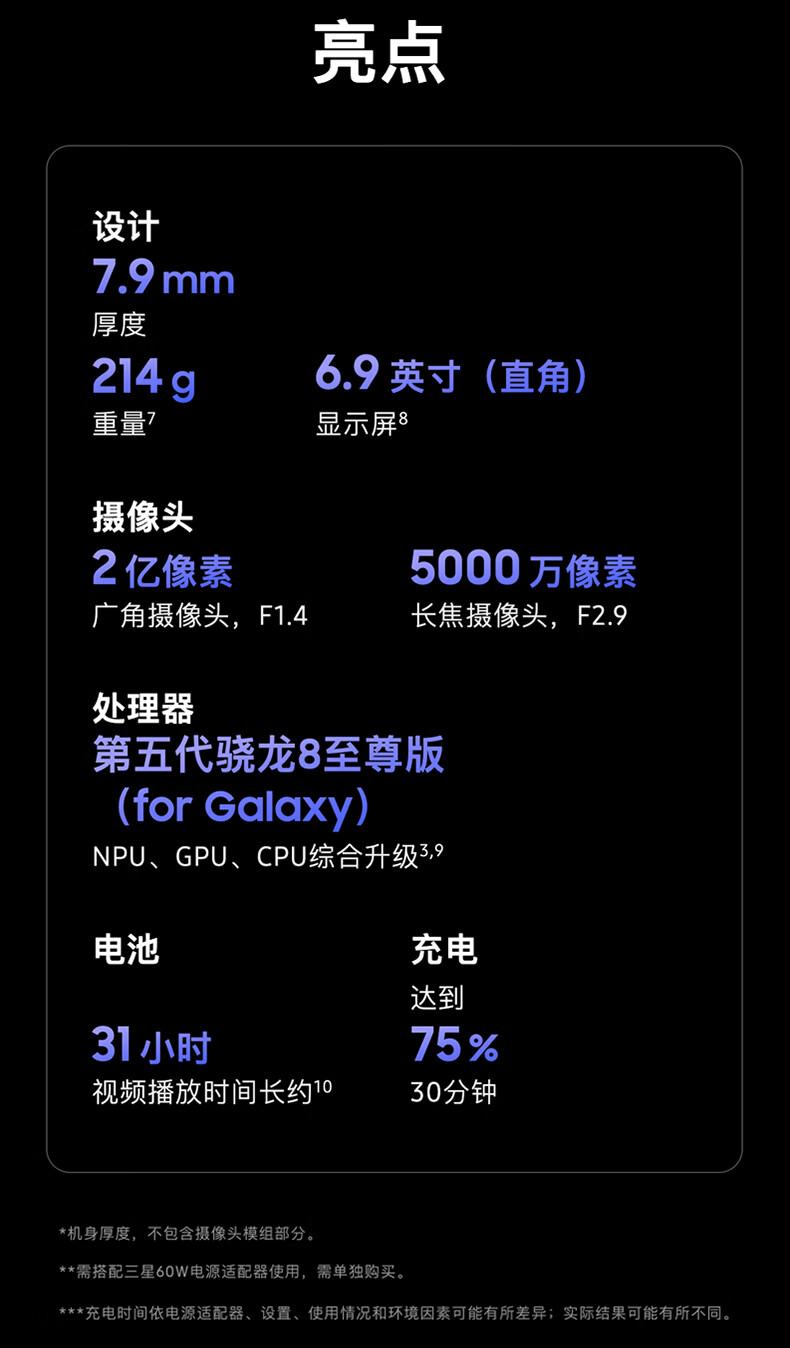 三星Samsung Galaxy Z Fold7 256GB升杯512GB 超轻薄折叠屏手机 2亿像素 骁龙8至尊版 AI手机 暗影蓝