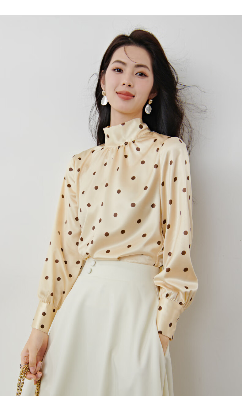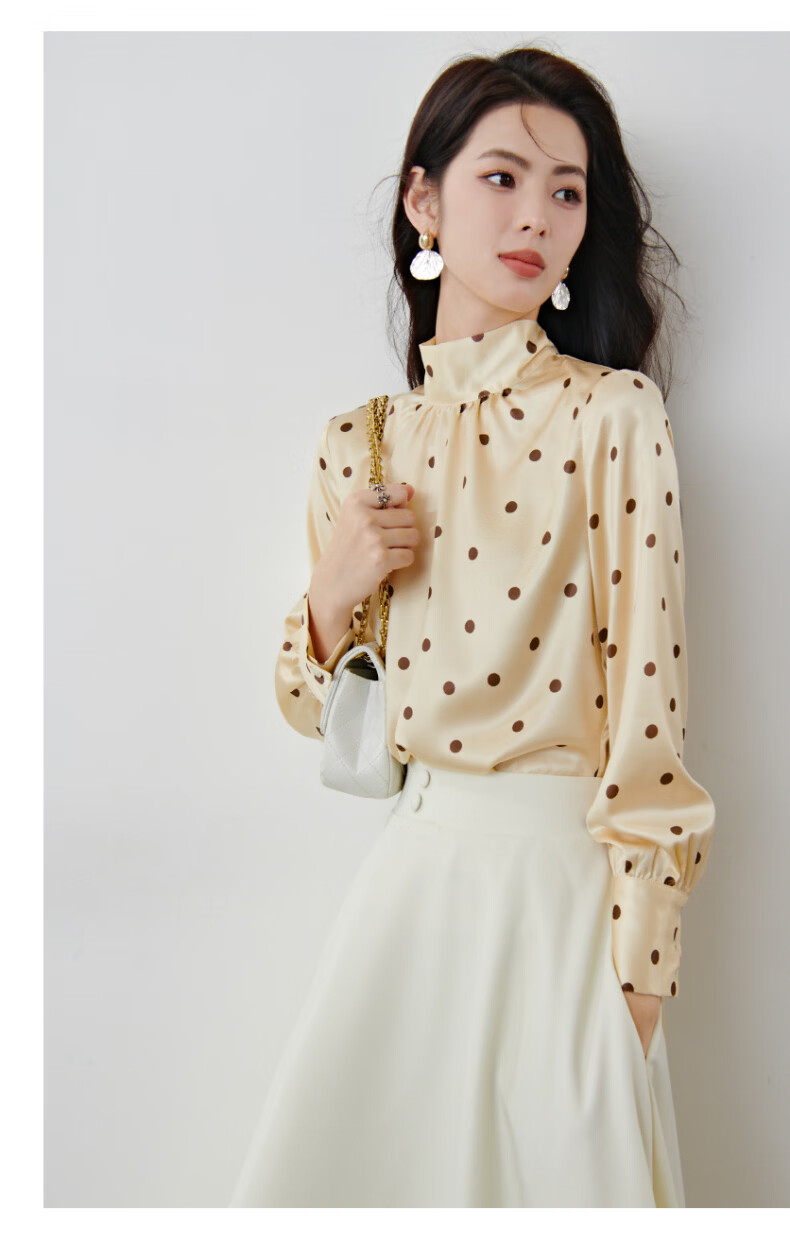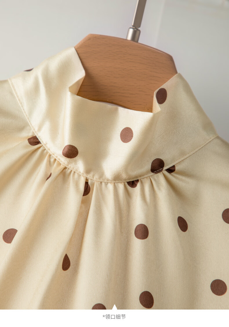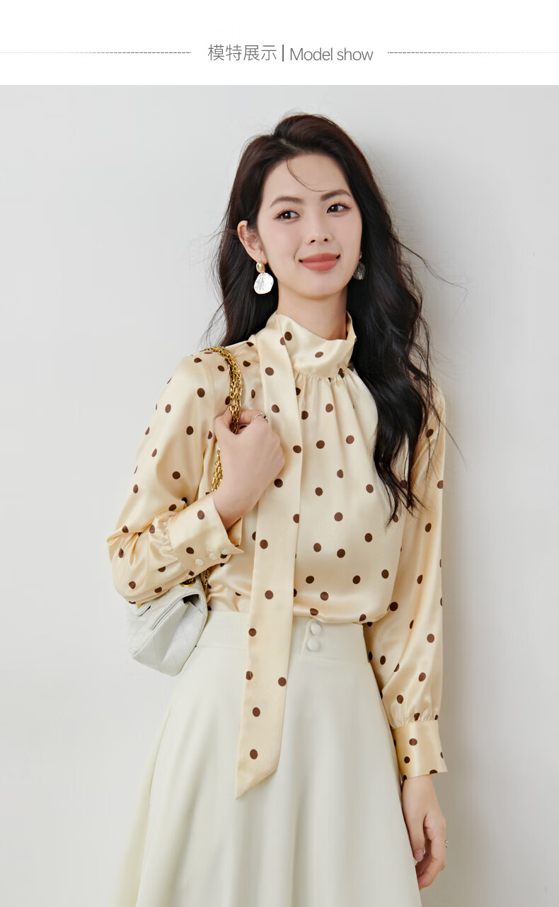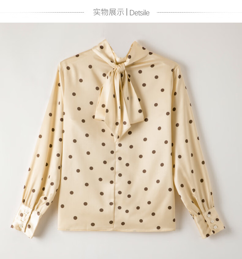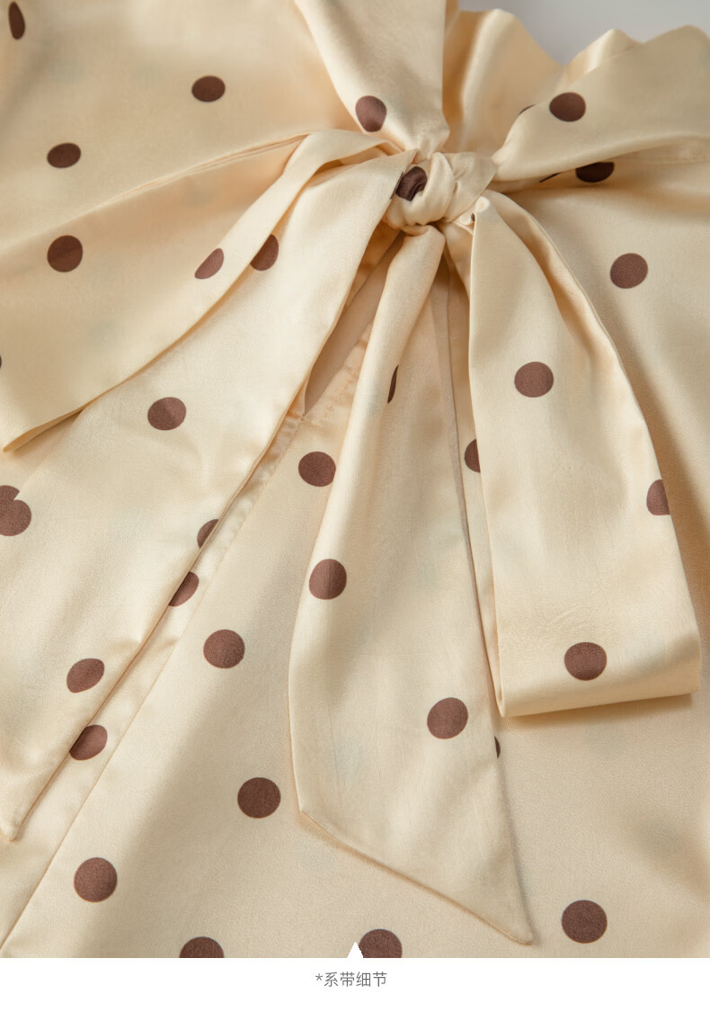 晚白【新品】2026春款法式优雅波点蝴蝶结系带上衣丝滑缎面气质衬衫女 波点 M