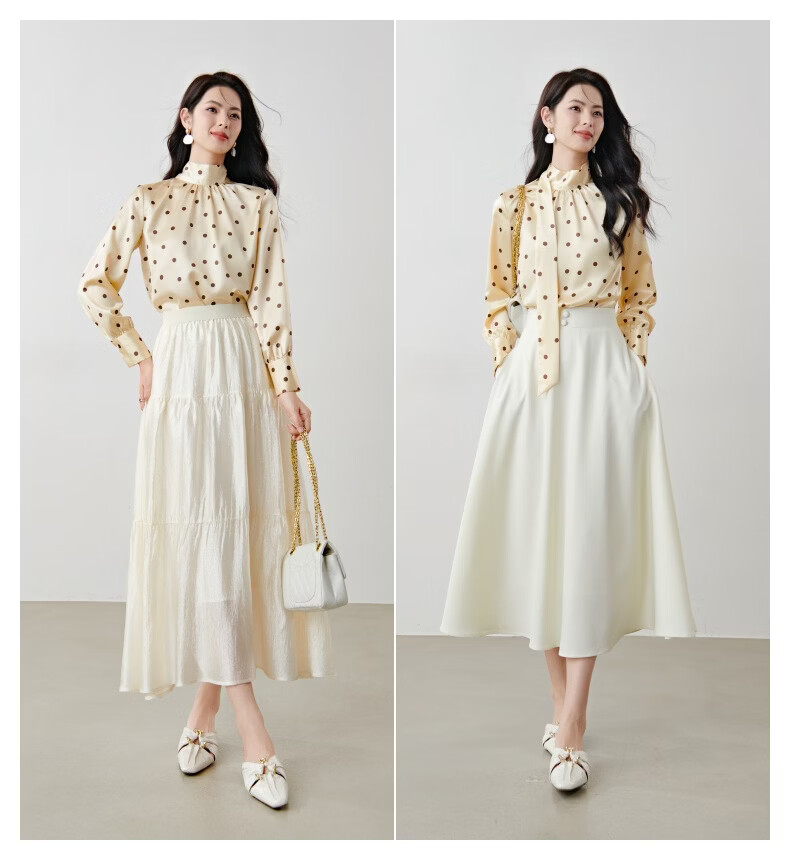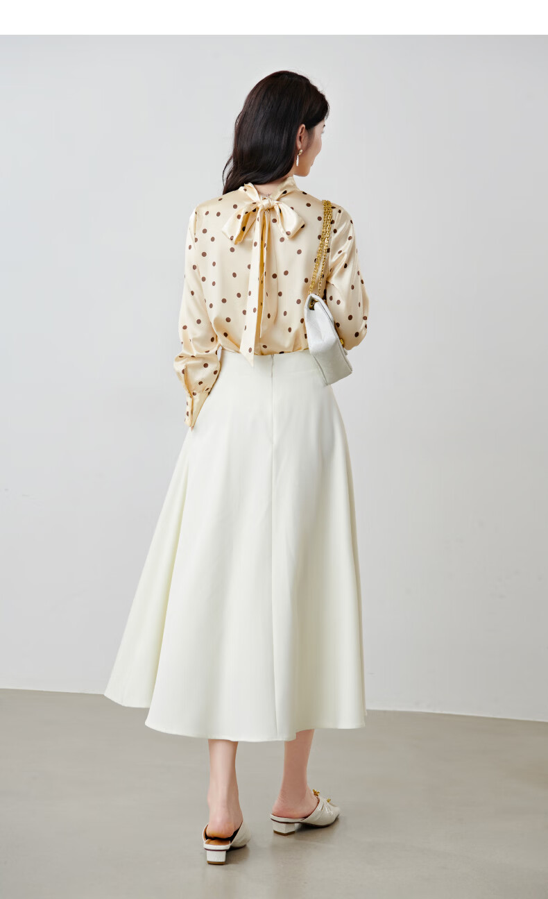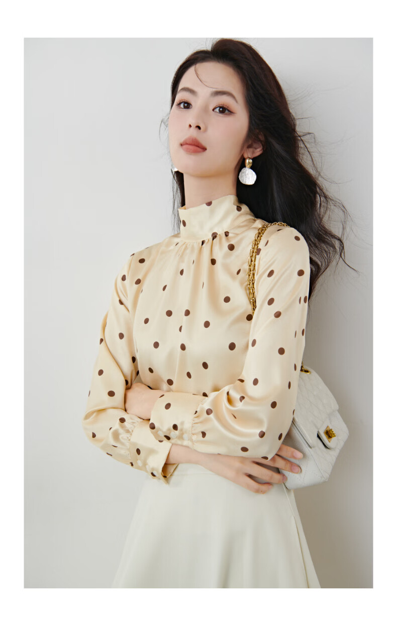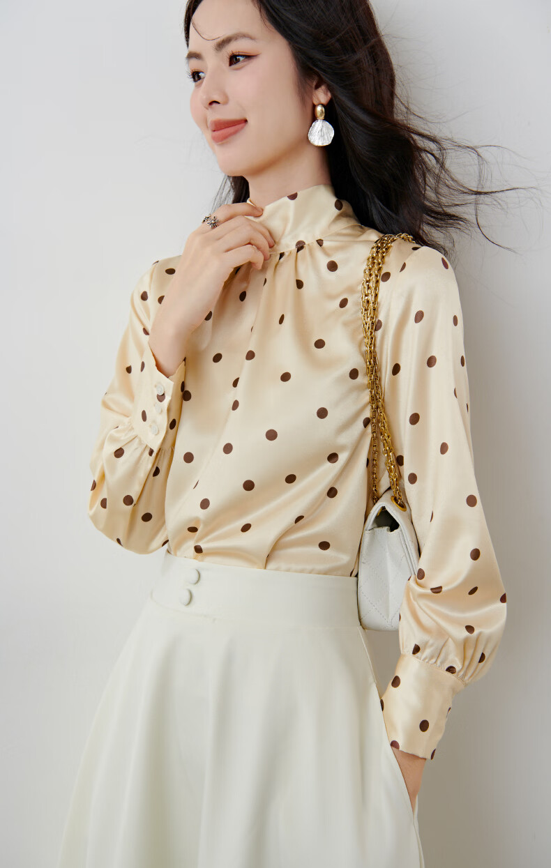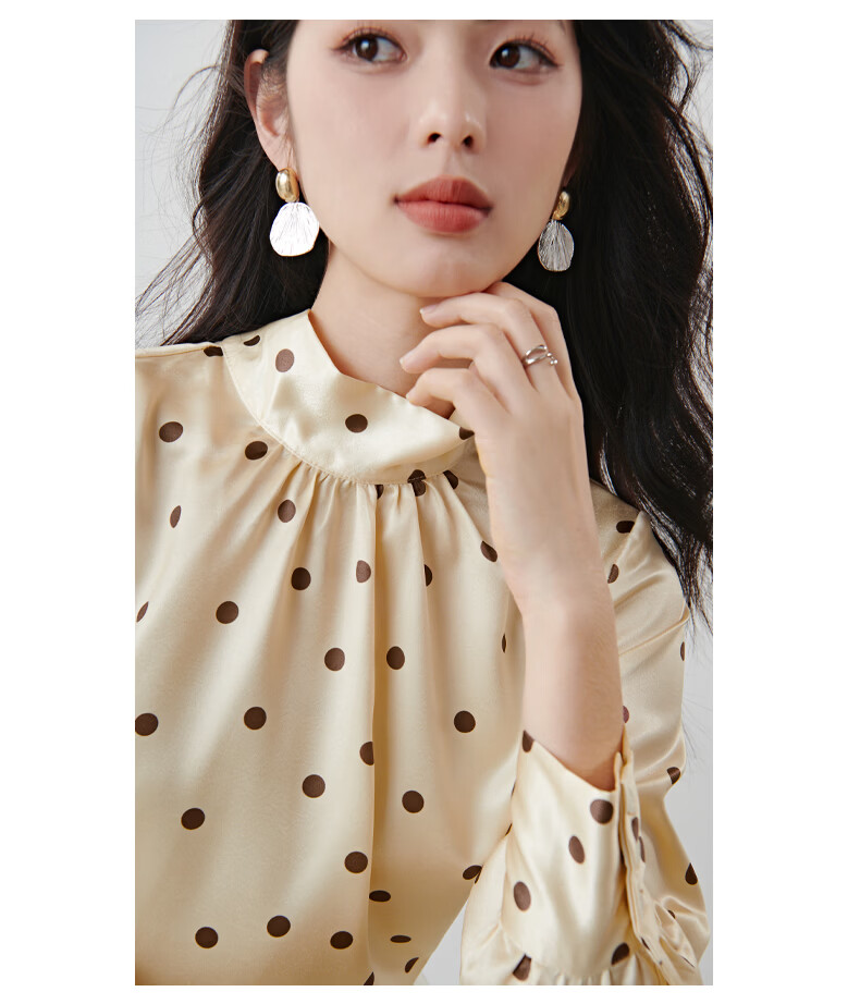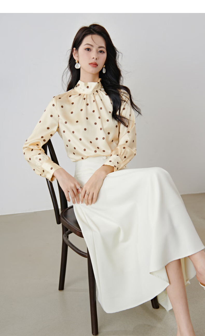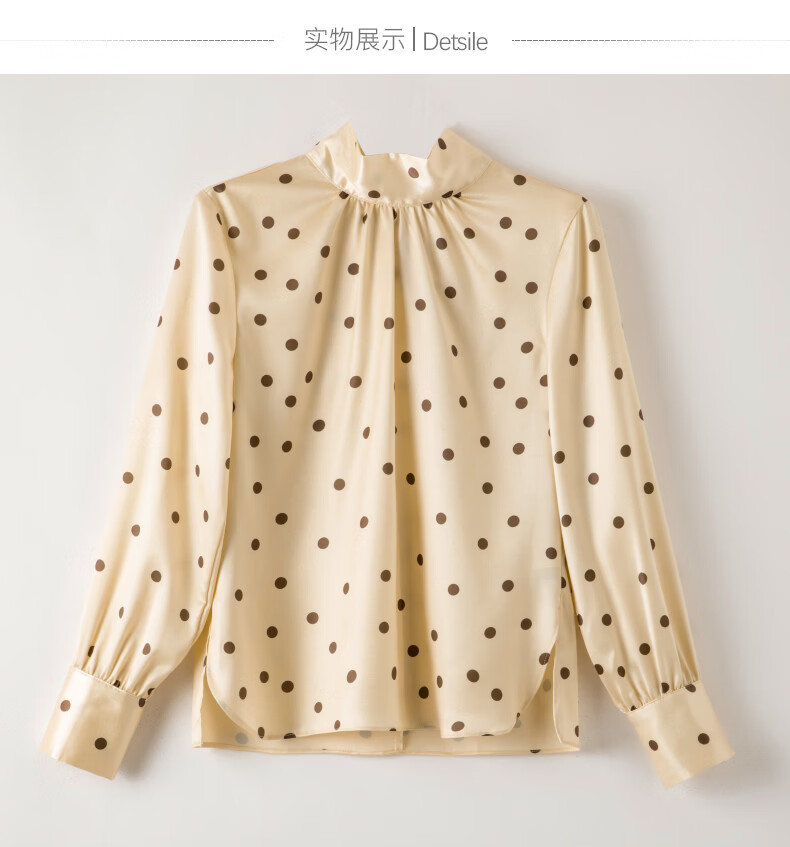晚白【新品】2026春款法式优雅波点蝴蝶结系带上衣丝滑缎面气质衬衫女 波点 M