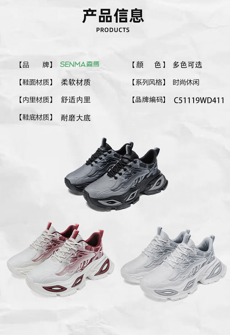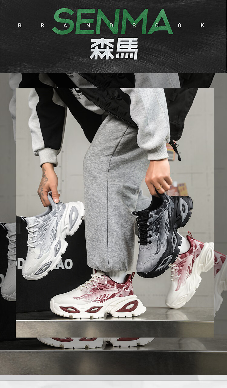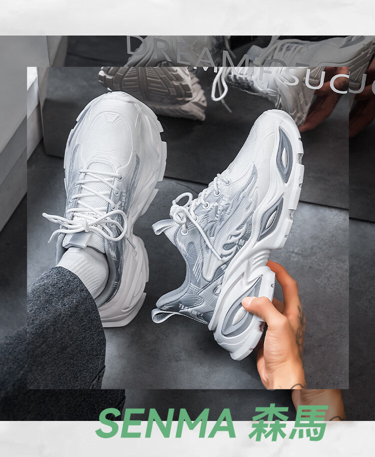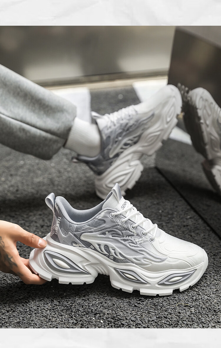 森馬爆款男鞋2026新款春季潮流百搭透气休闲运动学生厚底增高老爹潮鞋 白灰【基础款】 42 标准码数/现货秒发