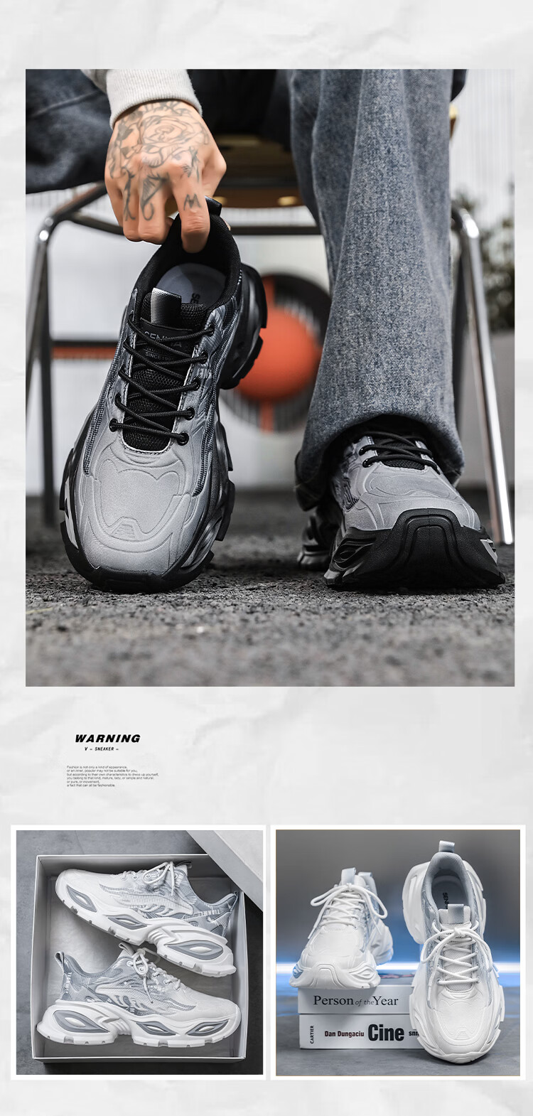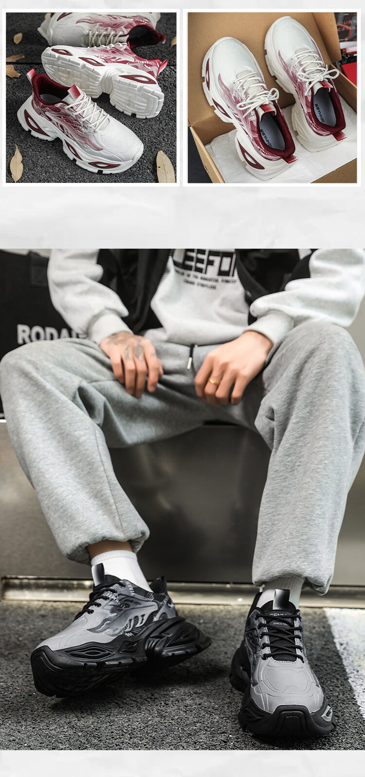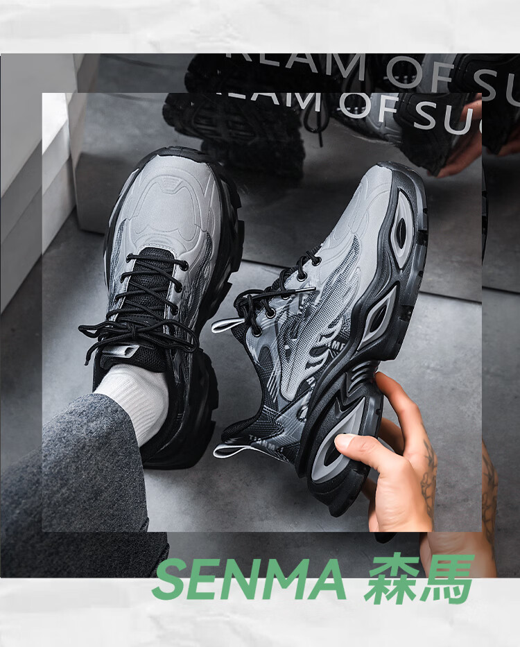 森馬爆款男鞋2026新款春季潮流百搭透气休闲运动学生厚底增高老爹潮鞋 白灰【基础款】 42 标准码数/现货秒发