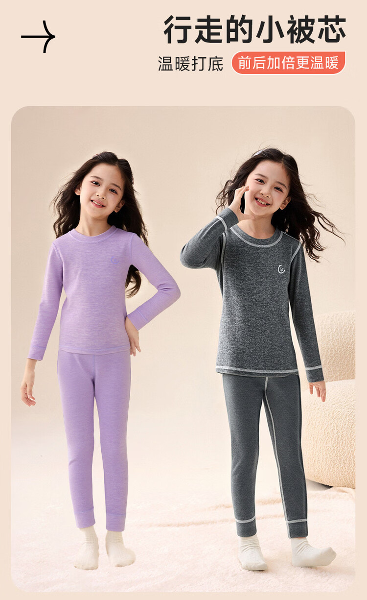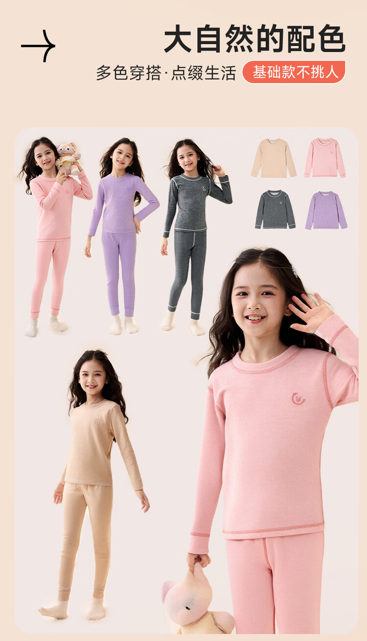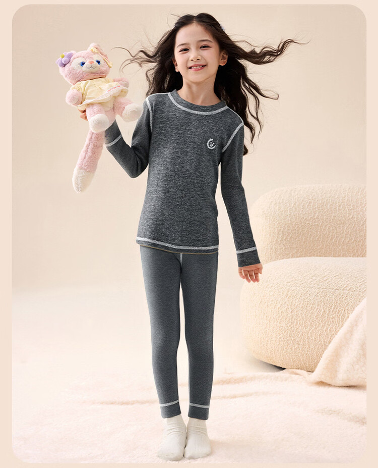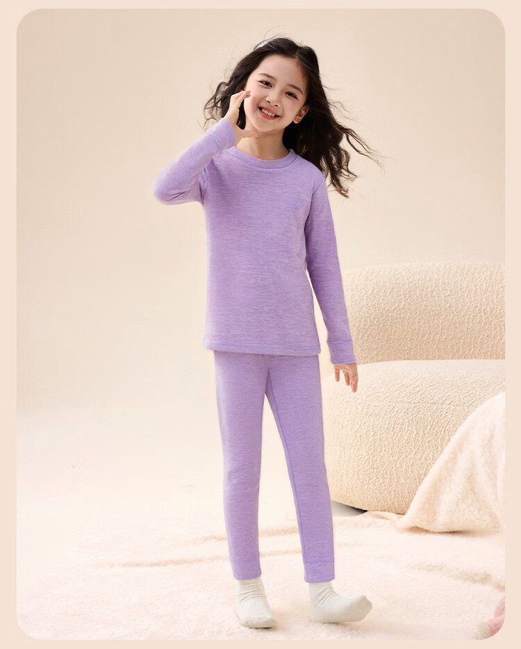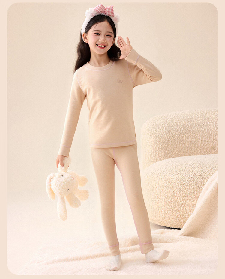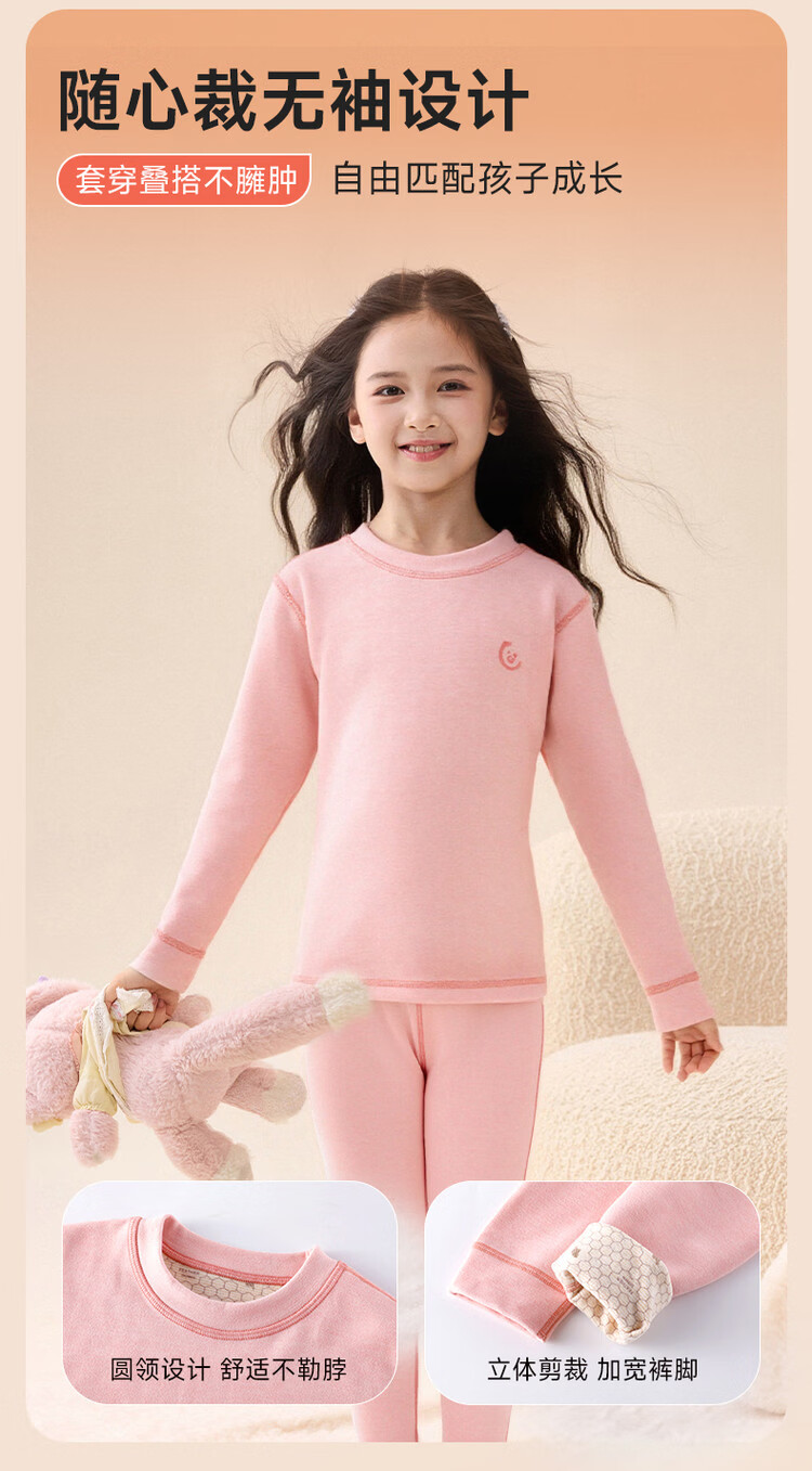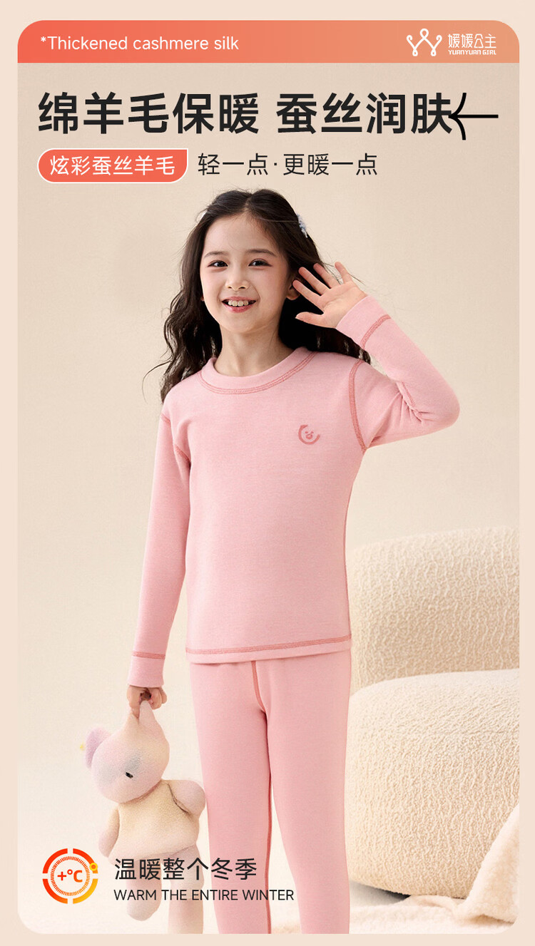 媛媛公主【含蚕丝羊毛】保暖秋衣秋裤女童内衣套装秋冬款儿童双面磨绒打底 粉色 110