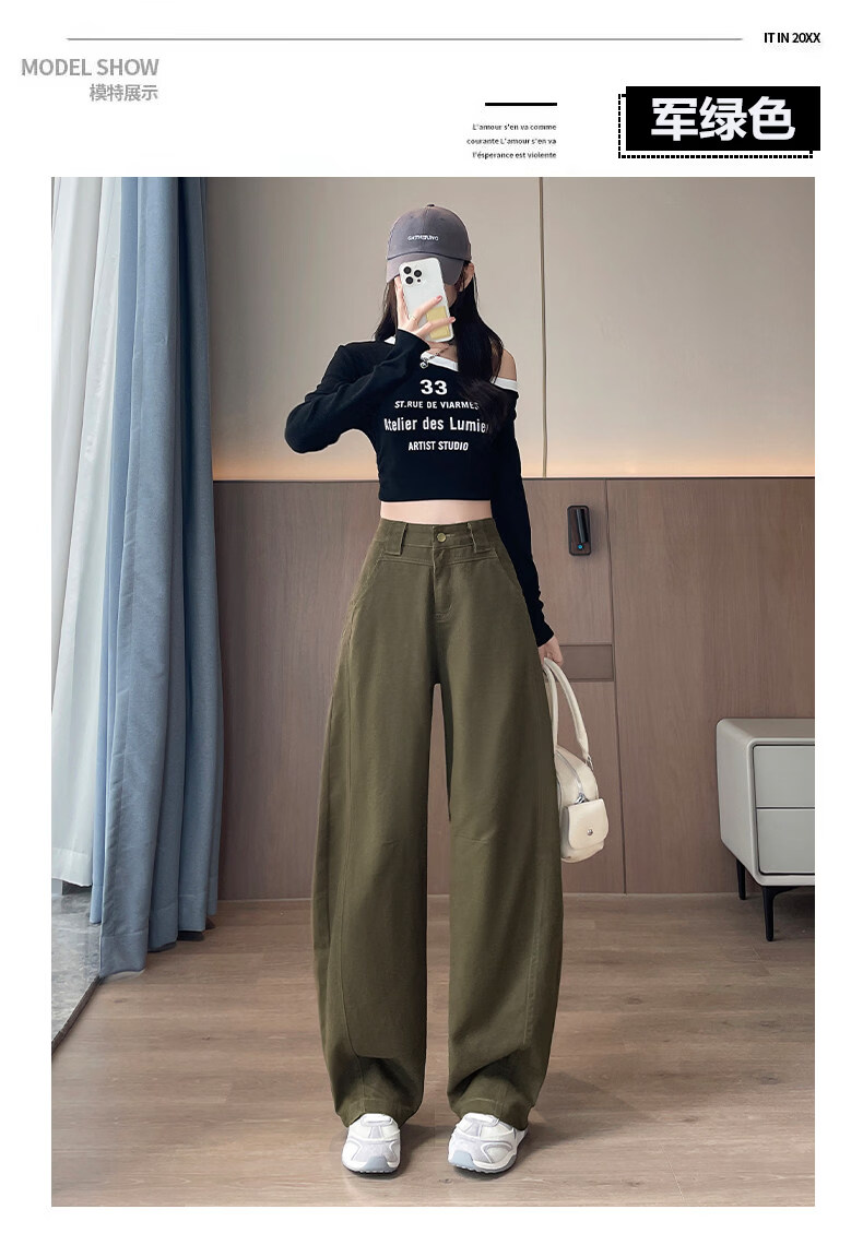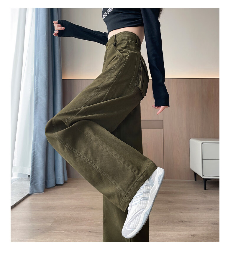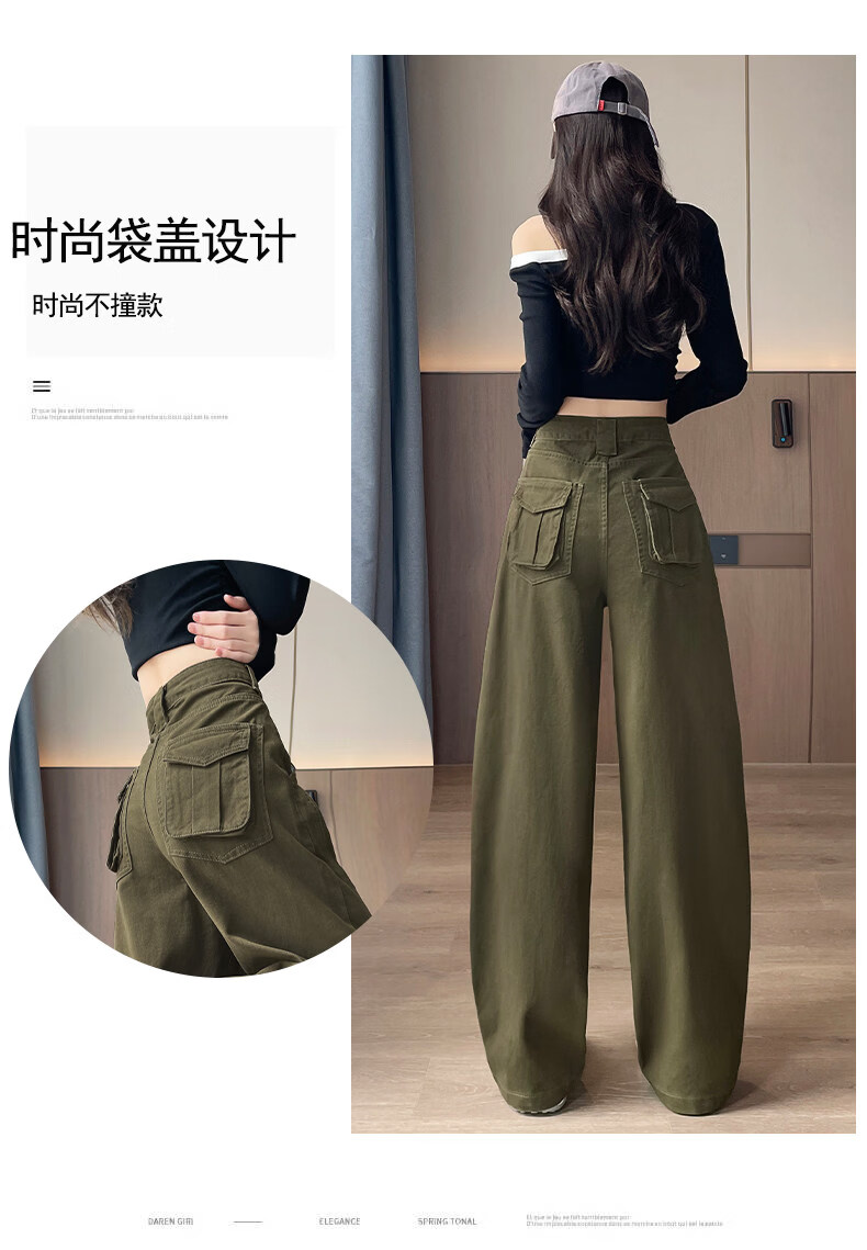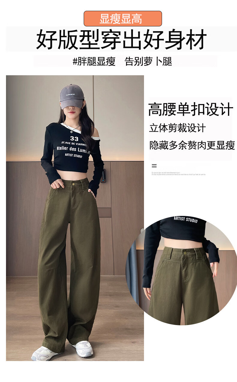 MODX军绿色工装裤2026秋季新设计高腰直腰宽松弯刀裤后宫牛仔裤 军绿色【长裤】 XS