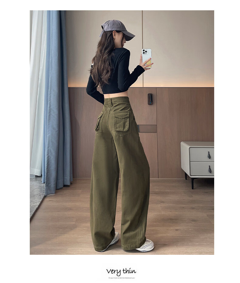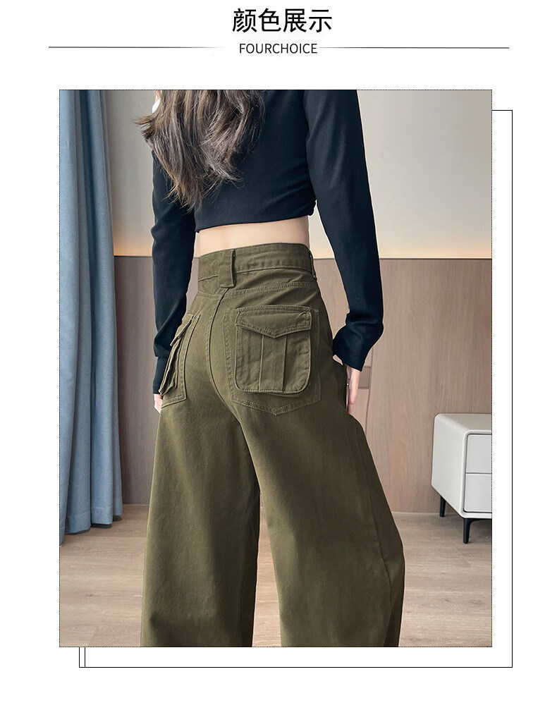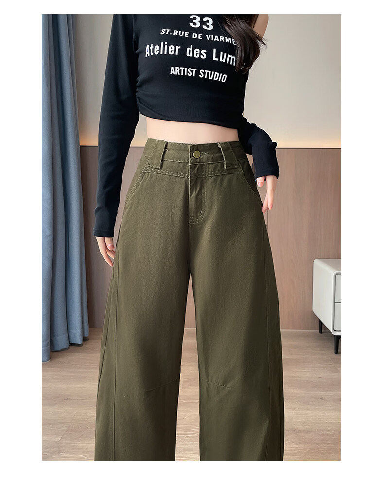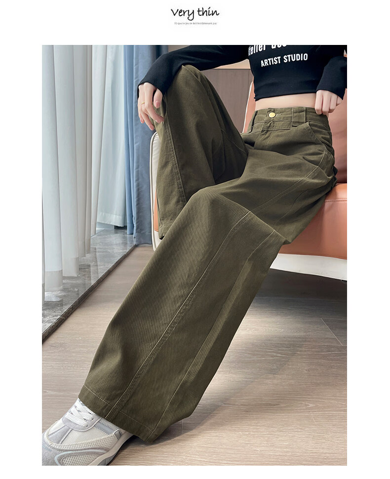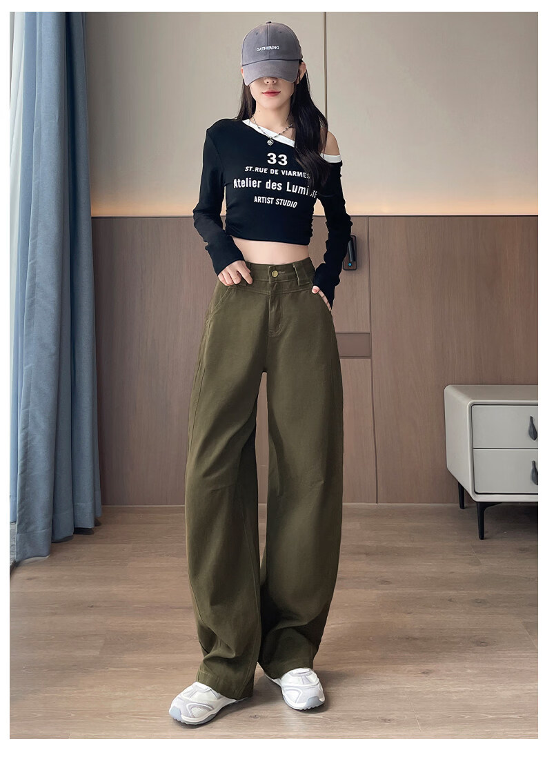 MODX军绿色工装裤2026秋季新设计高腰直腰宽松弯刀裤后宫牛仔裤 军绿色【长裤】 XS