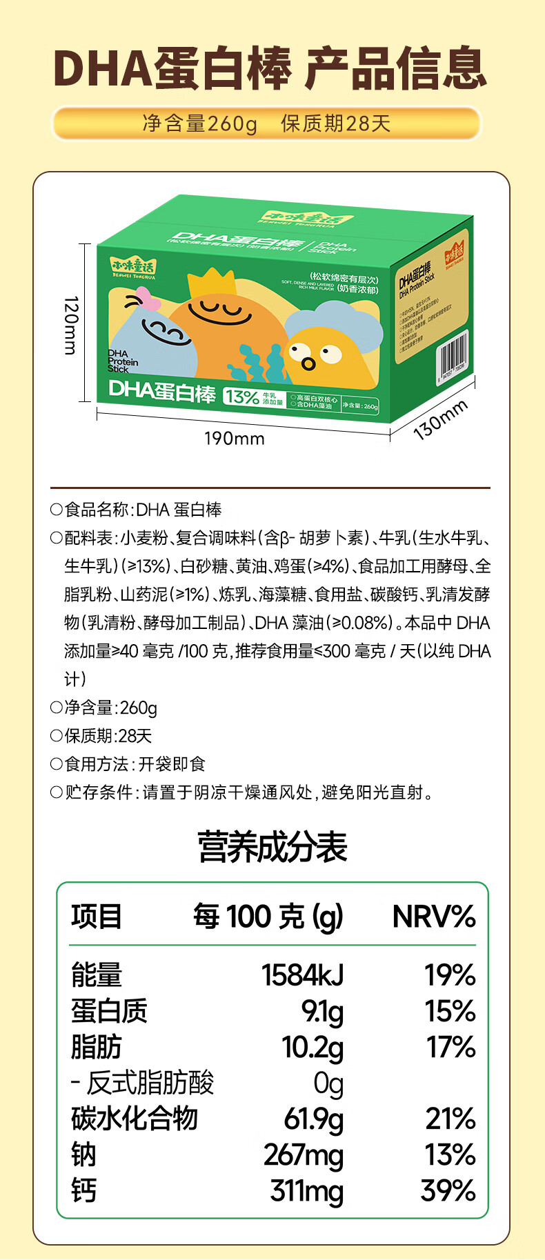 本味童话DHA高钙水牛乳蛋白棒山药面包棒宝宝零食儿童260g面包新语联名 DHA蛋白棒面包260g*1箱