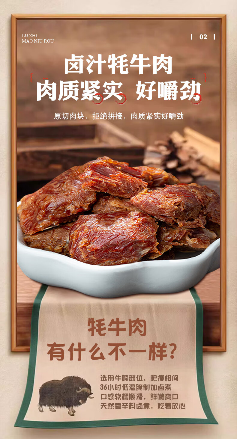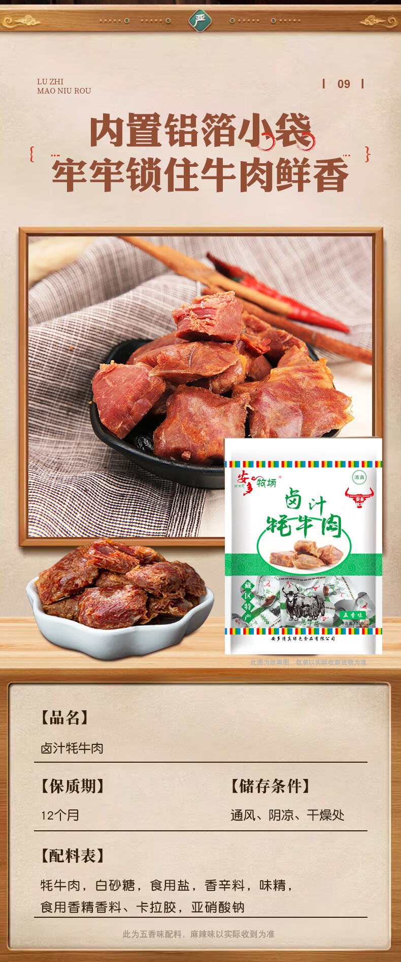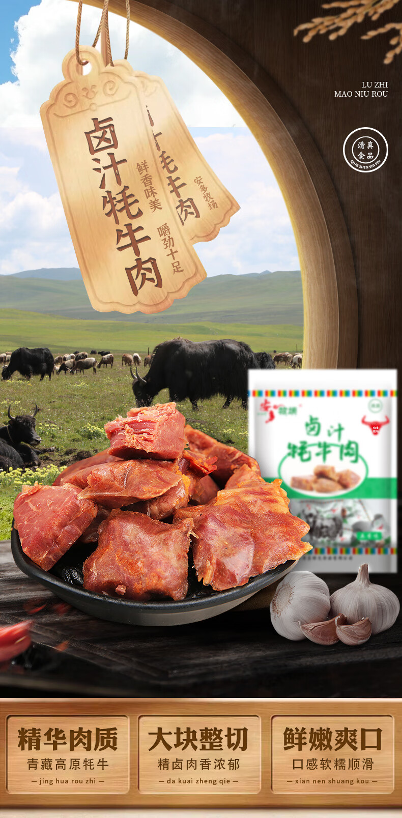 安多牧场甘肃特产散养卤汁酱卤牦牛肉300克五香味清真独立包装休闲零食