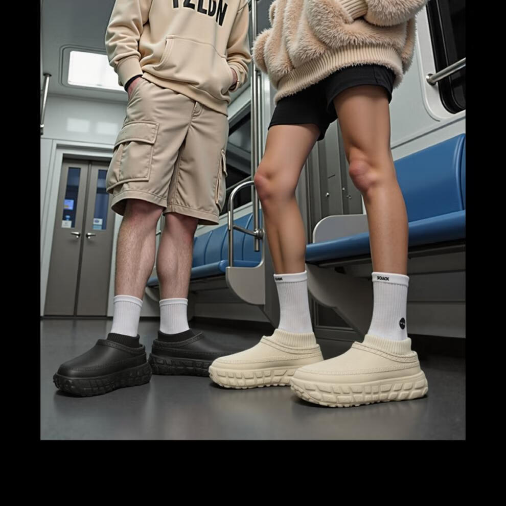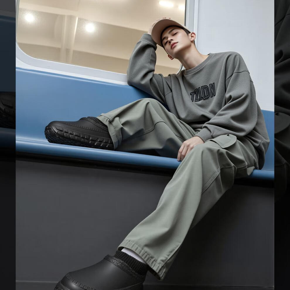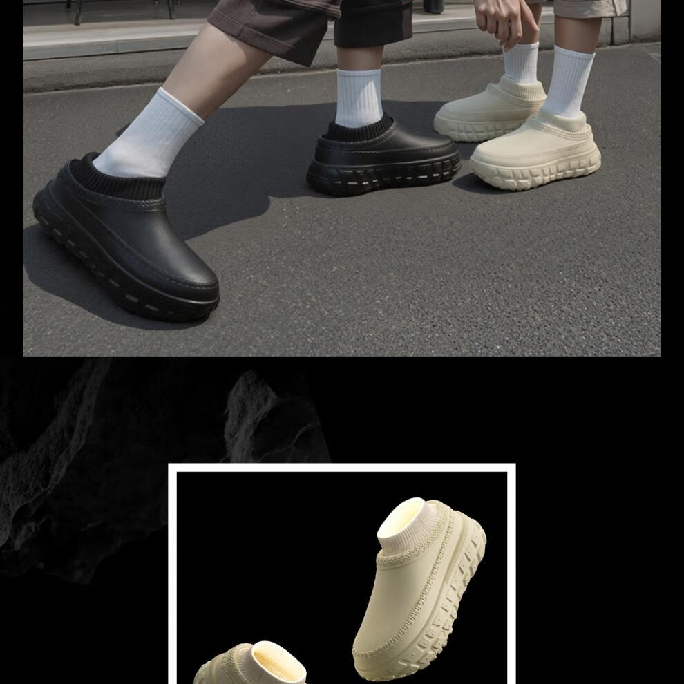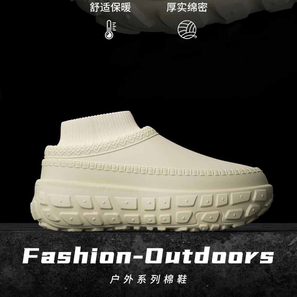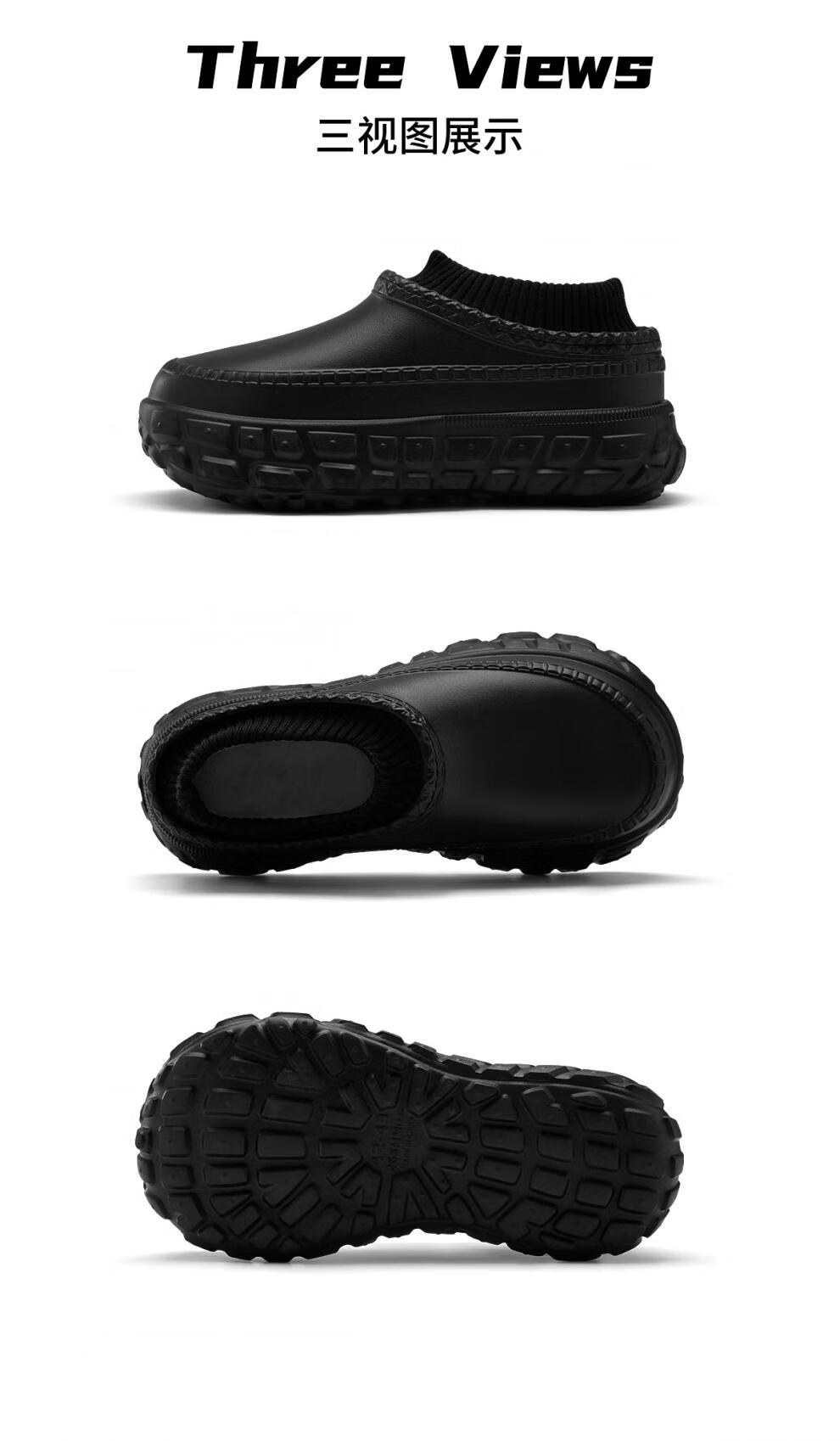 稻草人(MEXICAN)运动棉鞋男外穿冬季保暖防水防滑加厚底加绒洞洞鞋男款棉拖鞋黑色 幻影黑 【轮胎级防滑】 40 -41【适合39-40码】
