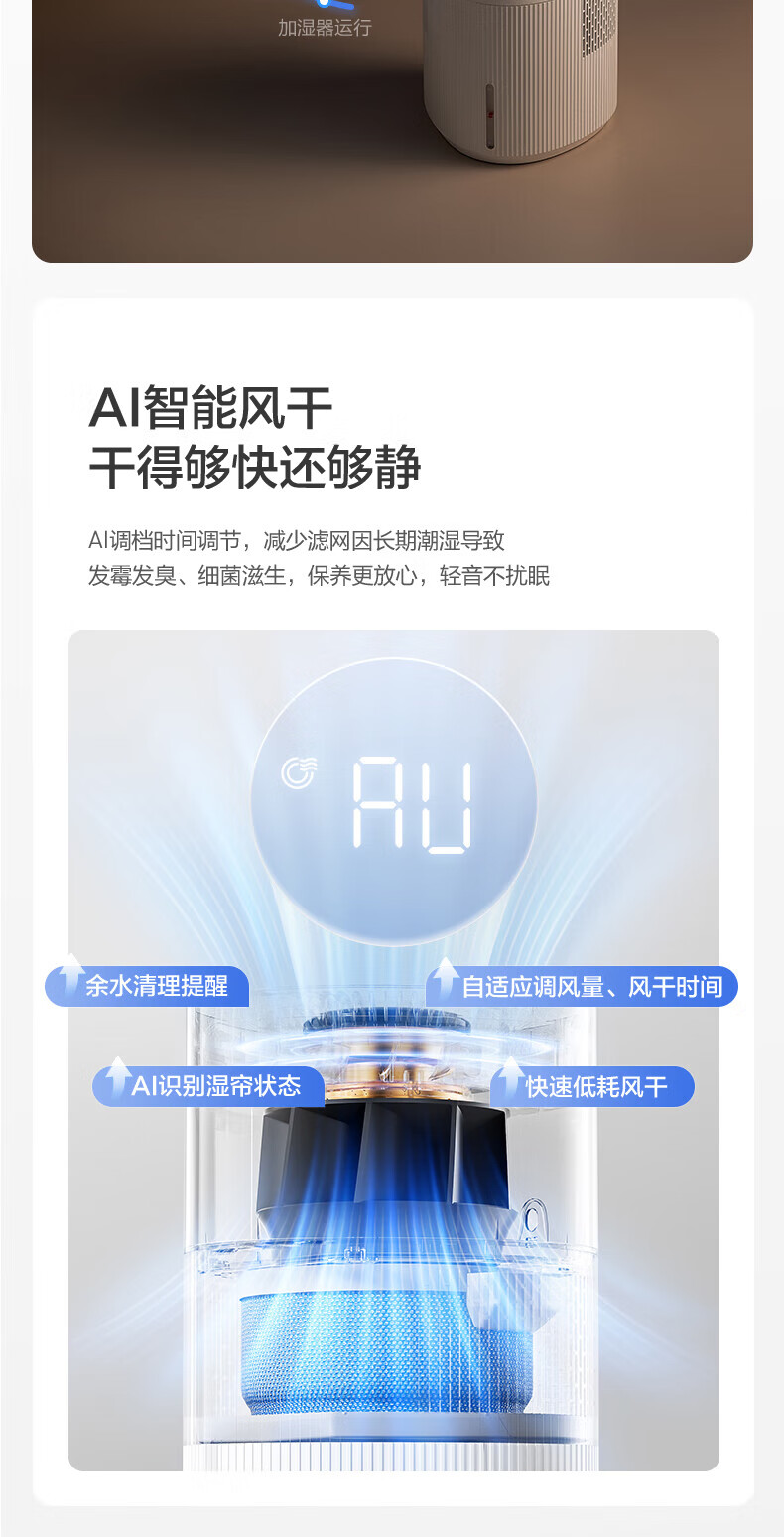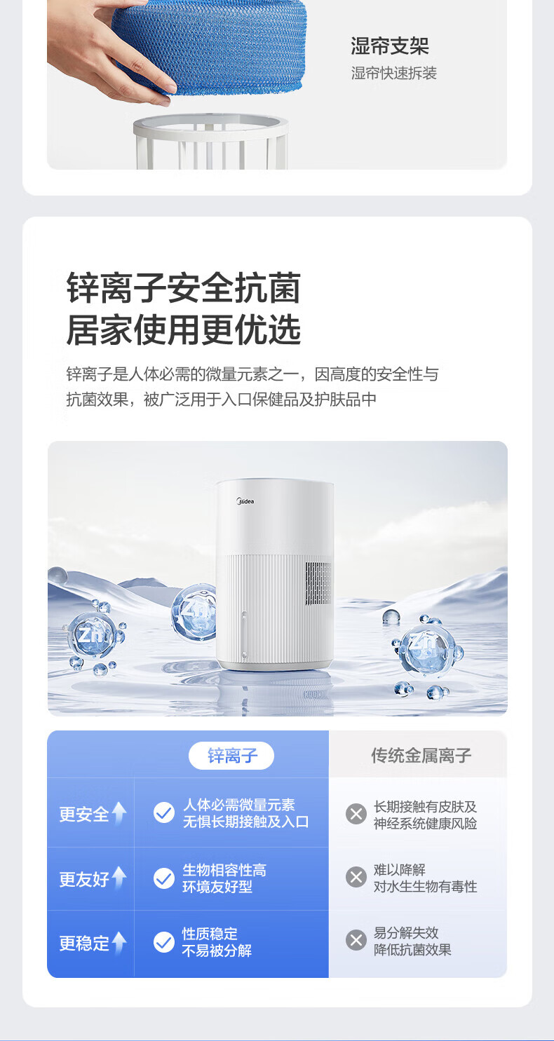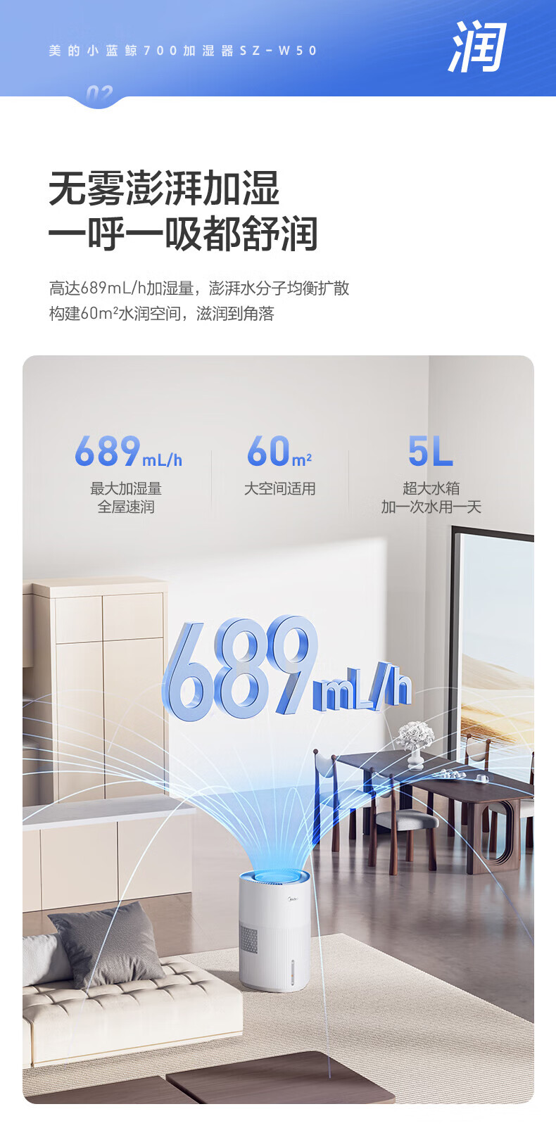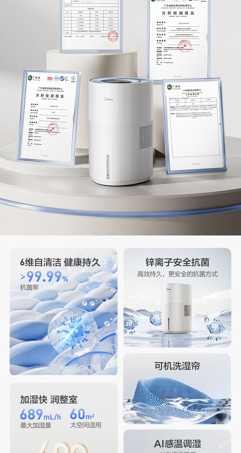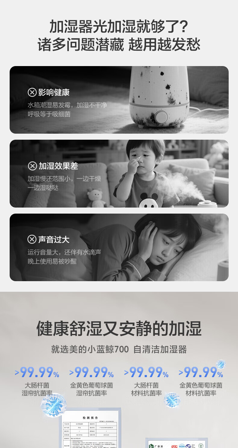 美的(Midea)小蓝鲸700无雾空气加湿器净化器蒸发式鼻炎孕妇婴幼儿家用卧室除菌雾化空调取暖补水礼物 SZ-W50 【小蓝鲸700】