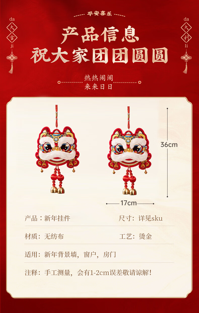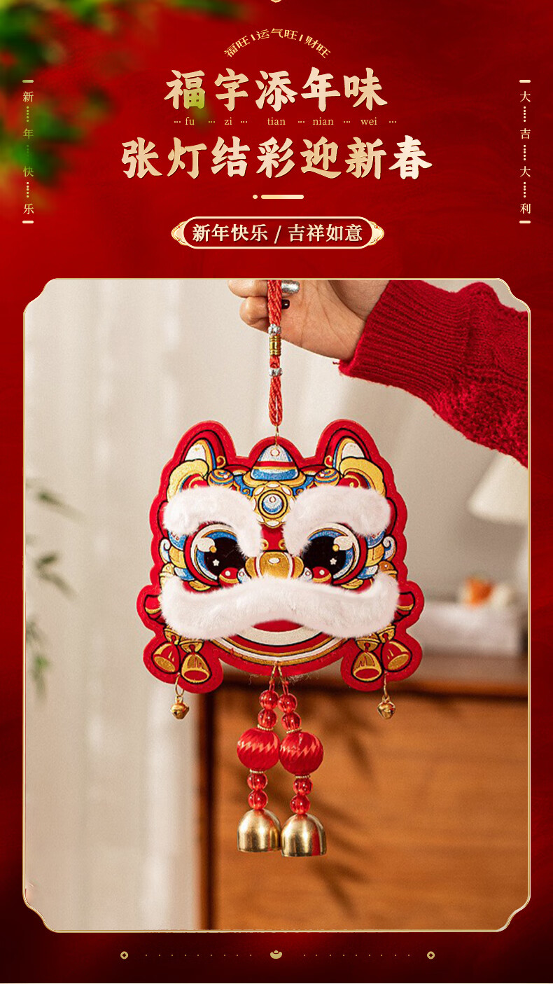 极度空间 新年小灯笼2026春节装饰马年手工diy礼物儿童手提醒狮灯笼