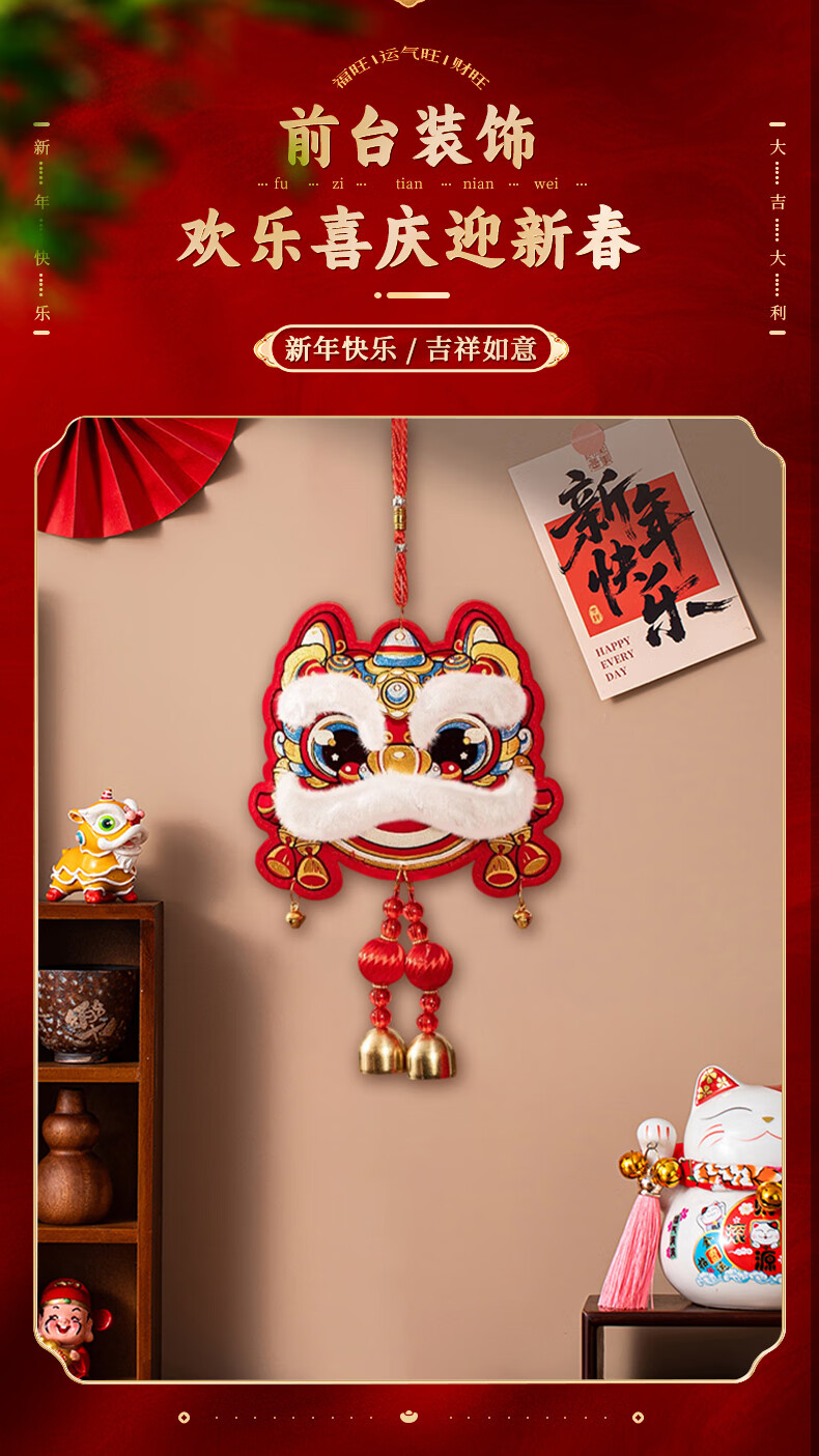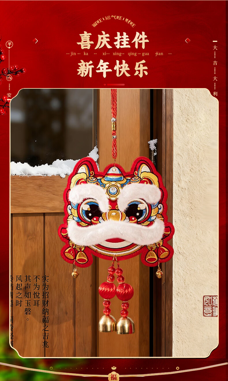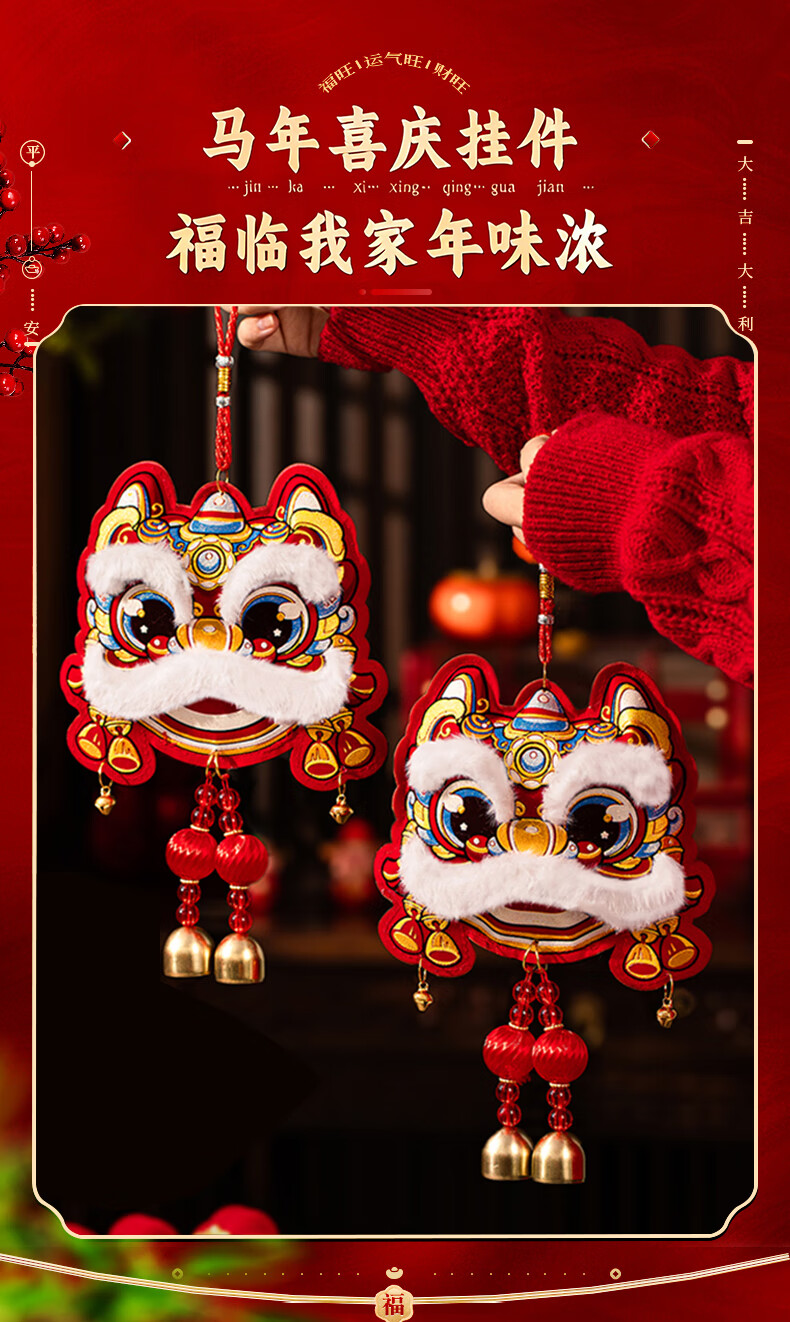 新玥新年装饰马年挂件2026春节喜庆毛球挂饰客厅门把手氛围布置用品
