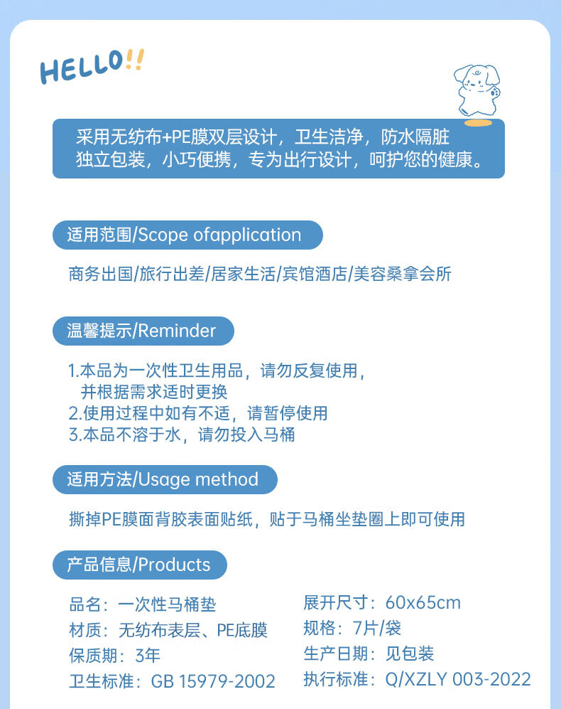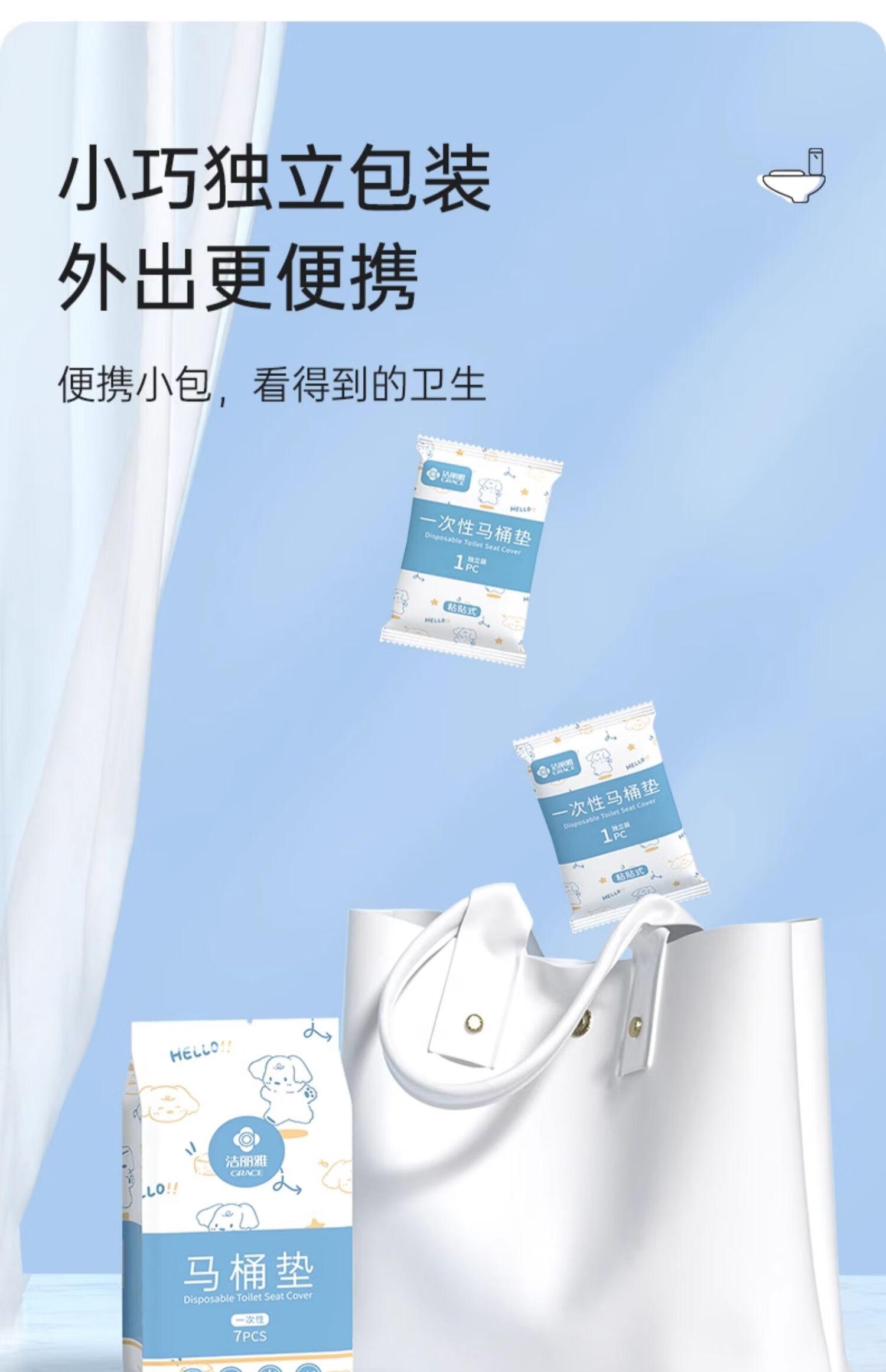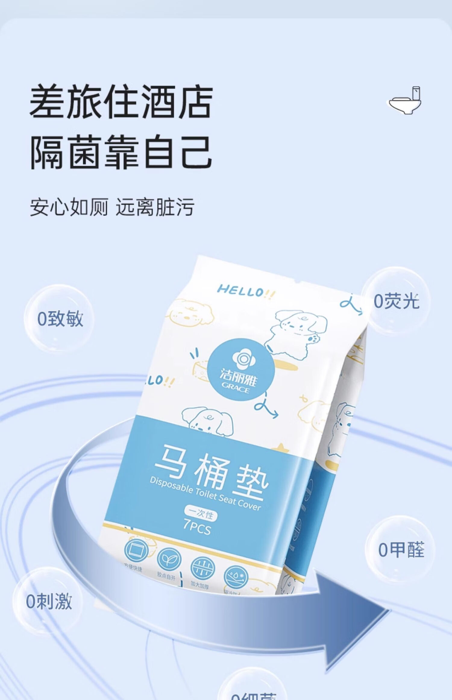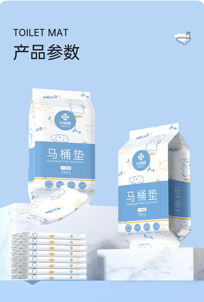 洁丽雅(Grace)一次性马桶垫14片装60*65cm大尺寸酒店产妇旅行坐便垫