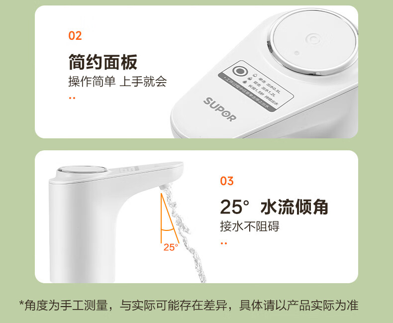 苏泊尔SUPOR 桶装水电动抽水器自动取水器饮水机上水器 KGE14AB10