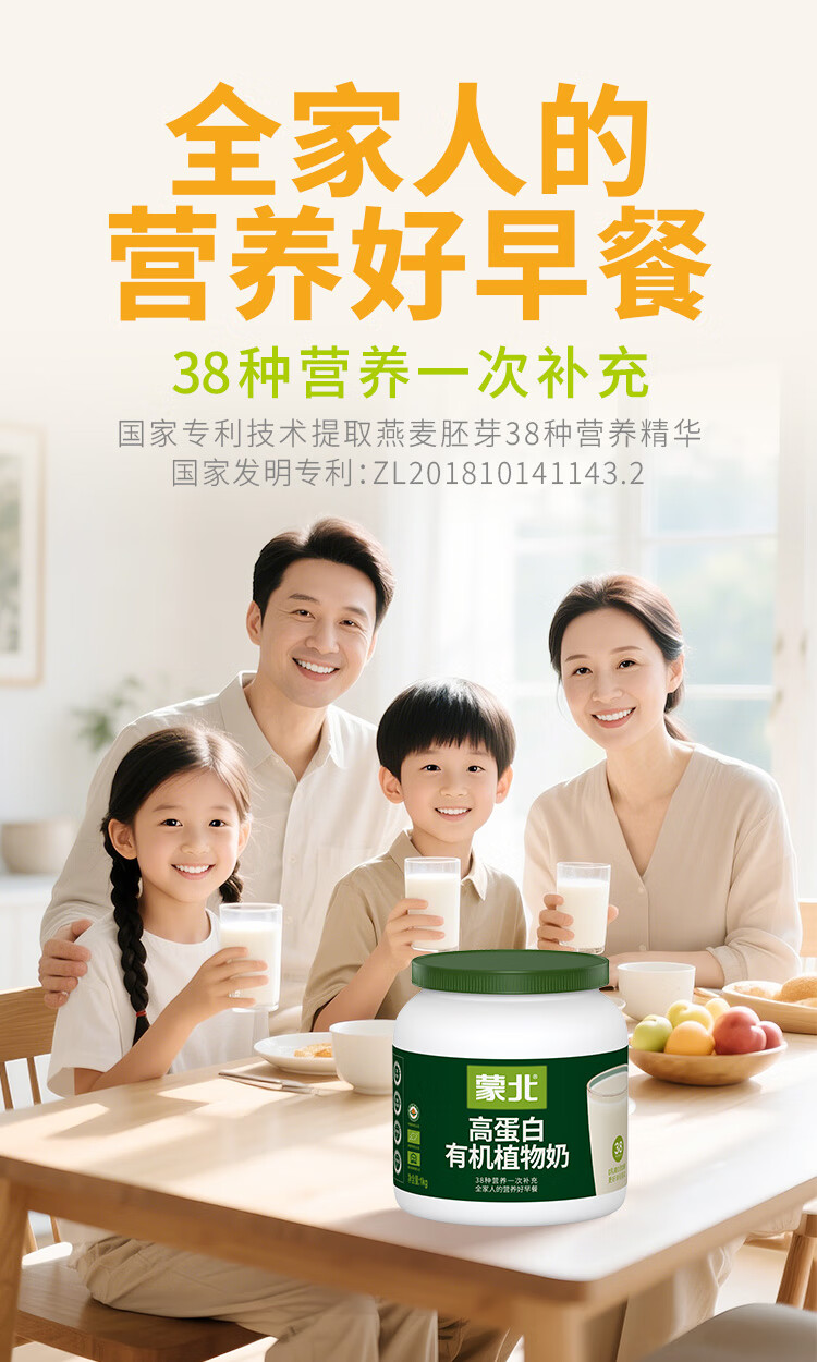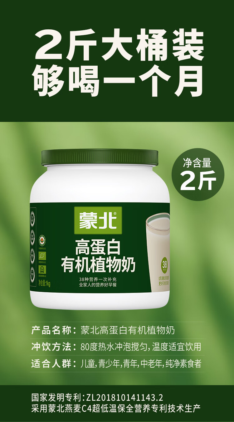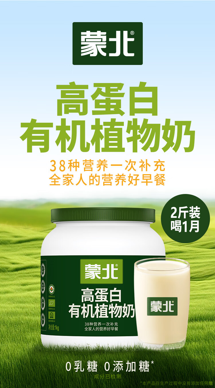 蒙北高蛋白有机植物奶0乳糖燕麦奶粉纯素营养早餐中老年儿童1kg