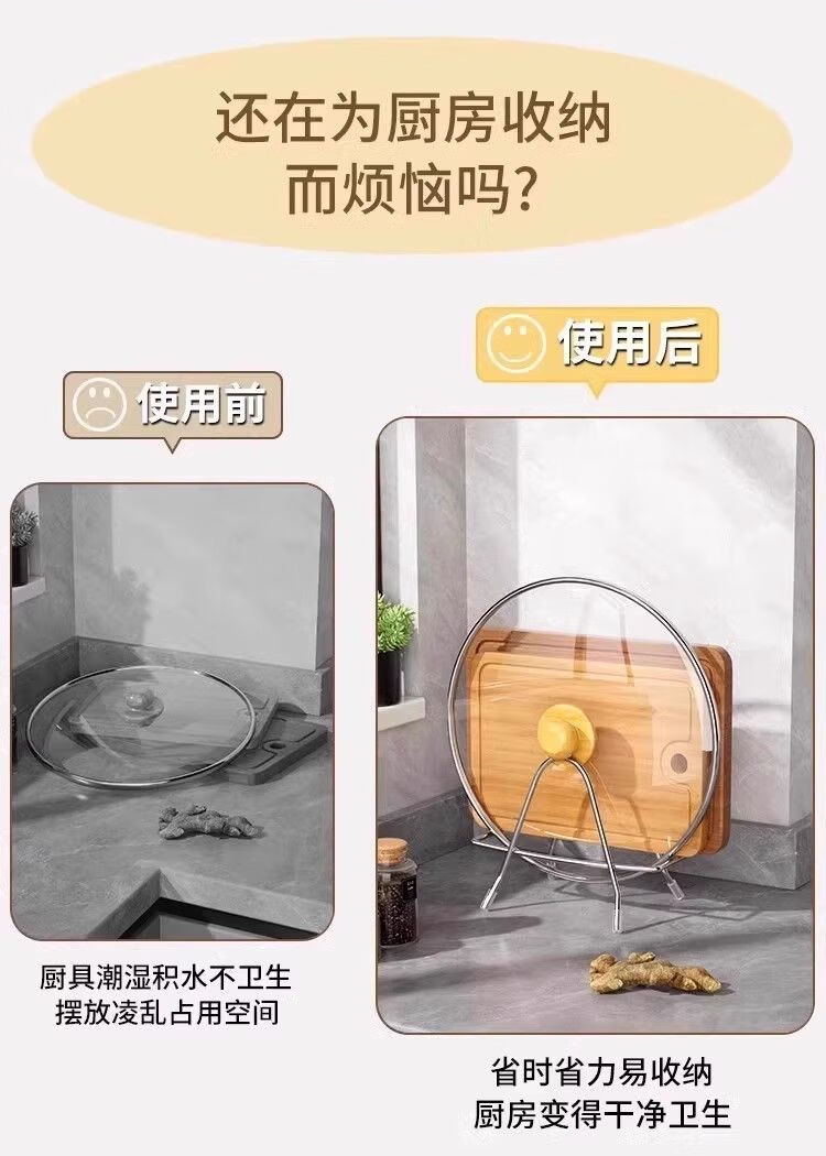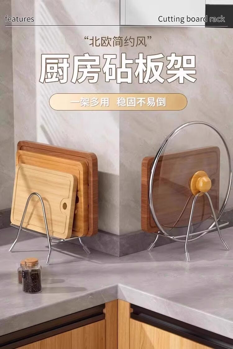 生活日用菜板架不锈钢切菜板砧板架子家用厨房台面放案板置物架 砧板架【1个装】送防滑胶套