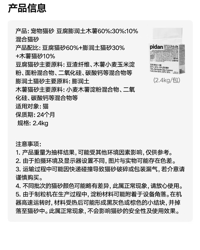 pidan混合猫砂 豆腐膨润土木薯60%:30%:10%混合2.4kg*4包自营猫砂