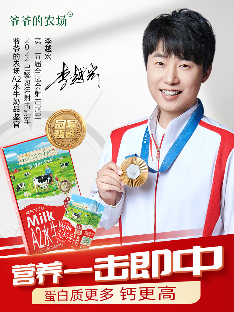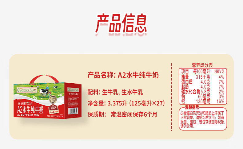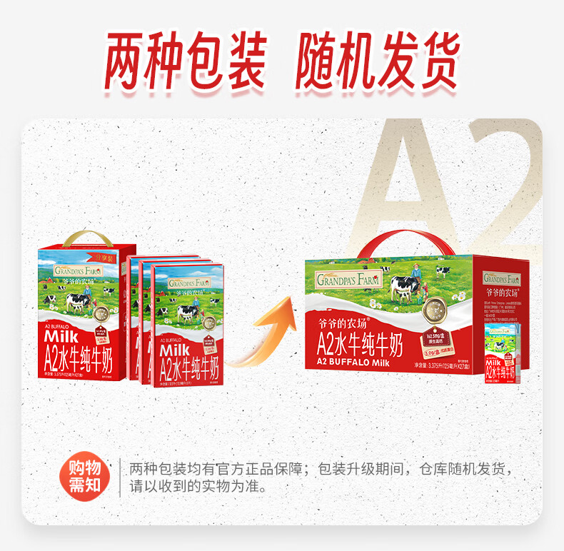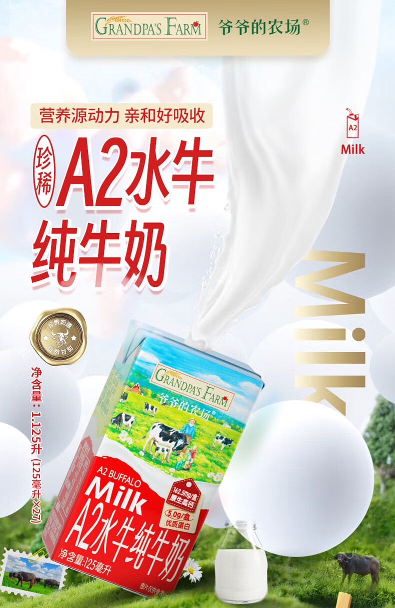 爷爷的农场A2水牛纯牛奶125ml*27盒 儿童早餐送礼礼盒水牛奶宝宝年货生牛乳