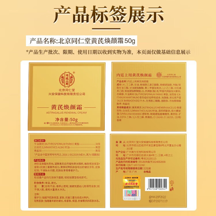 内廷上用黄芪焕颜霜50g老国货去黄提亮紧致抗皱舒缓补水保湿面霜 【1盒体验装】50g/盒