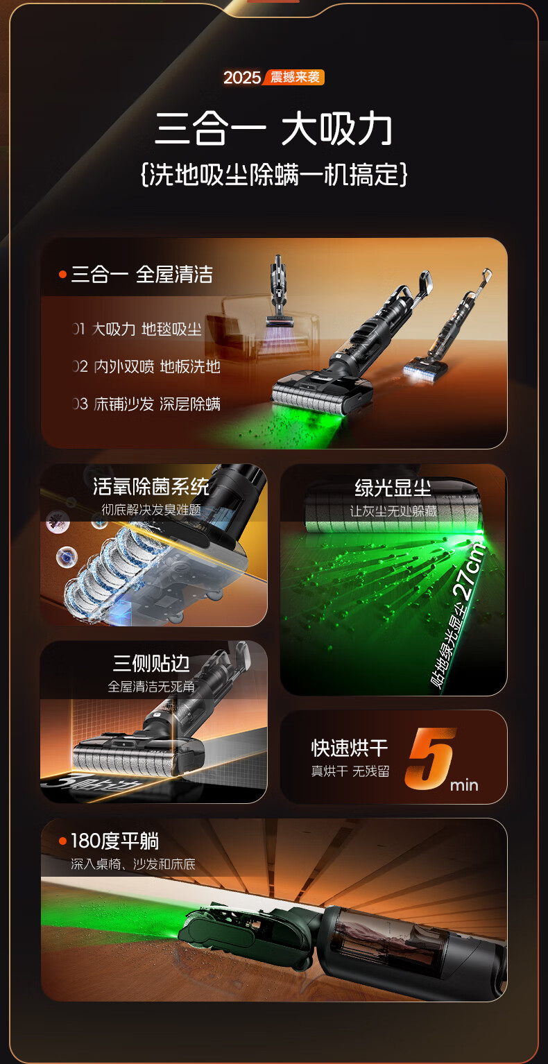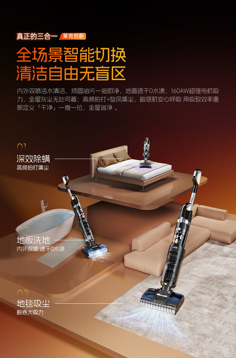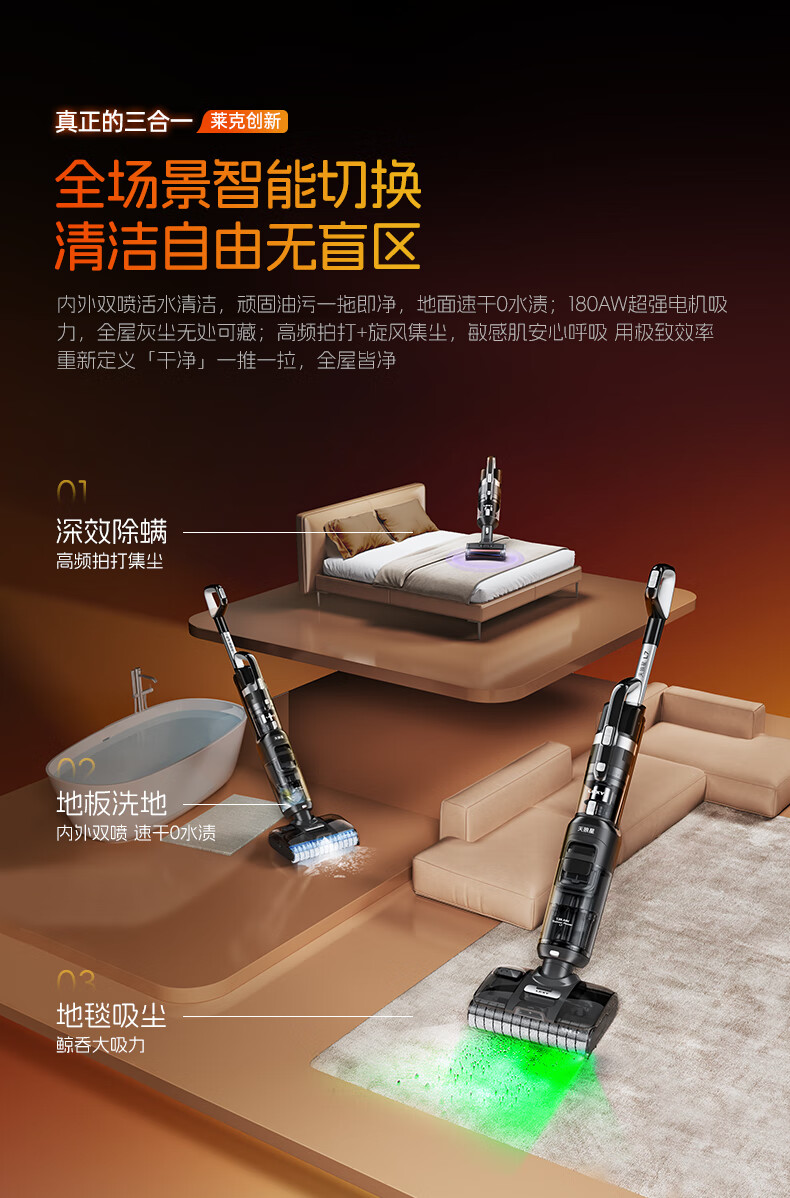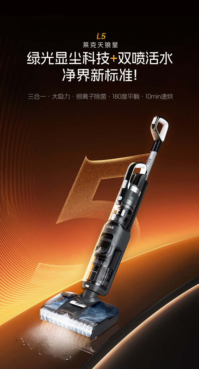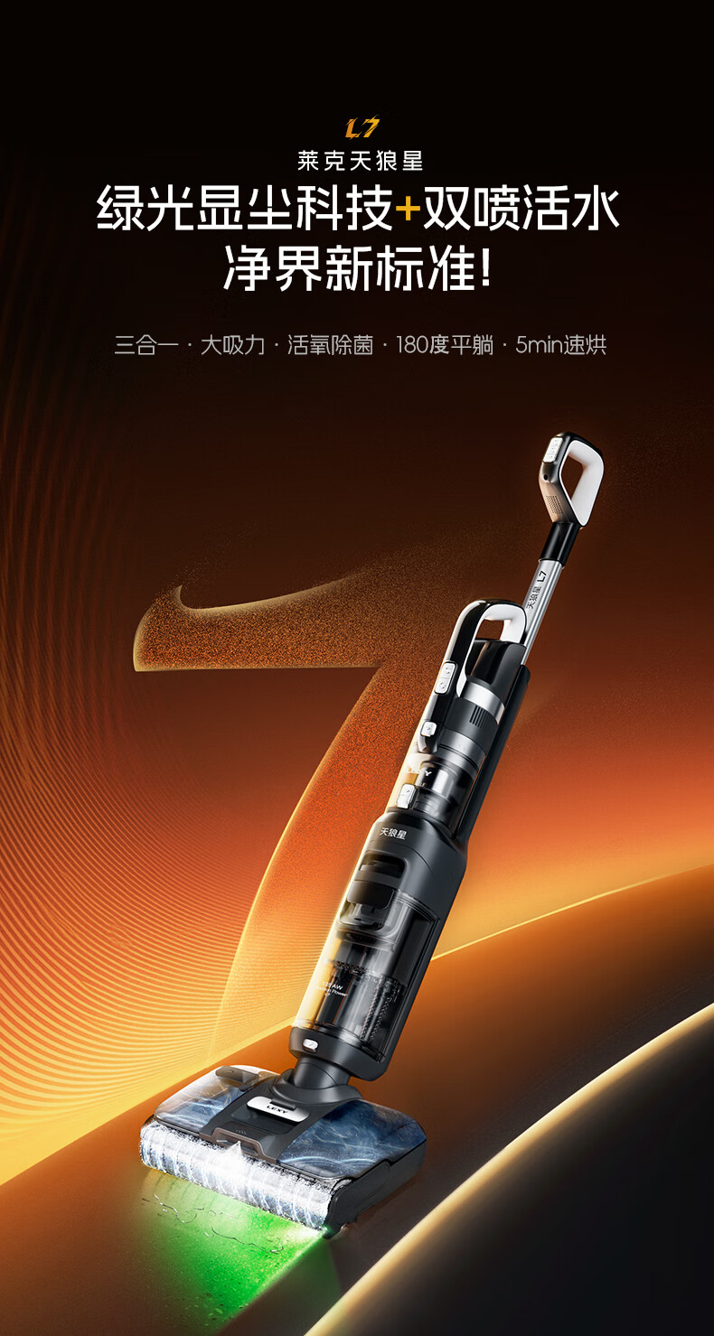 莱克天狼星L5 L6 L7【官翻】洗地机三合一吸尘除螨洗地机单滚刷绿显大吸力扫地机器人内外双喷洗地吸尘 L7【官翻】
