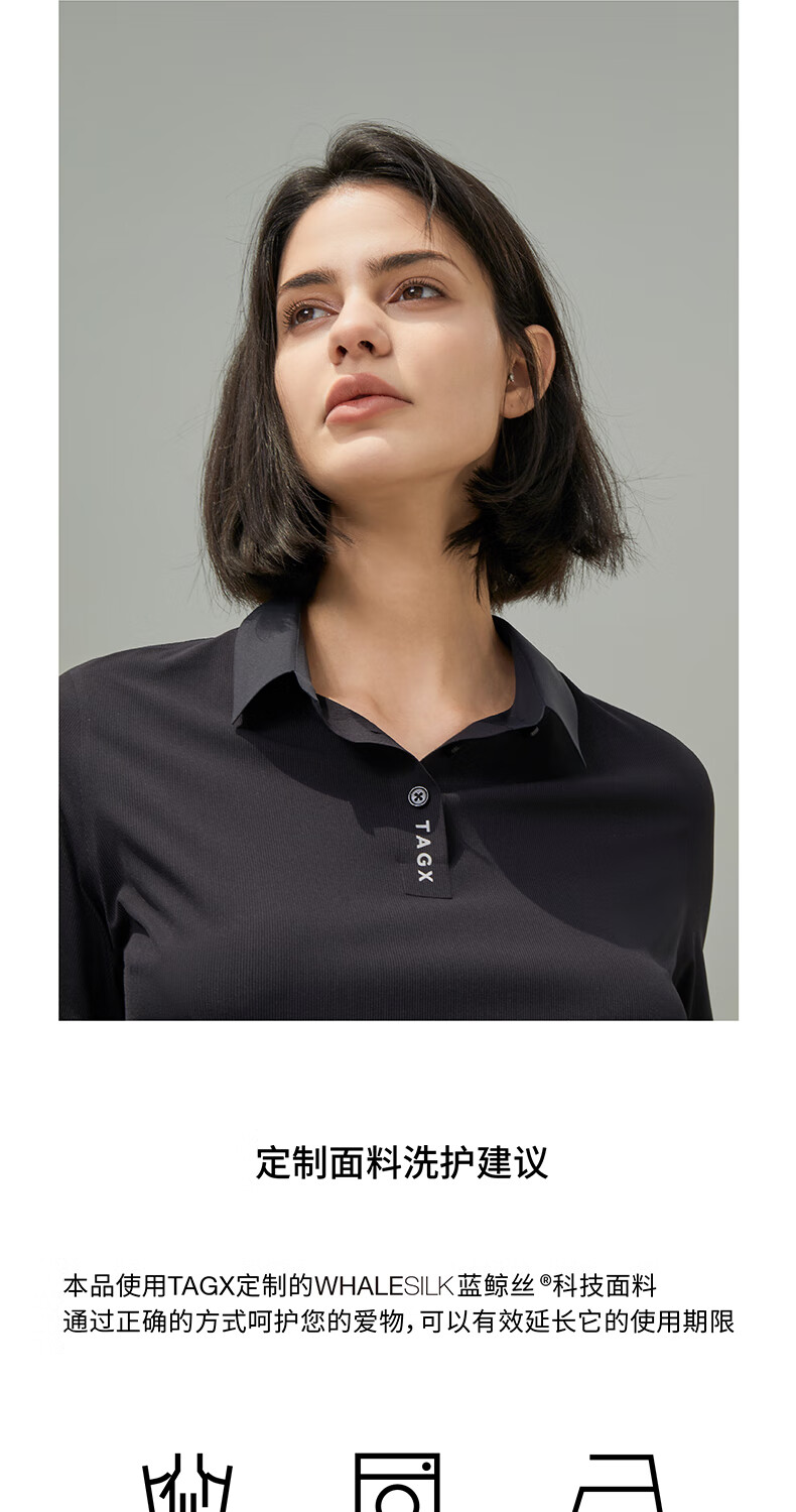 TAGX 探观Polo衫女士蓝鲸丝夏季新款凉感短袖女宽松透气抑菌速干时尚t恤女 礁石黑 M