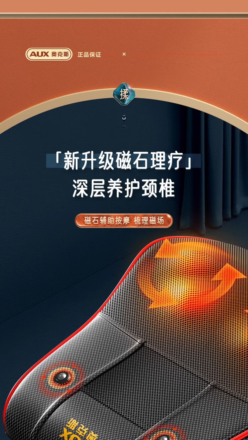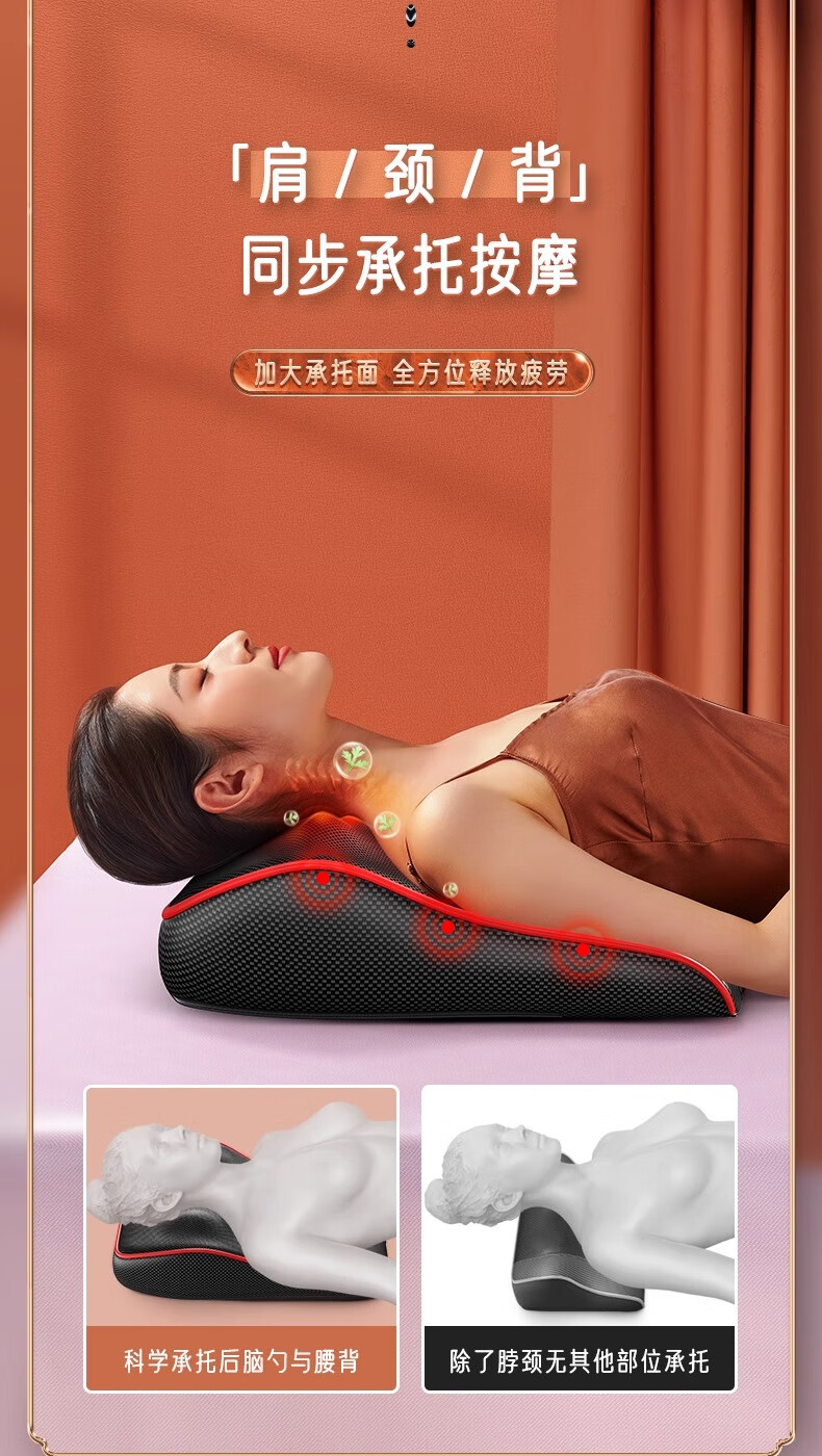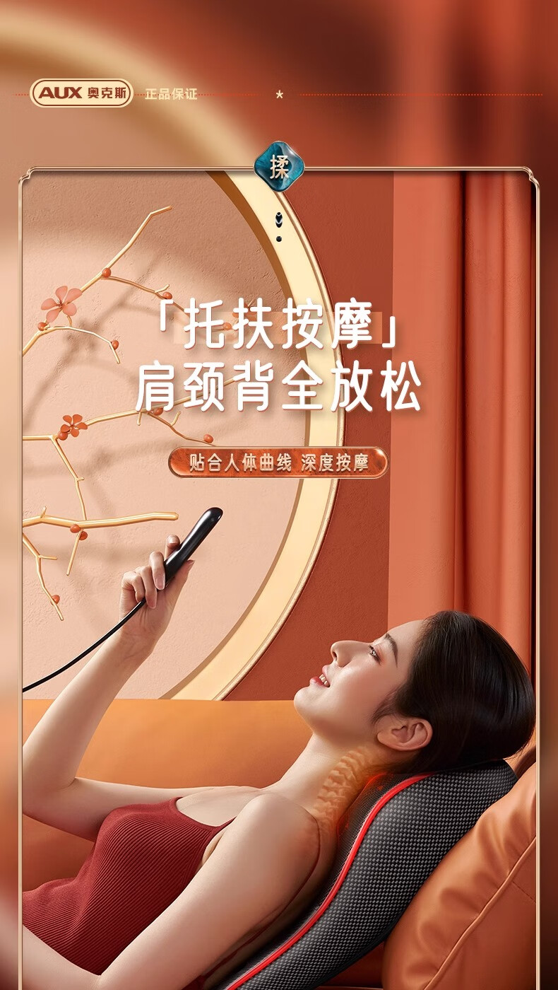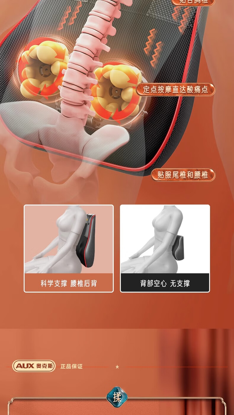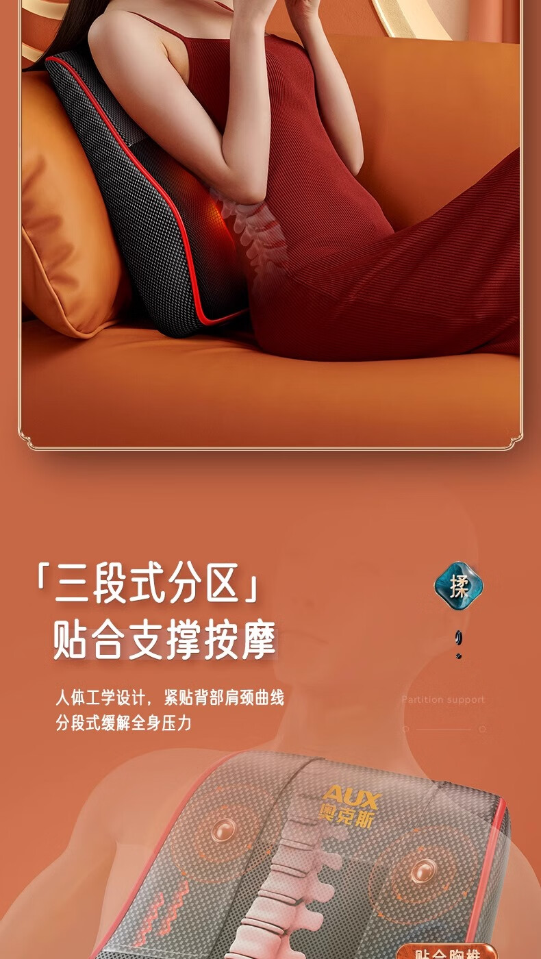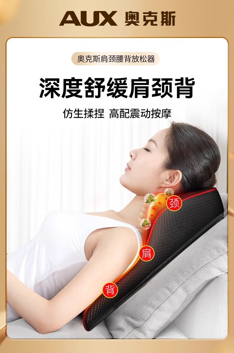 奥克斯颈椎按摩器按摩仪按摩枕腰部头颈部肩颈背部热敷按摩靠垫揉腹按摩椅垫 送礼款性价比之王-气囊顶牵引+熏香艾草+礼盒包装 520情人节礼物送男友老婆女友男朋友爸爸妈妈长辈