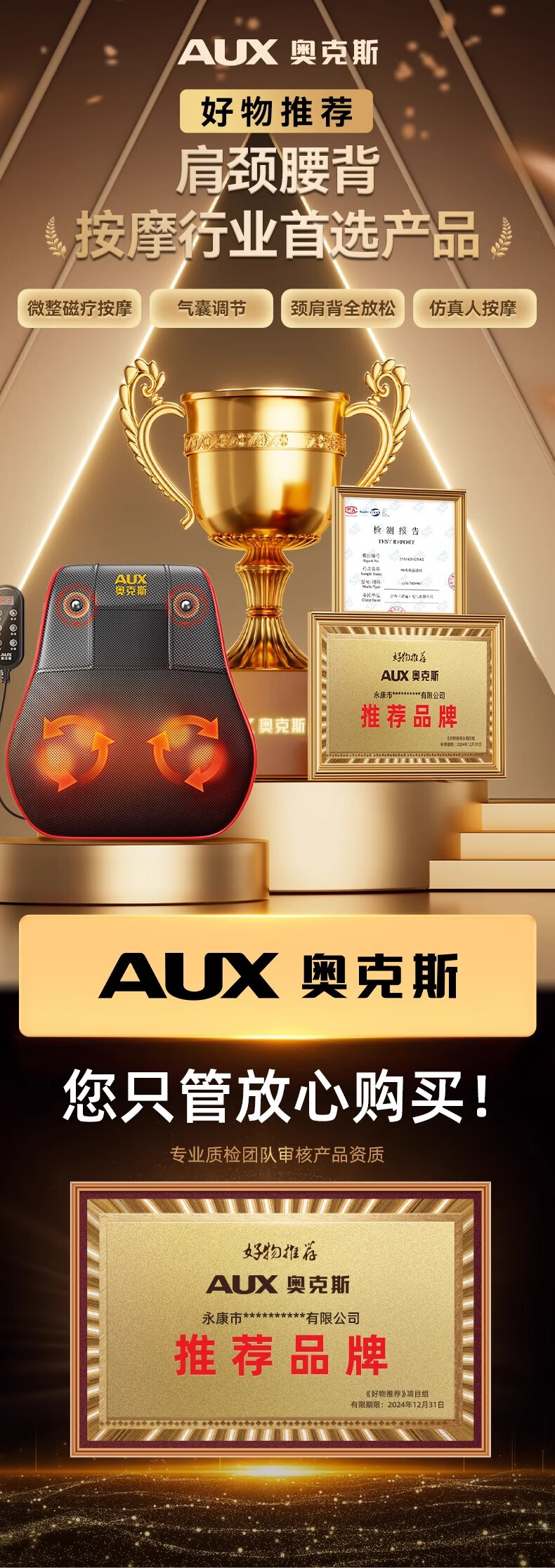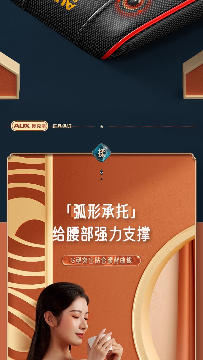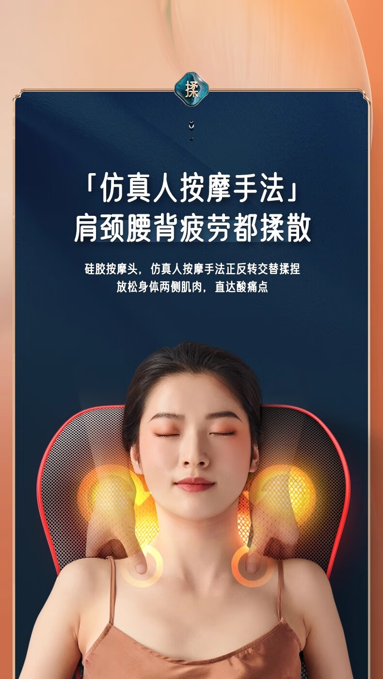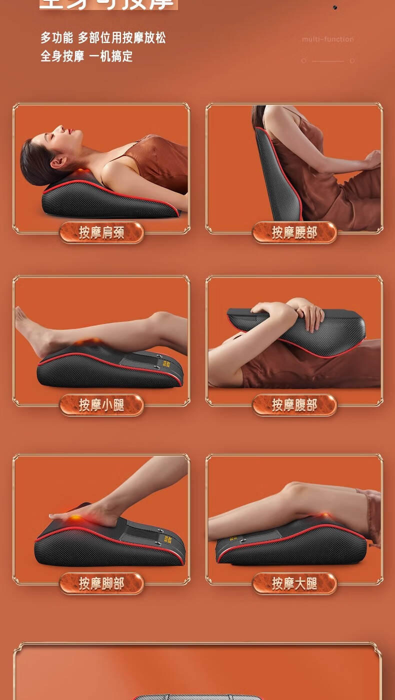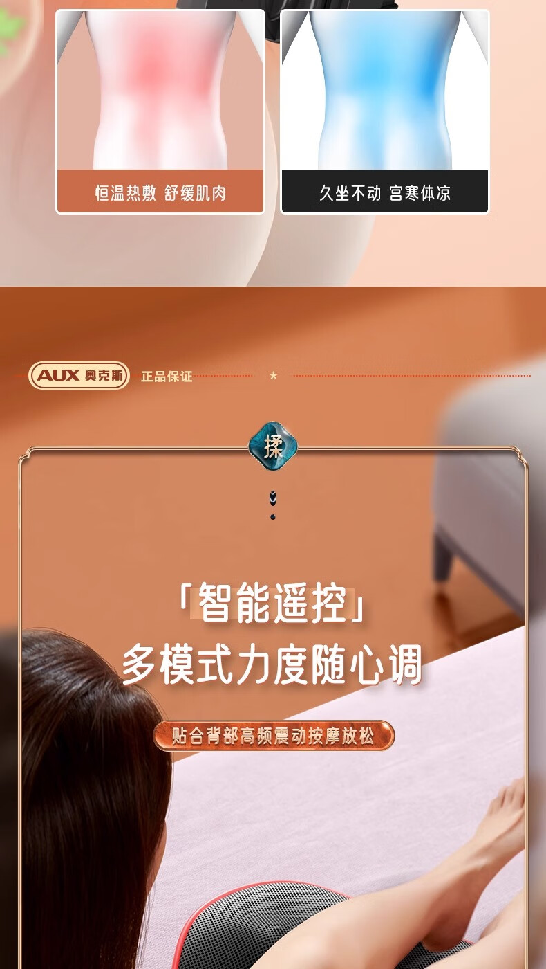 奥克斯颈椎按摩器按摩仪按摩枕腰部头颈部肩颈背部热敷按摩靠垫揉腹按摩椅垫 送礼款性价比之王-气囊顶牵引+熏香艾草+礼盒包装 520情人节礼物送男友老婆女友男朋友爸爸妈妈长辈