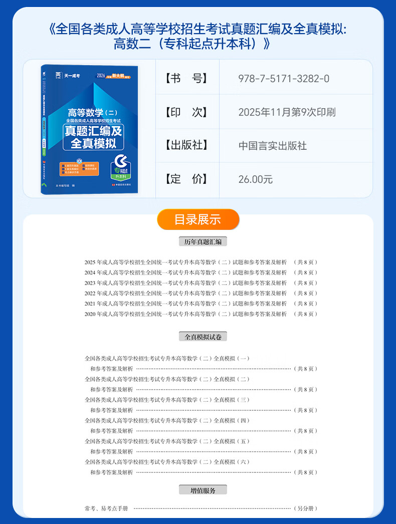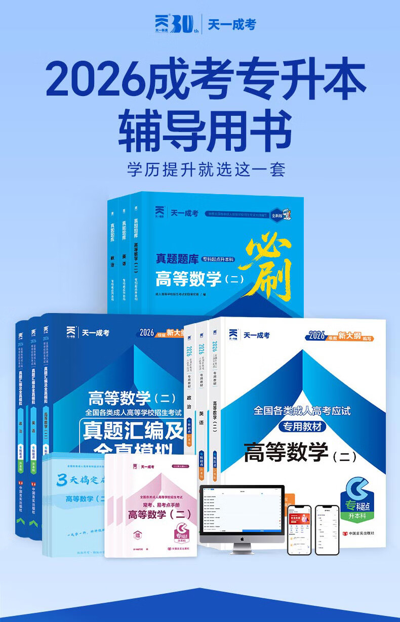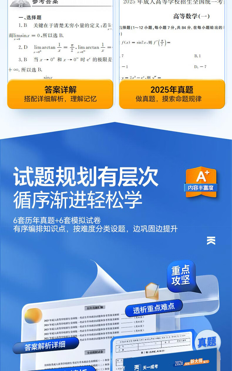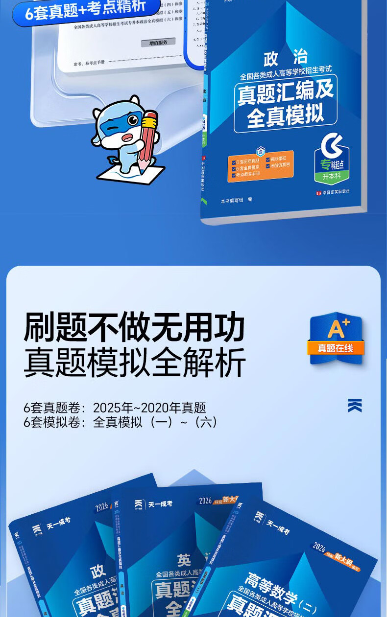 2026成考专升本教材历年真题全真模拟试卷全套复习资料 成人高考专升本自考本科 政治英语高数一二大学语文医学综合民法教育理论艺术概论2025年真题配套视频题库天一 学霸套装!高数一+英语+政治【教材+