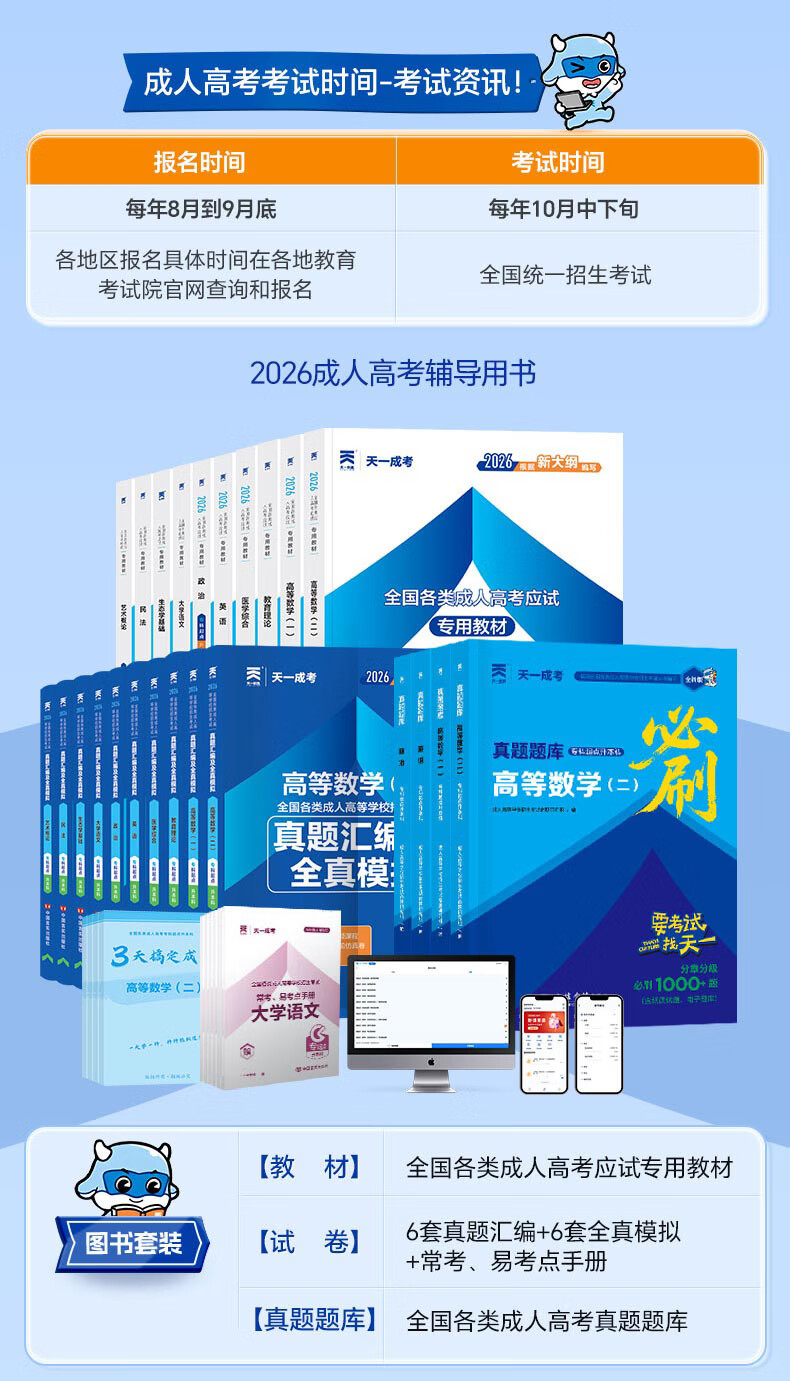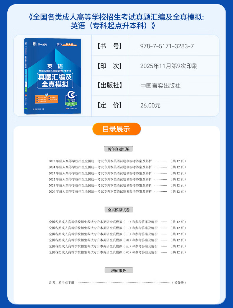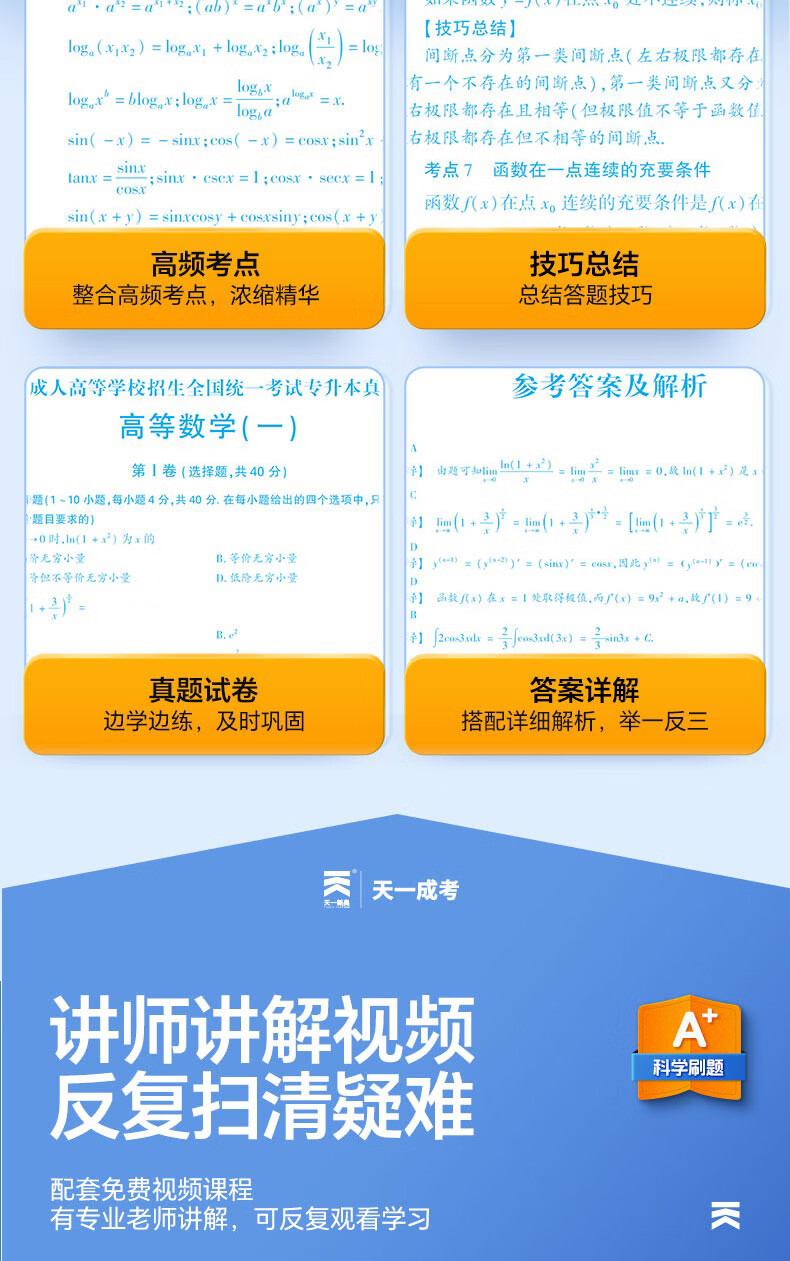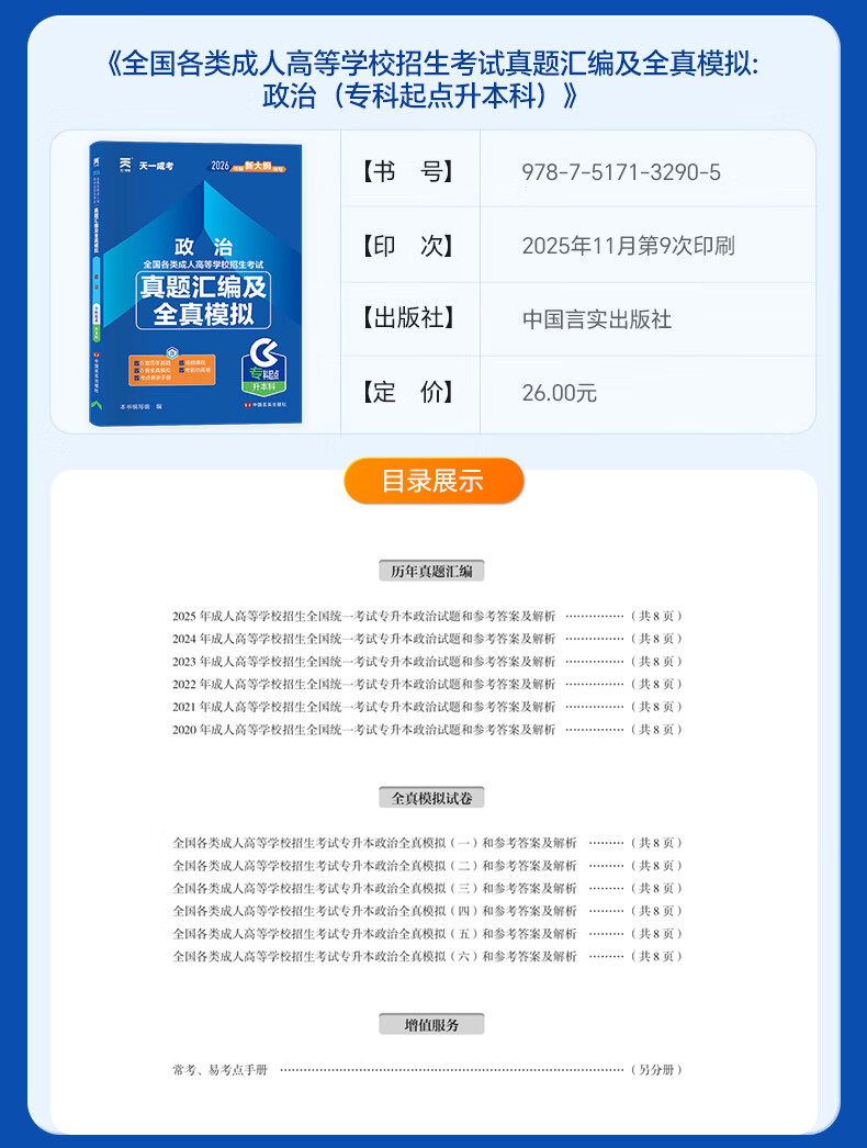 2026成考专升本教材历年真题全真模拟试卷全套复习资料 成人高考专升本自考本科 政治英语高数一二大学语文医学综合民法教育理论艺术概论2025年真题配套视频题库天一 学霸套装!高数一+英语+政治【教材+