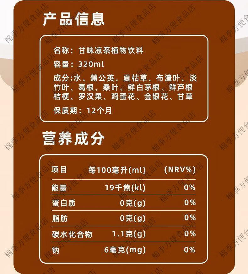 黄振龙凉茶广东凉茶癍痧甘味苦癍痧凉茶320ml2 原味癍痧320ml*2