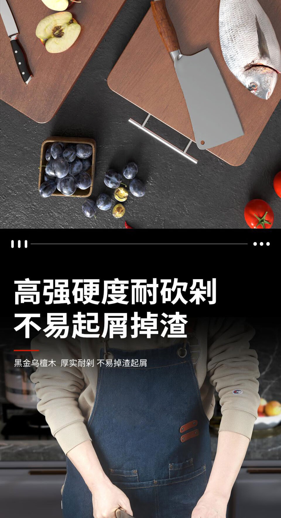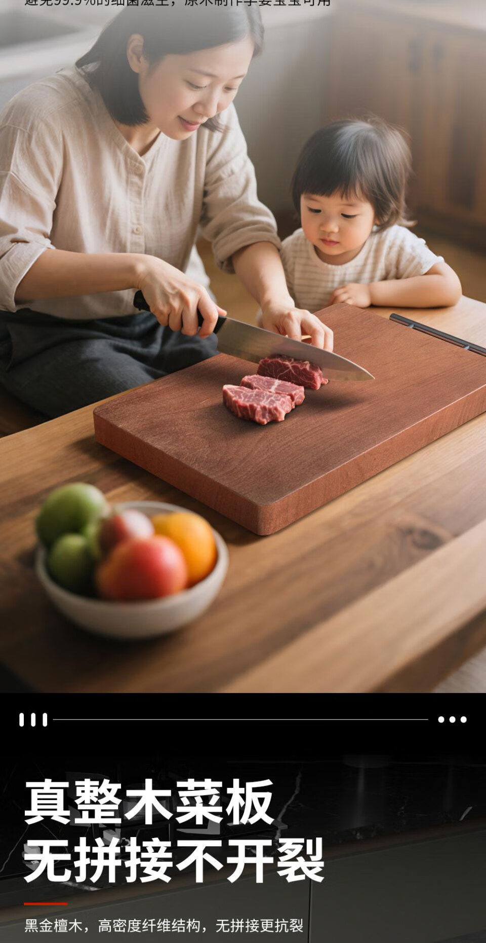 顾庭乌檀木菜板实木整木砧板抗菌防霉切菜板家用食品级水果菜板大号 超大号【60*40*3cm】3厘米特厚款 整块整木零拼接