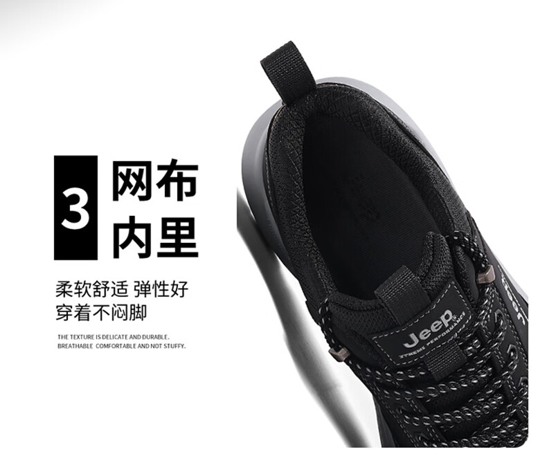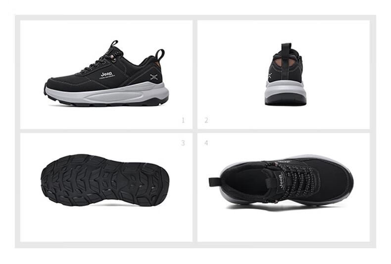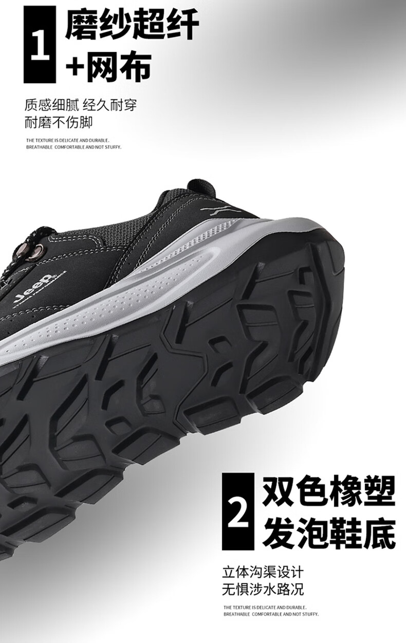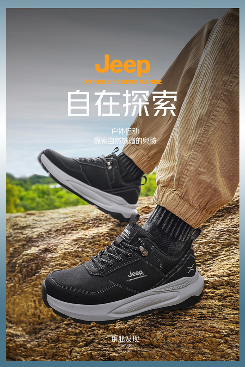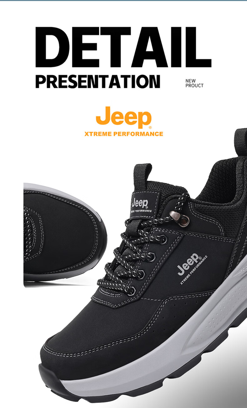 JEEP吉普男鞋子男款秋季新款软底防泼水休闲老爹鞋户外防滑徒步登山鞋 黑色 45 (275mm) 运动鞋码