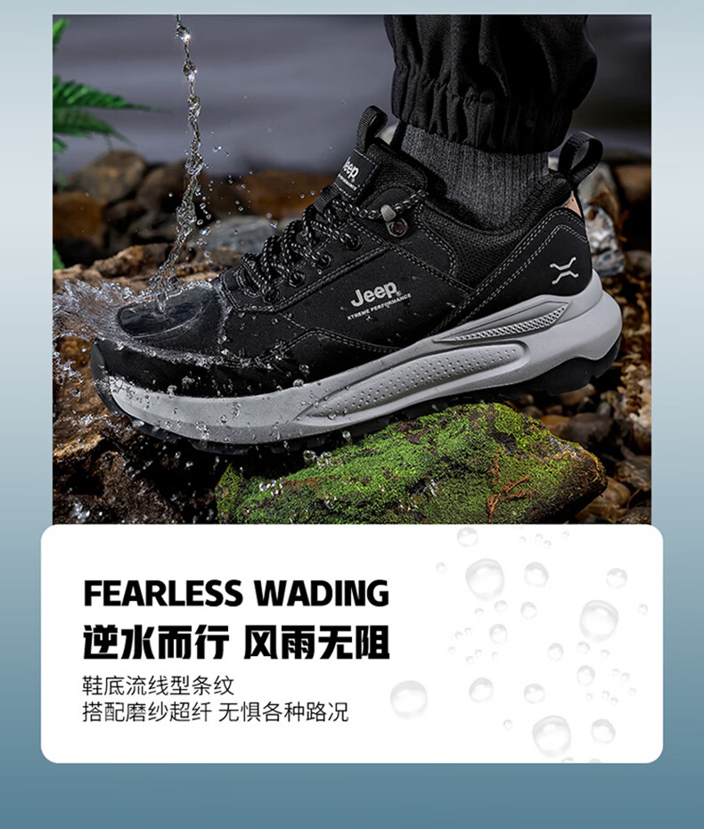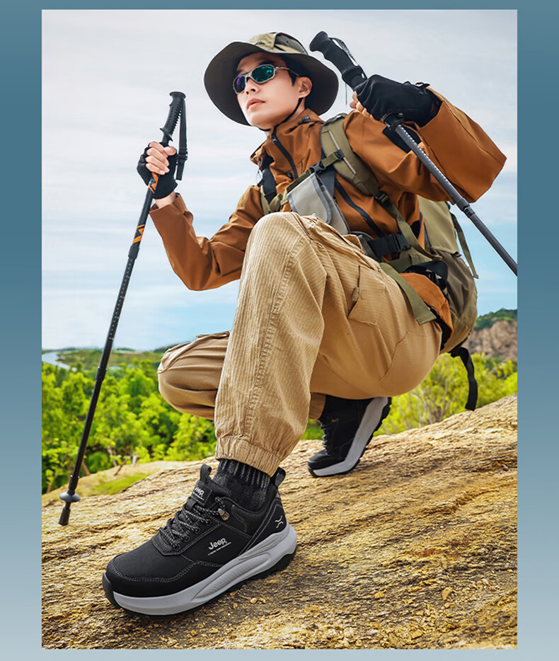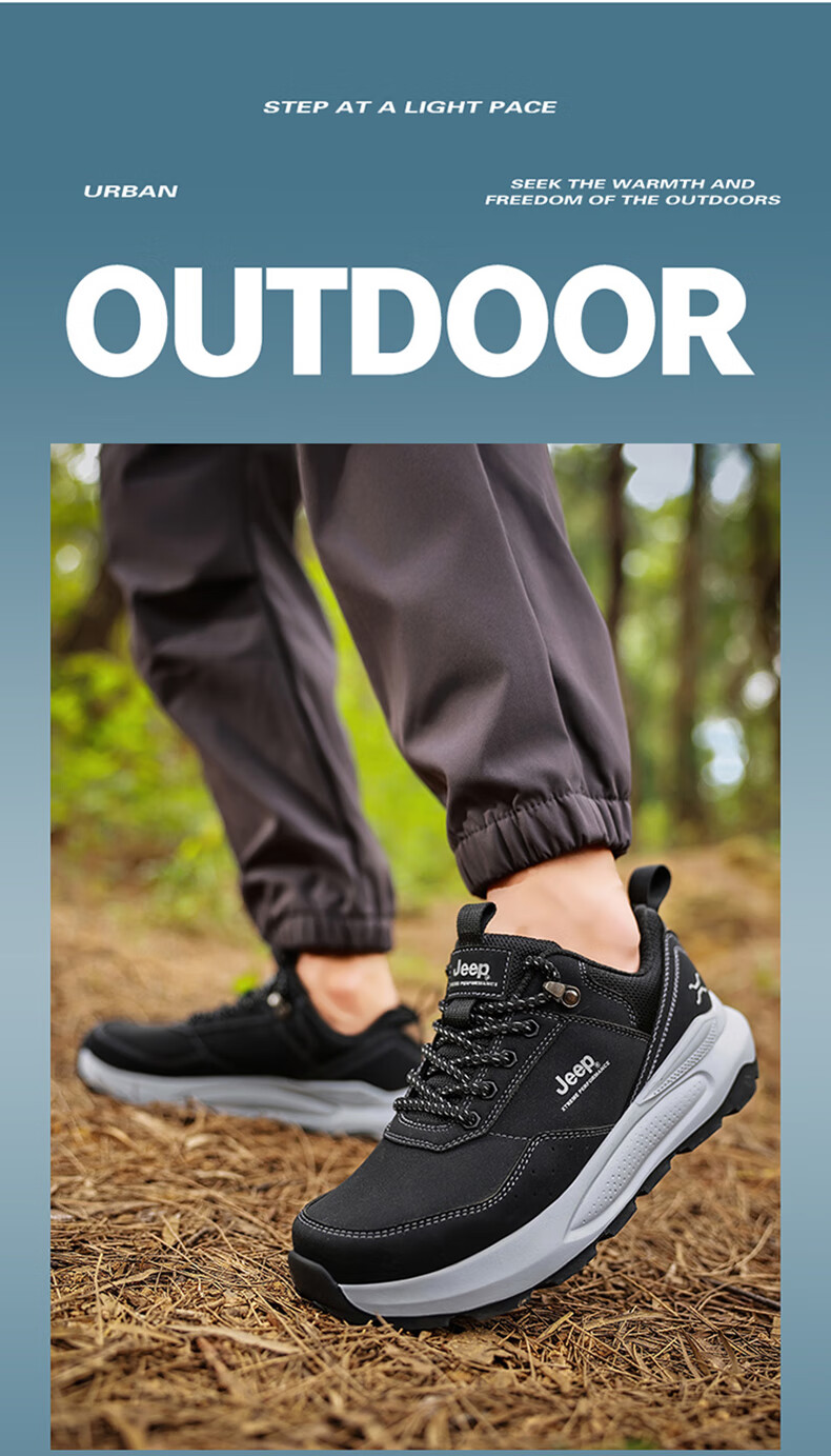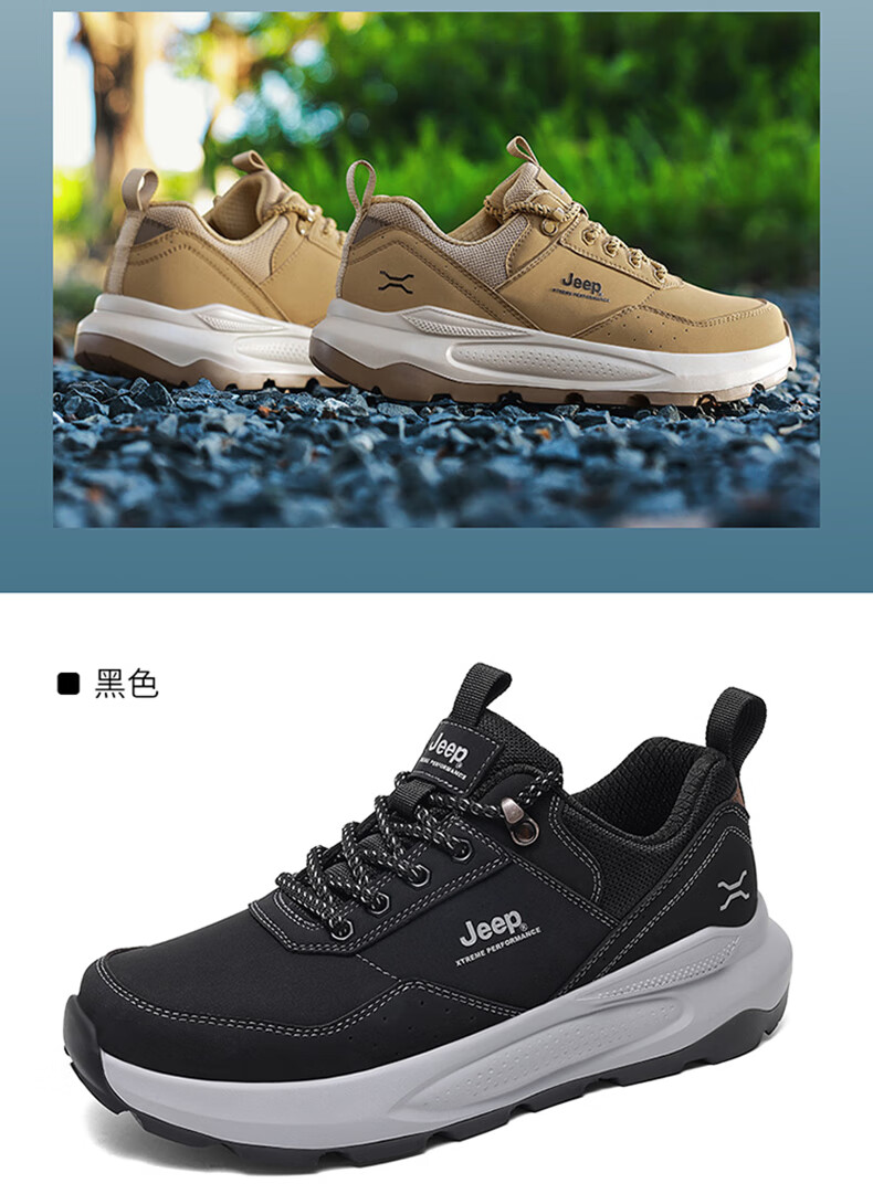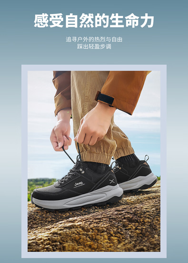JEEP吉普男鞋子男款秋季新款软底防泼水休闲老爹鞋户外防滑徒步登山鞋 黑色 45 (275mm) 运动鞋码