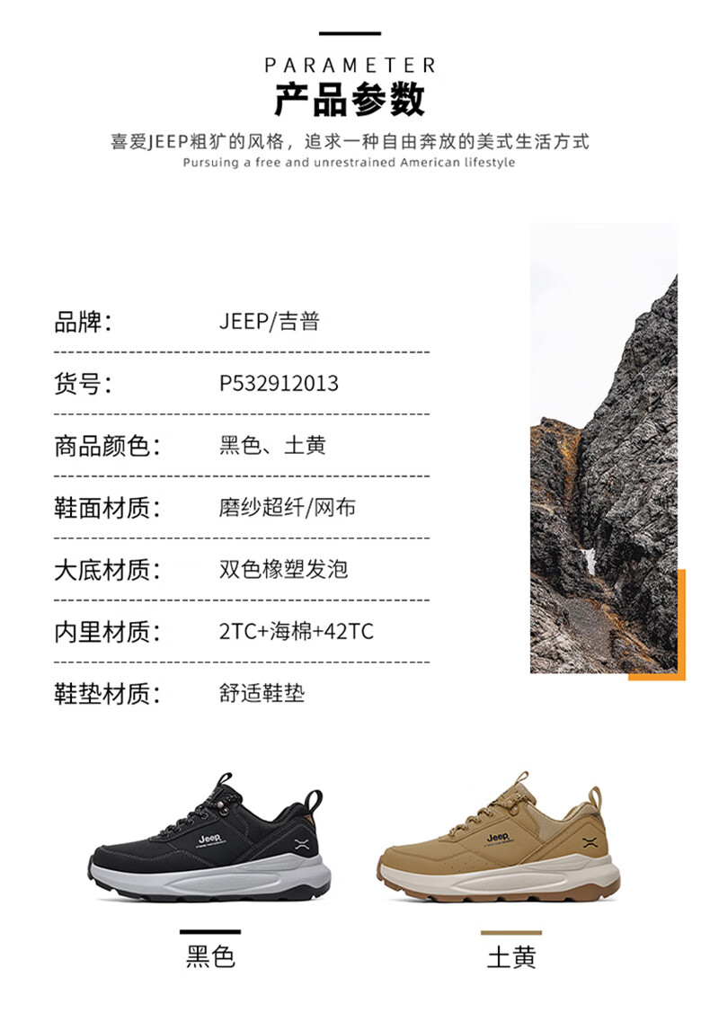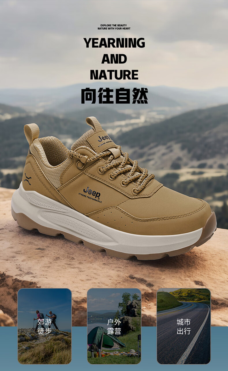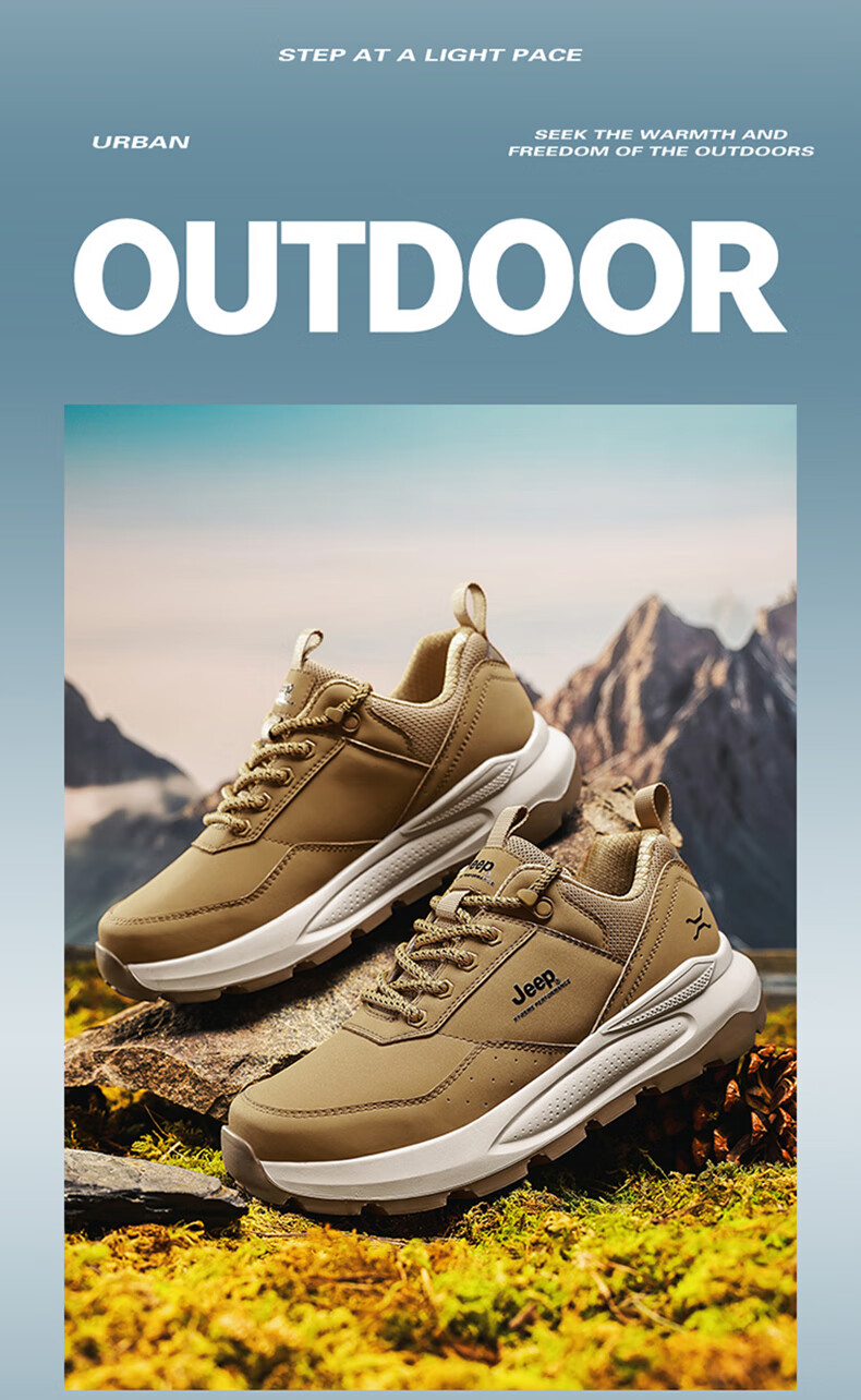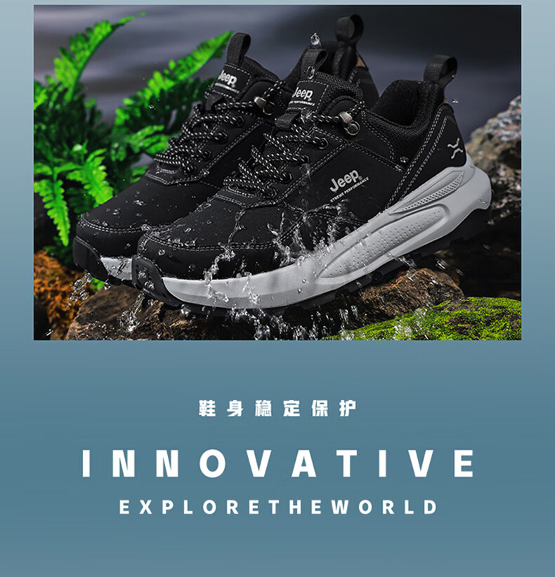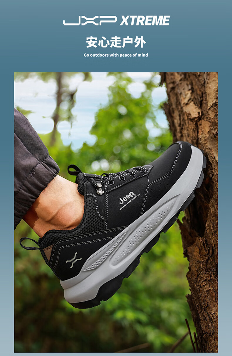 JEEP吉普男鞋子男款秋季新款软底防泼水休闲老爹鞋户外防滑徒步登山鞋 黑色 45 (275mm) 运动鞋码