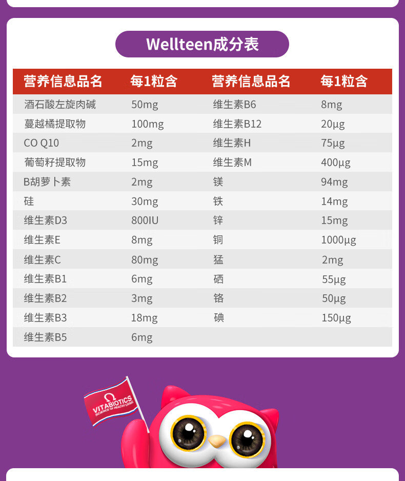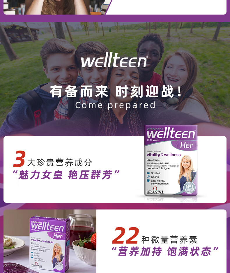 薇塔薇塔贝尔青少年复合维生素 增强免疫力 维生素BC 13-19岁女性适用 青少年女孩复维30粒