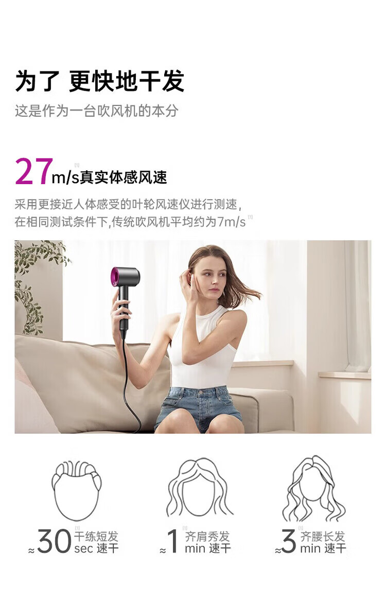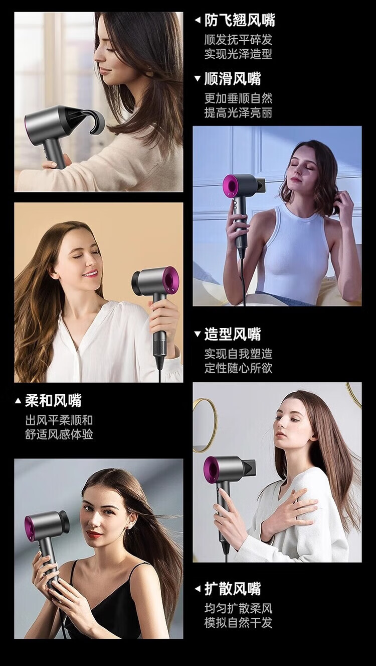 戴森德乐【80亿负离子护发】高速无叶吹风机家用静音负离子大功率不伤发大风力电吹风筒送情人礼物生日 玫红色-单风嘴【80亿负离子】 顶配版-礼盒装-恒温护发速干