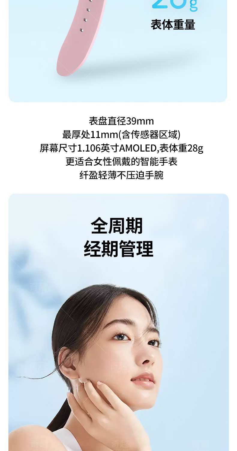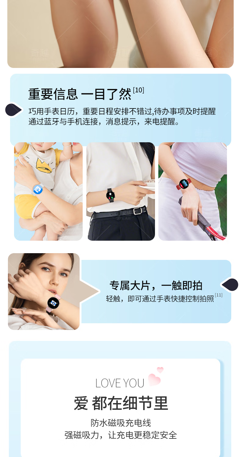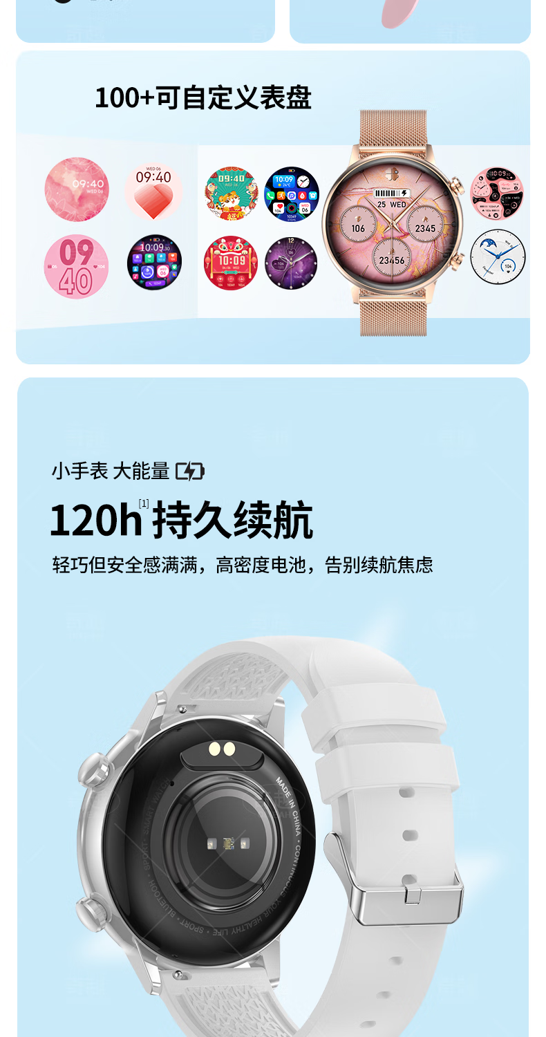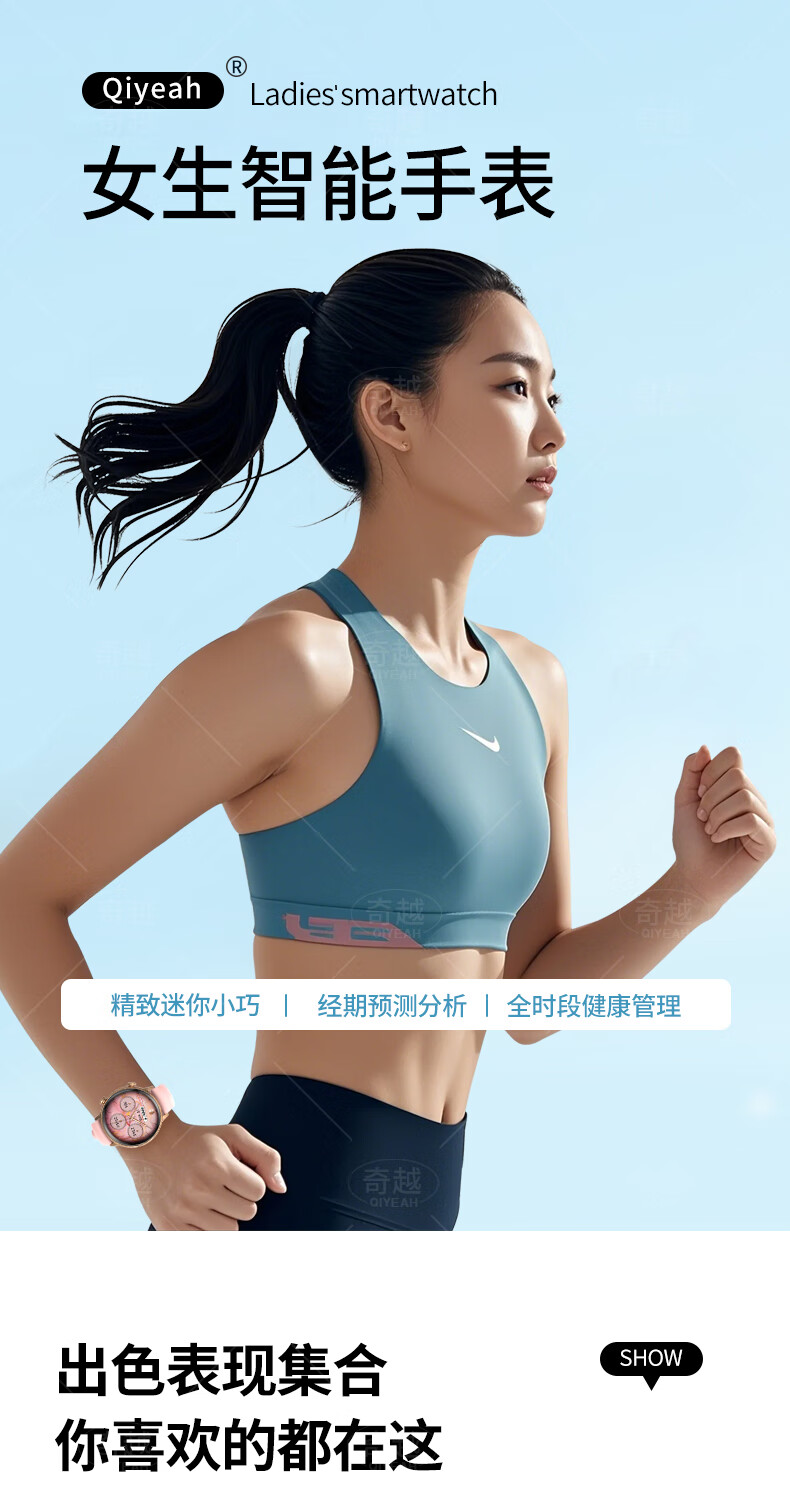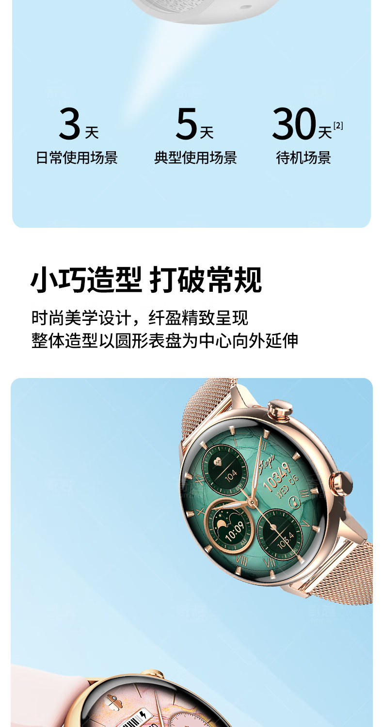 QIYEAHY19奇越运动手表智能女款蓝牙接打电话心率血氧睡眠生理期健康监测消息提醒离线支付防水跑步手环 金色