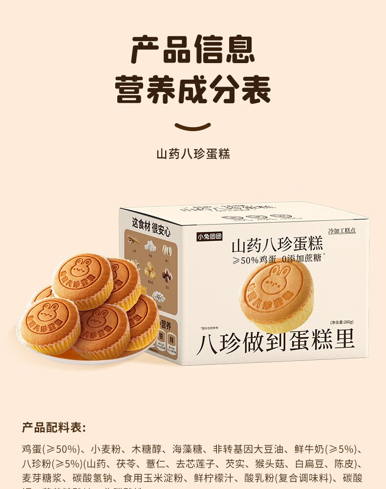 布拉粉小兔团团山药八珍糕260g儿童药食同养营养早餐 【囤货复购】2盒